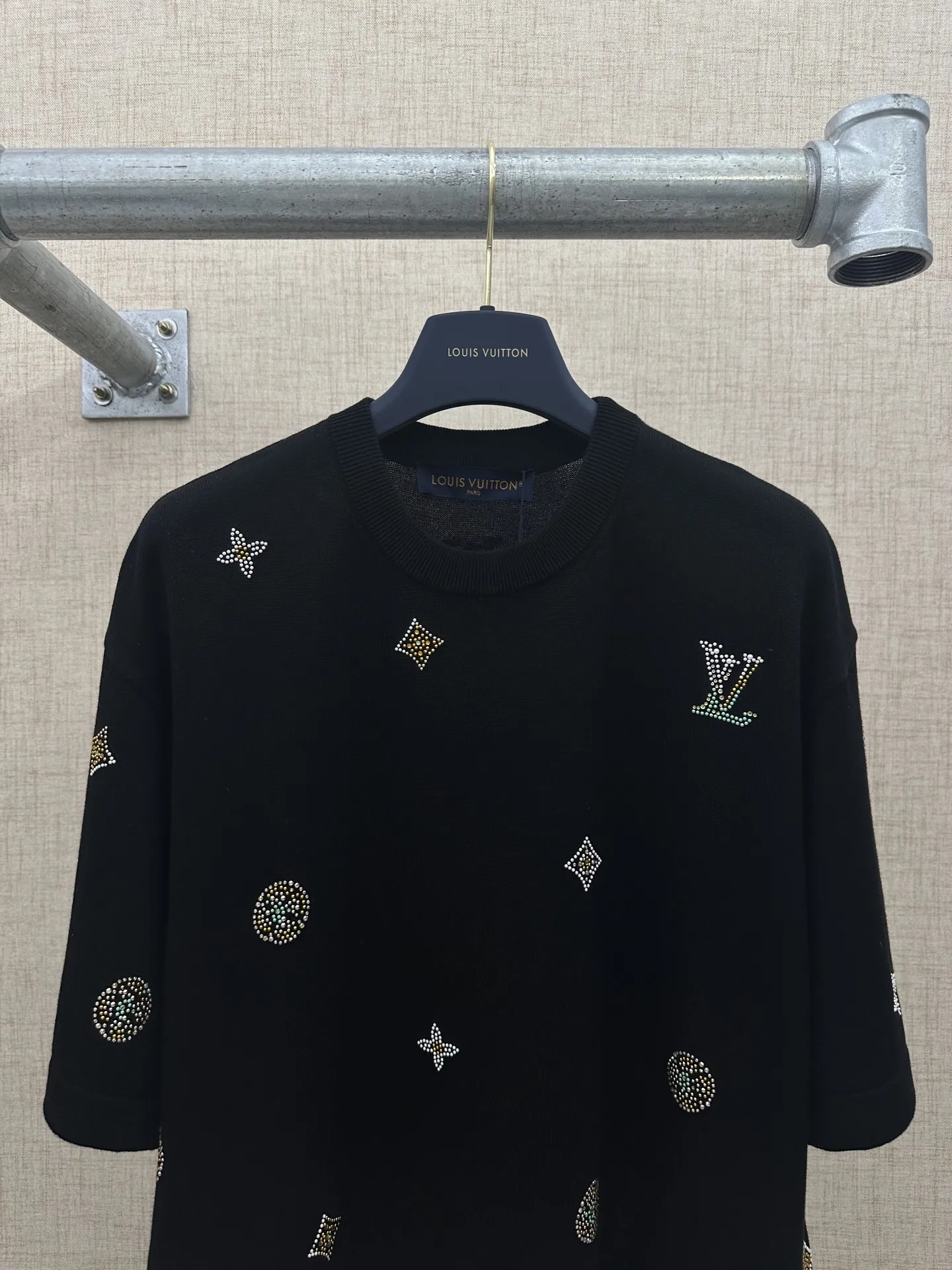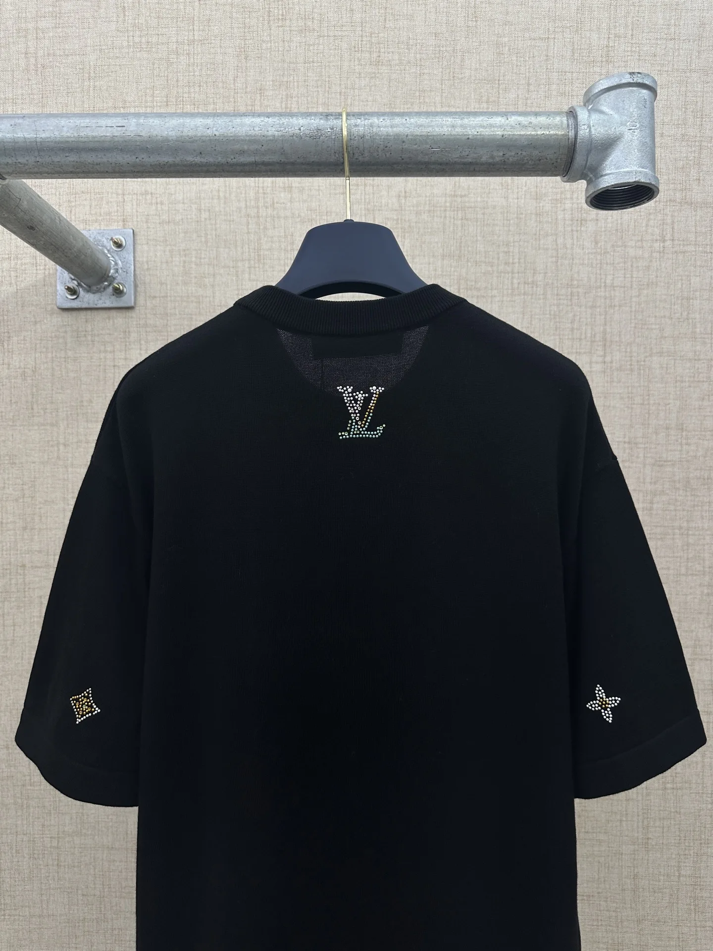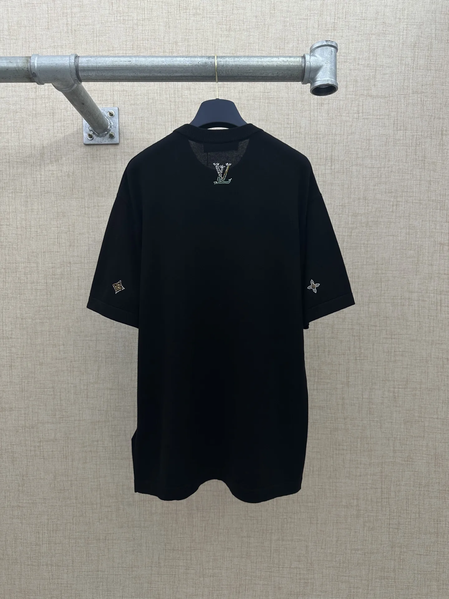 2026ss LV春夏新款装饰短袖 整体采用17种色钻 包含莱茵石镶嵌工艺 将 LV 经典 Monogram 素 四叶花 菱形 圆形标识 与 LV 字母以彩钻形式点缀于衣身 正面与后背均有分布 在光线下呈现低调奢华的闪耀感码数 S M L XL