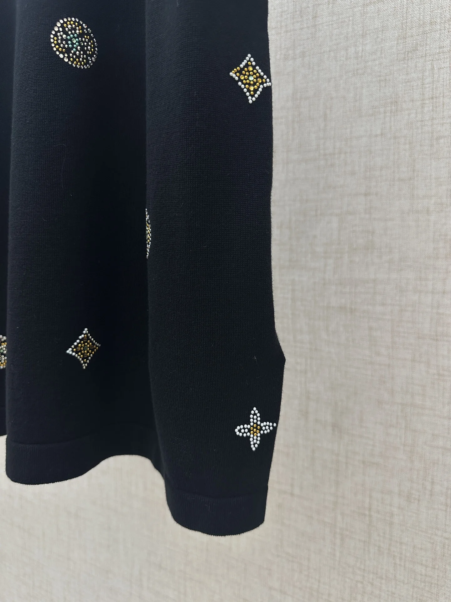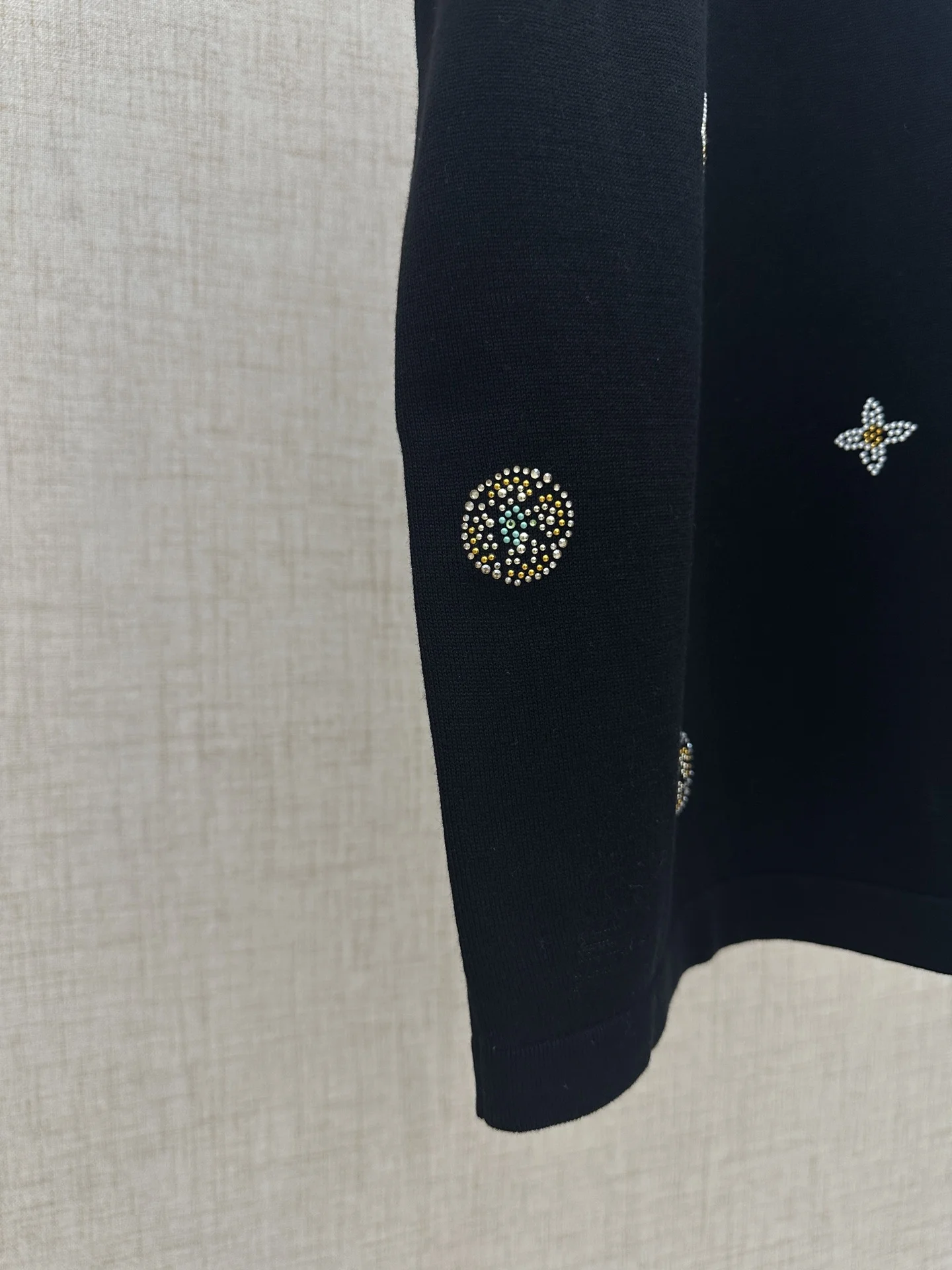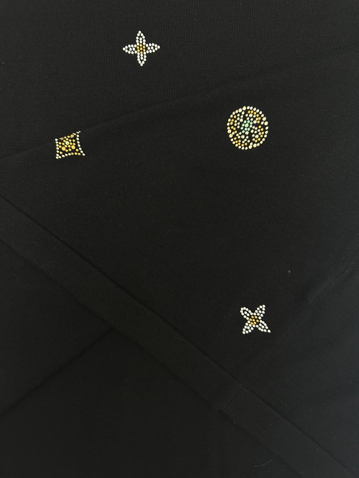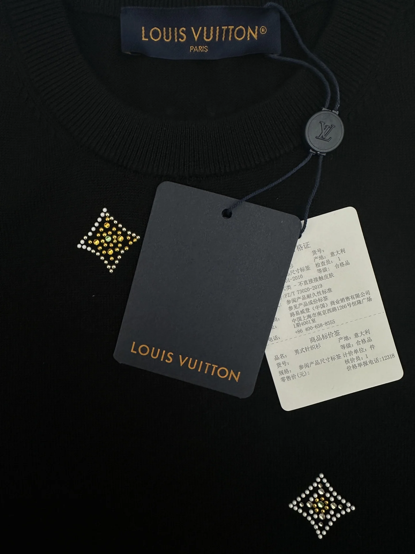 2026ss LV春夏新款装饰短袖 整体采用17种色钻 包含莱茵石镶嵌工艺 将 LV 经典 Monogram 素 四叶花 菱形 圆形标识 与 LV 字母以彩钻形式点缀于衣身 正面与后背均有分布 在光线下呈现低调奢华的闪耀感码数 S M L XL