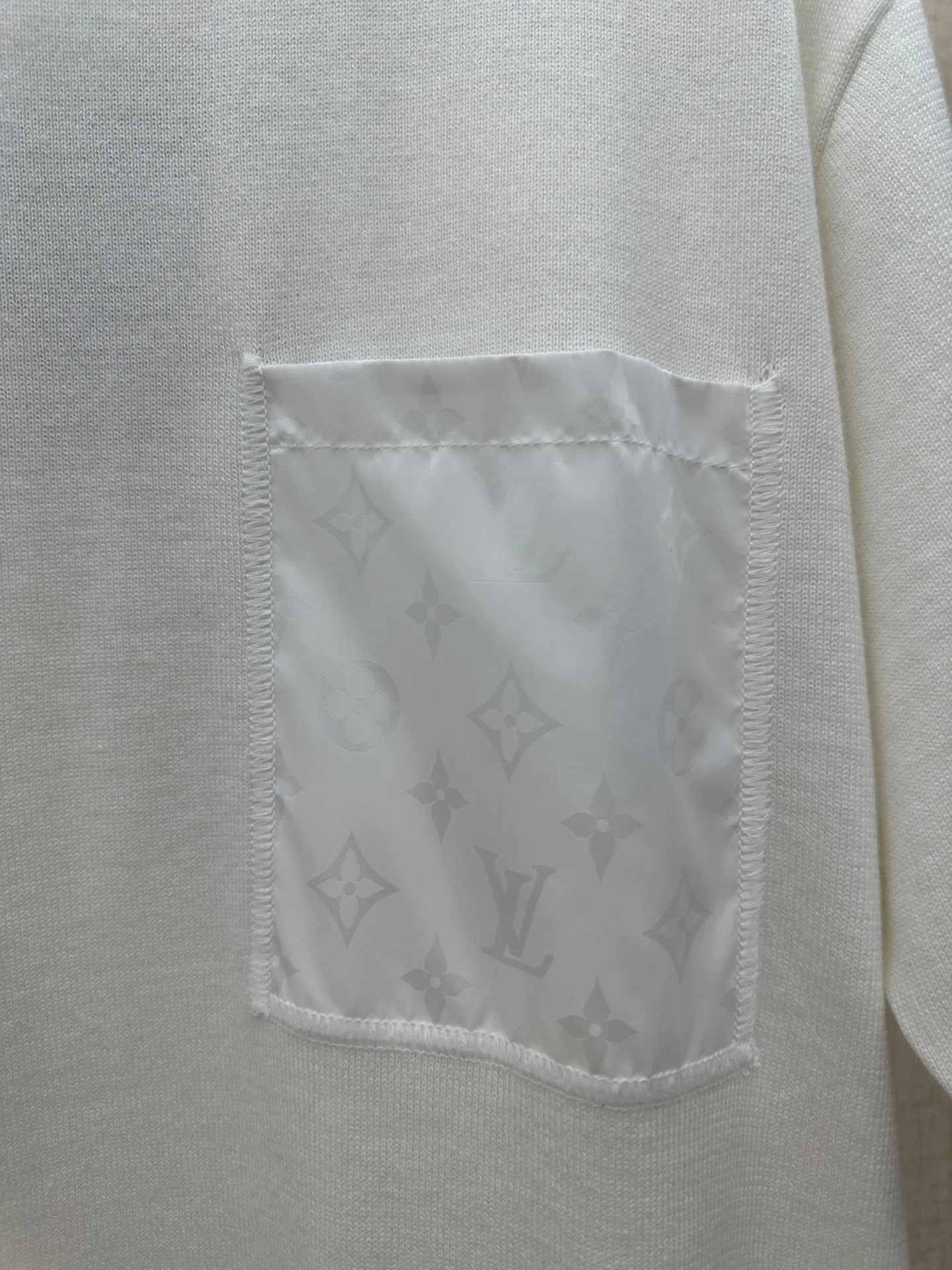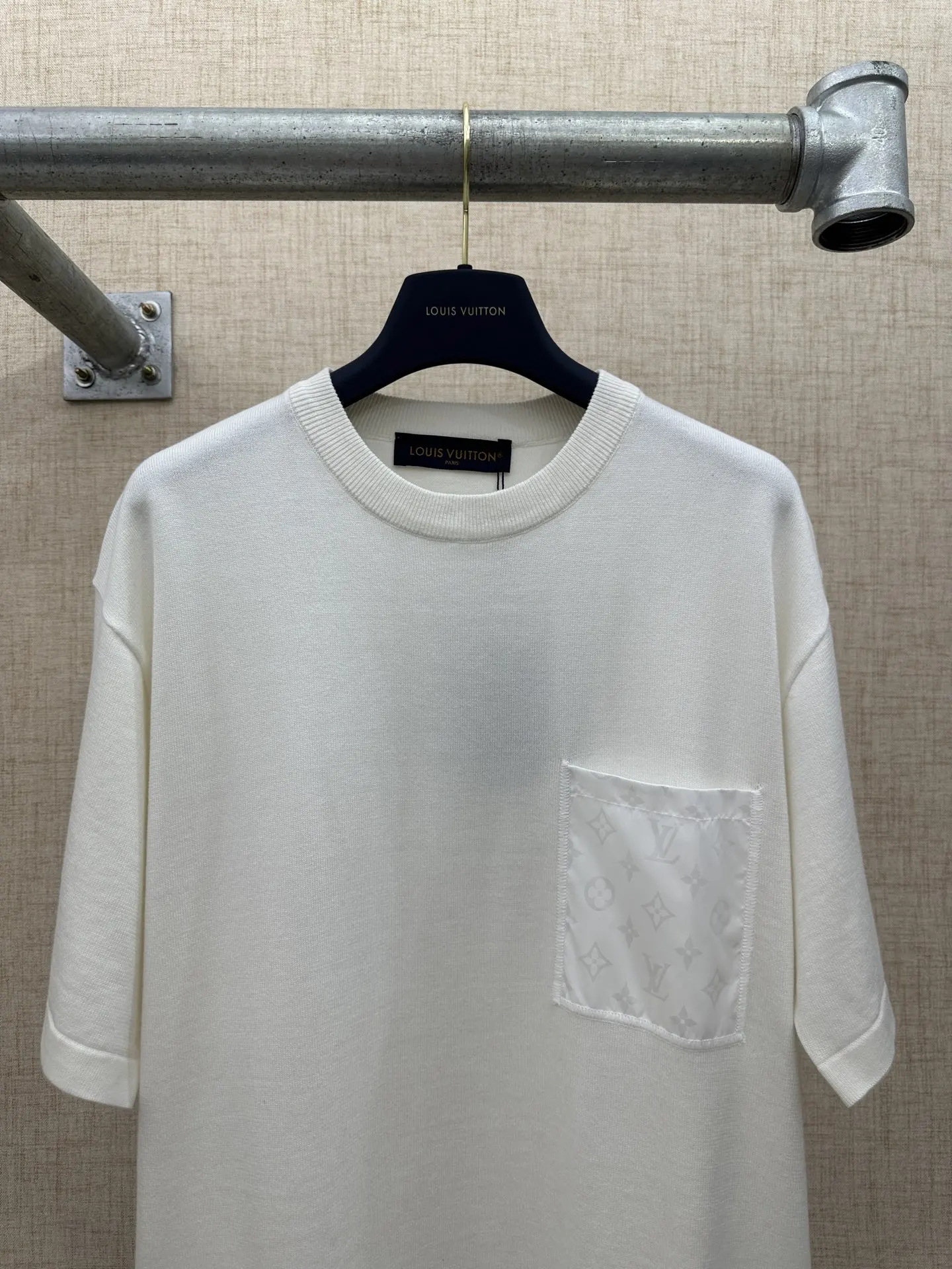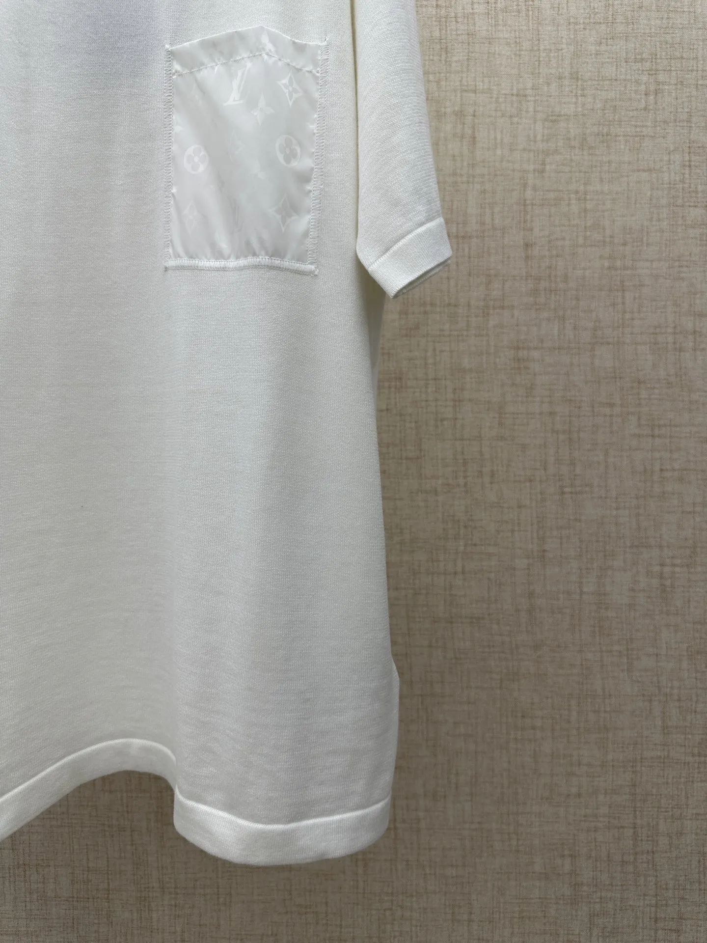 LV 功能性标志细节 T 恤 T-Shirt with Monogram Nylon Details 口袋及后片饰片为锦纶材质 正面左胸贴袋采用同色Monogram暗纹锦纶拼接 低调呈现LV经典老花素 码数 S M L XL