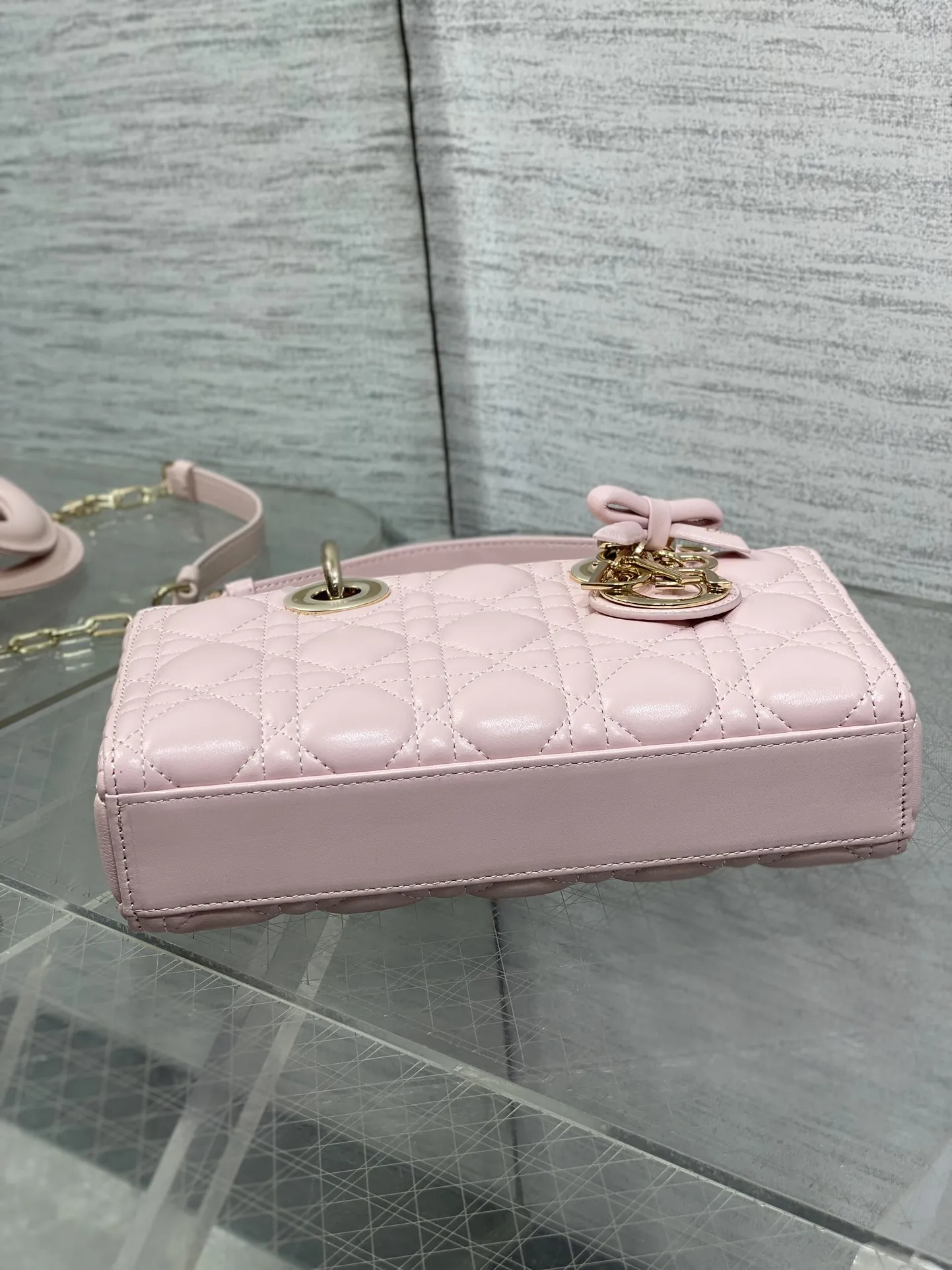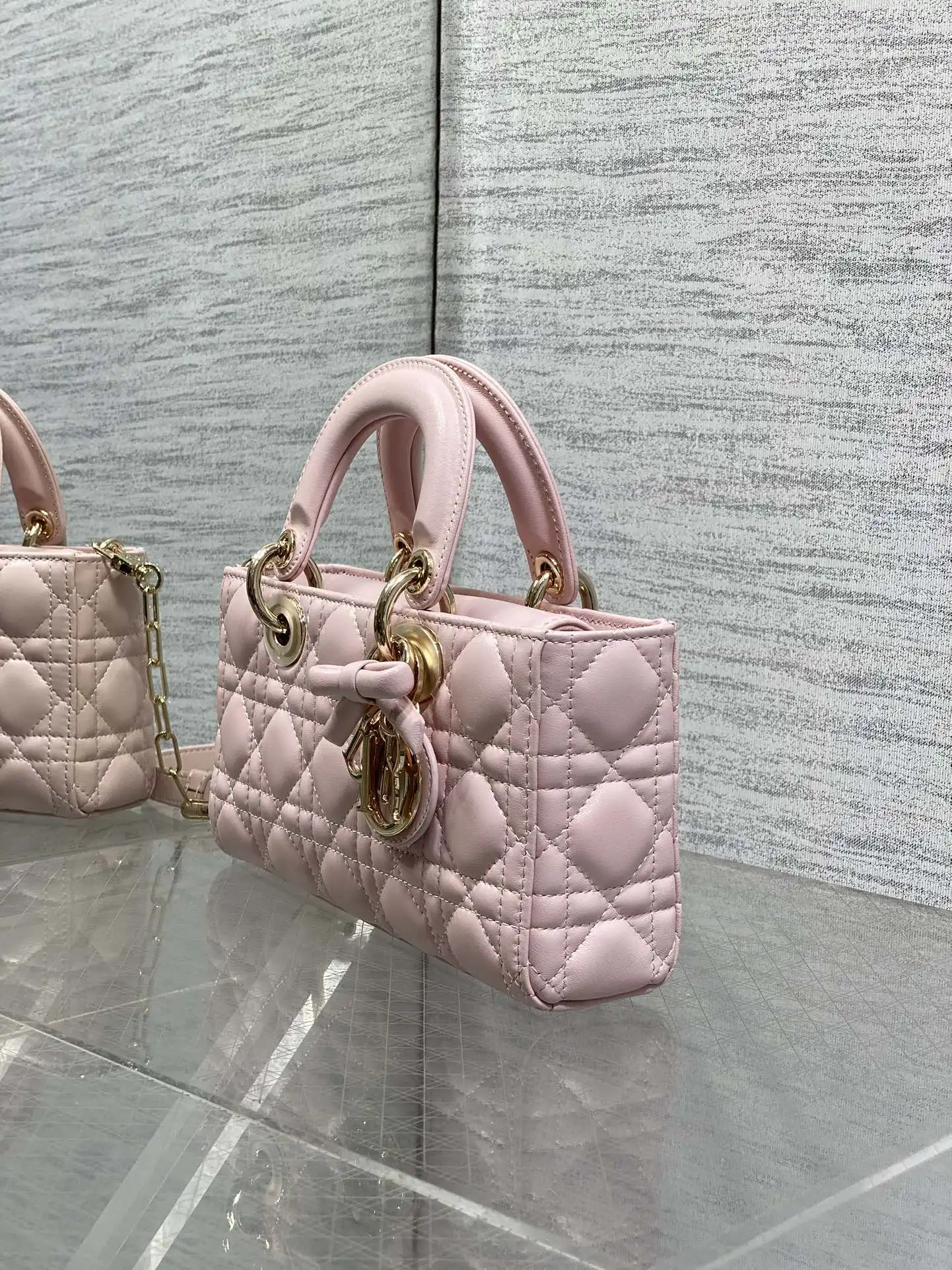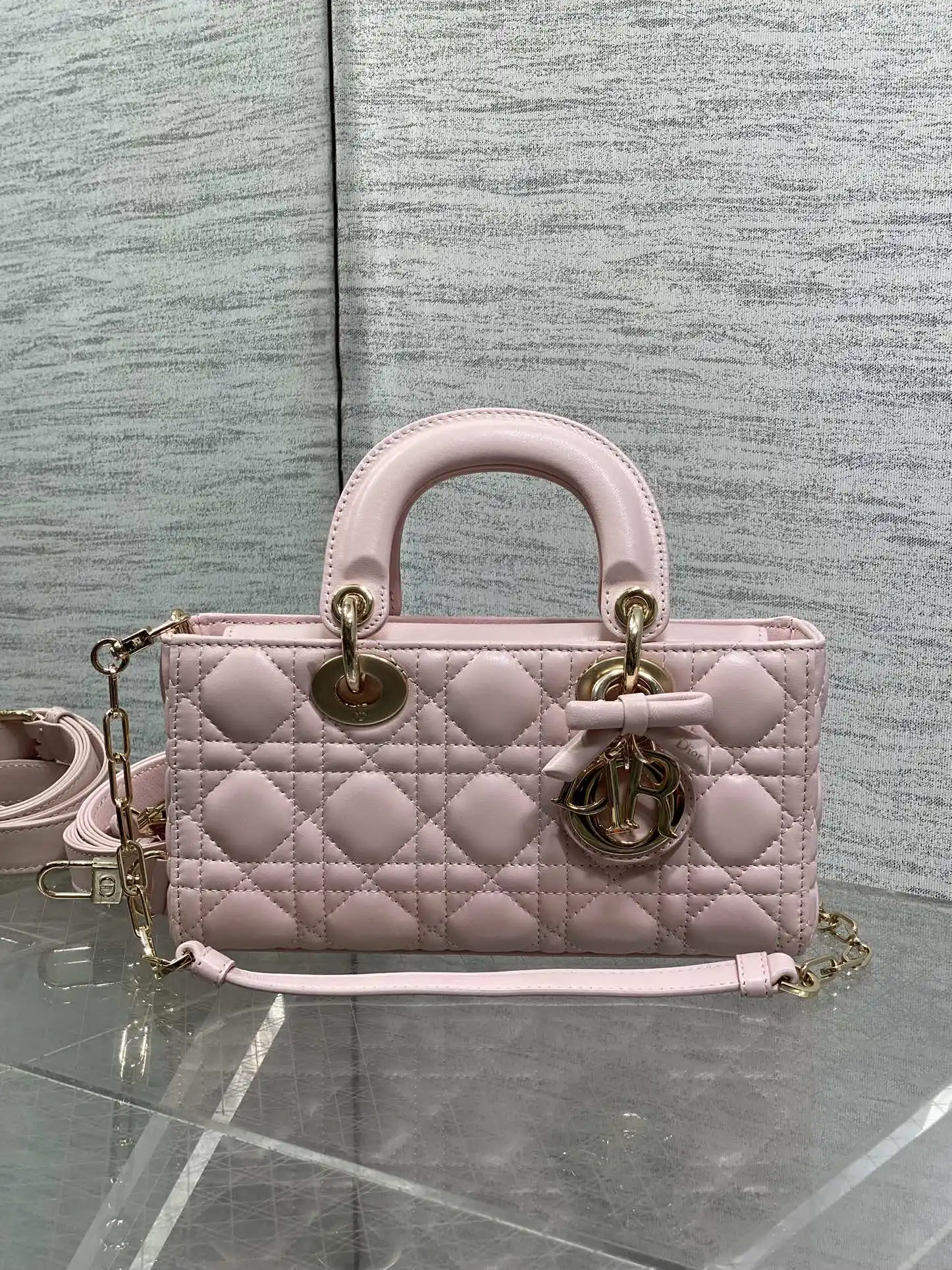 D-joy小号系列最新蝴蝶结五金 新出的尺寸更小巧 更显得精致 大爆款的节奏 包包自带两条肩带 多种背法 上身又美又飒 经典的菱格设计 搭配柔软的绵羊皮优雅又时尚