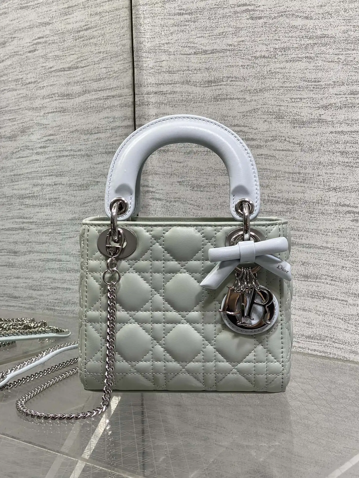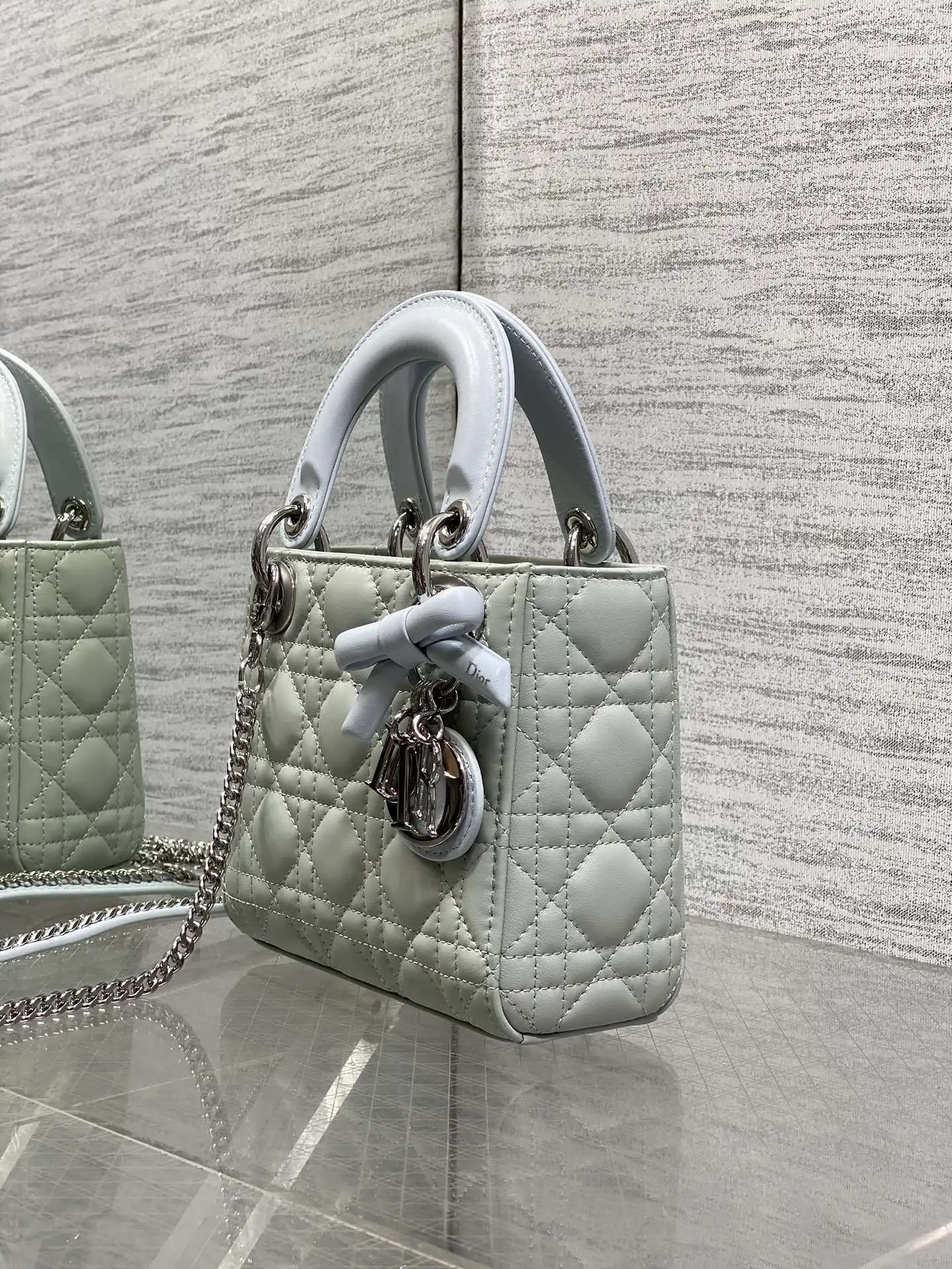 迪奥最新款四格蝴蝶结戴妃包 女士斜挎包