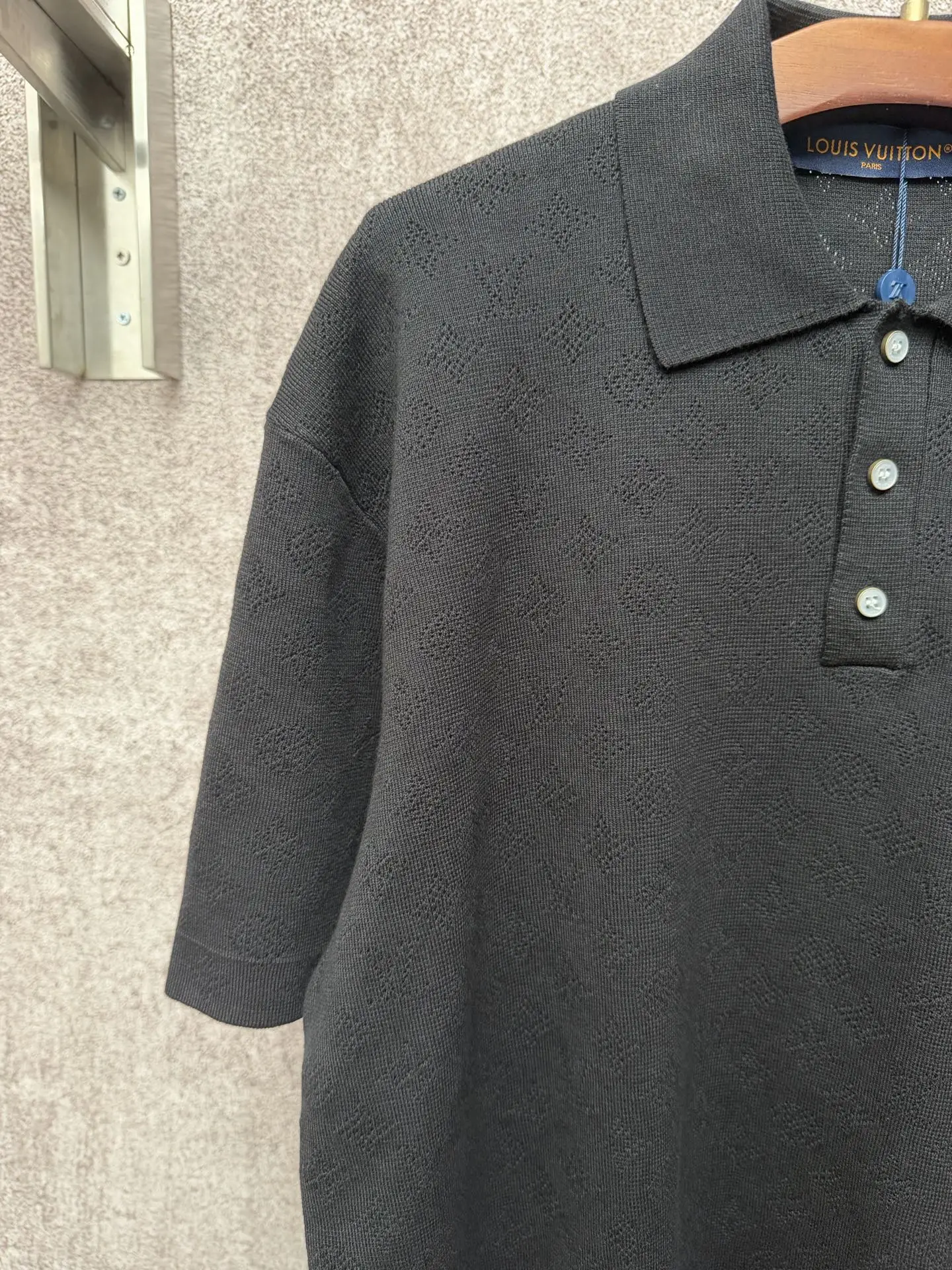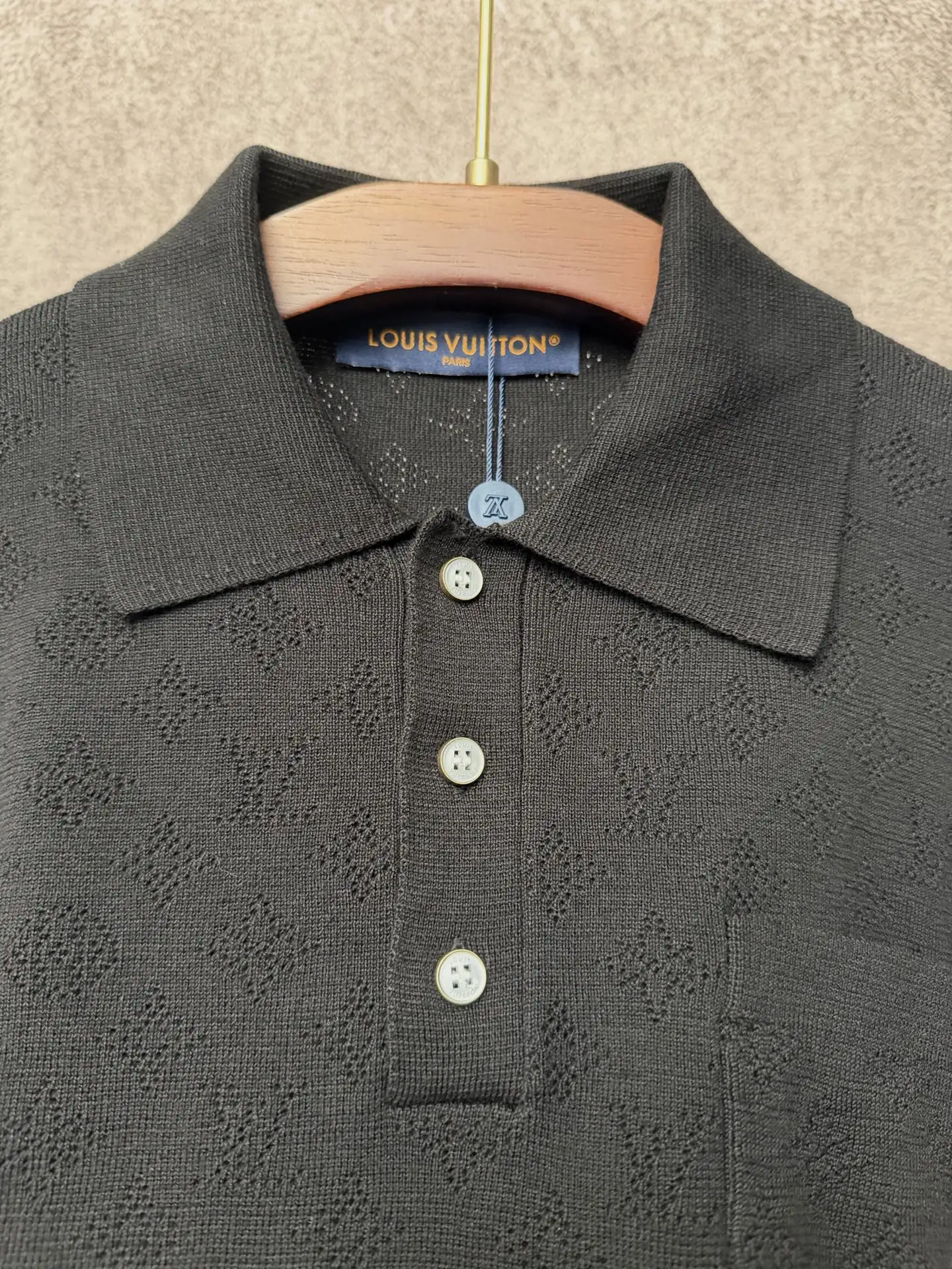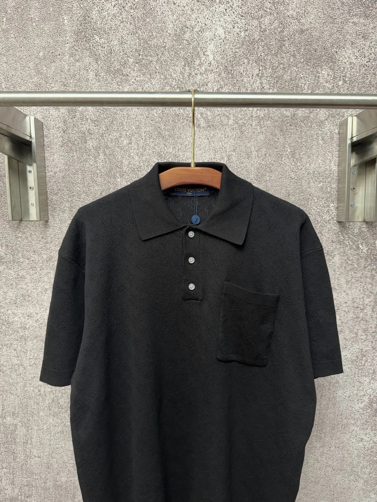 1v/路易 26ss 夏季字母满印镂空提花口袋针织POLO衫 多色