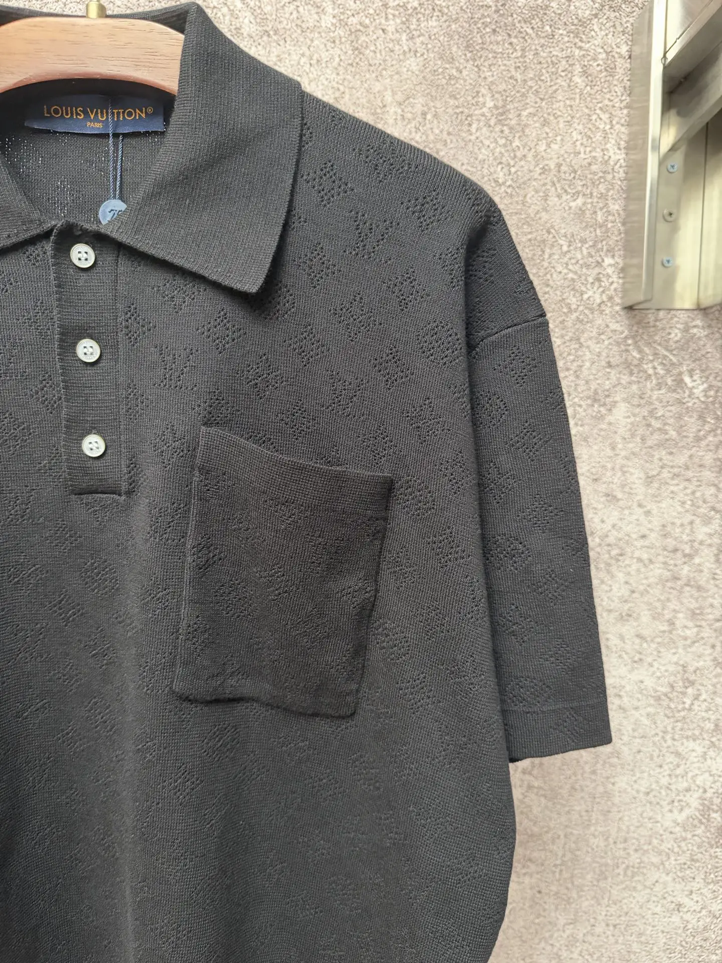 1v/路易 26ss 夏季字母满印镂空提花口袋针织POLO衫 多色 采用透气的镂空针织面料 整体呈现细腻的菱形格纹与暗纹Monogram老花图案 兼具透气性与高级质感尺码 S M L XL