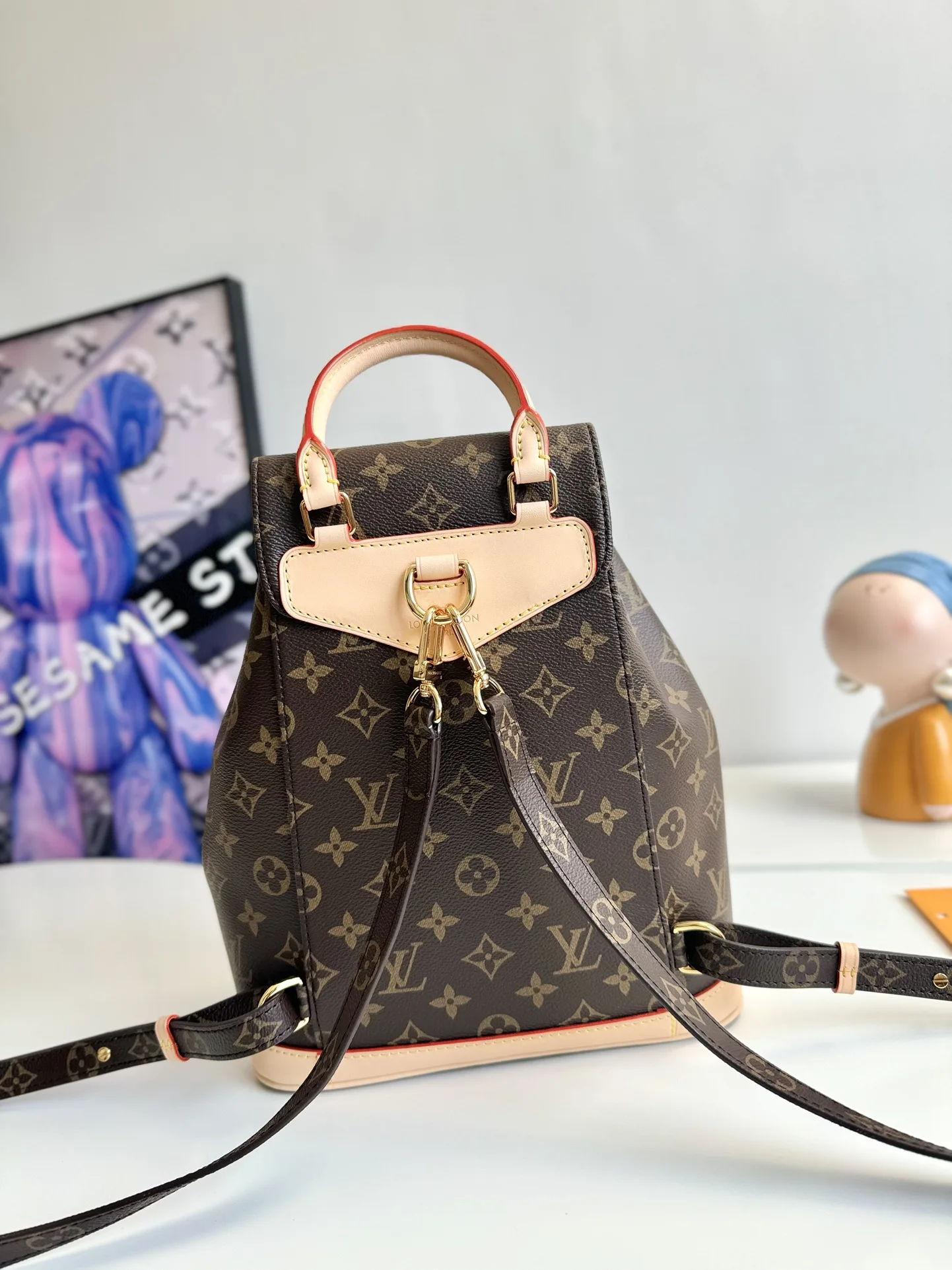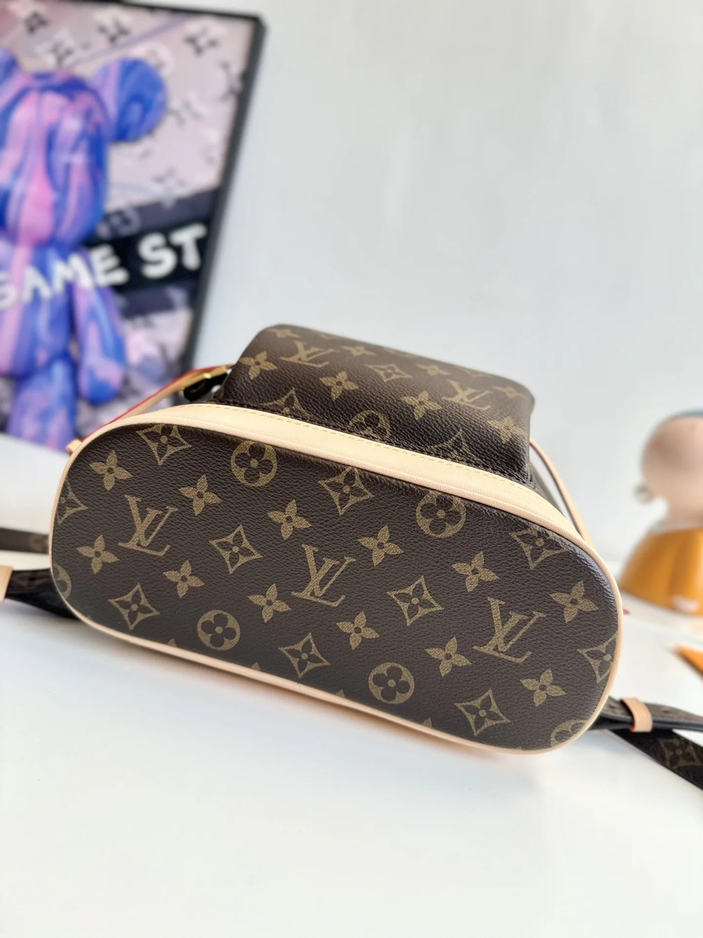 海外原单M11198独家实拍 尼古拉 泽斯基耶尔 Nicola Jesquier 从1994年推出的豪斯的蒙苏里背包中获得灵感 在单色涂层的帆布材质上加入牛皮修饰 推出了实用又时尚的蒙苏里PM背包 利用皮革材质的上部把手和两个可调节的皮带 可以以多种方式携带的物品 高档吊带和磁性锁具 可安全地存放您的物品 尺寸 28×30×18cm
