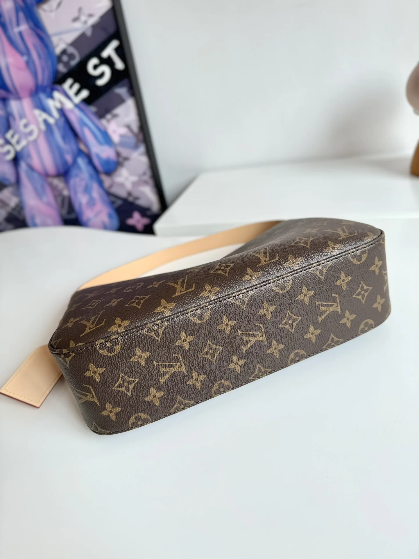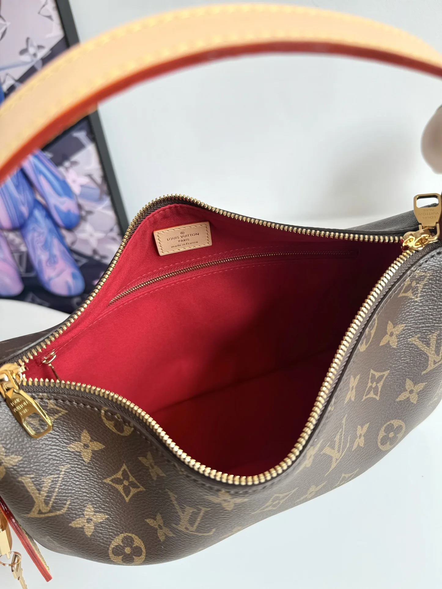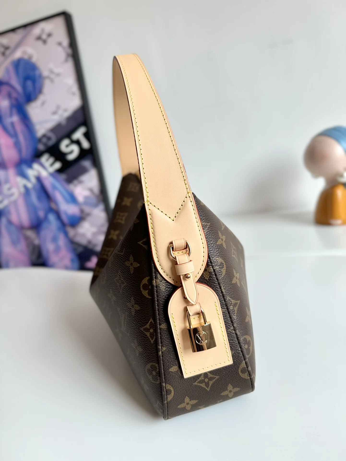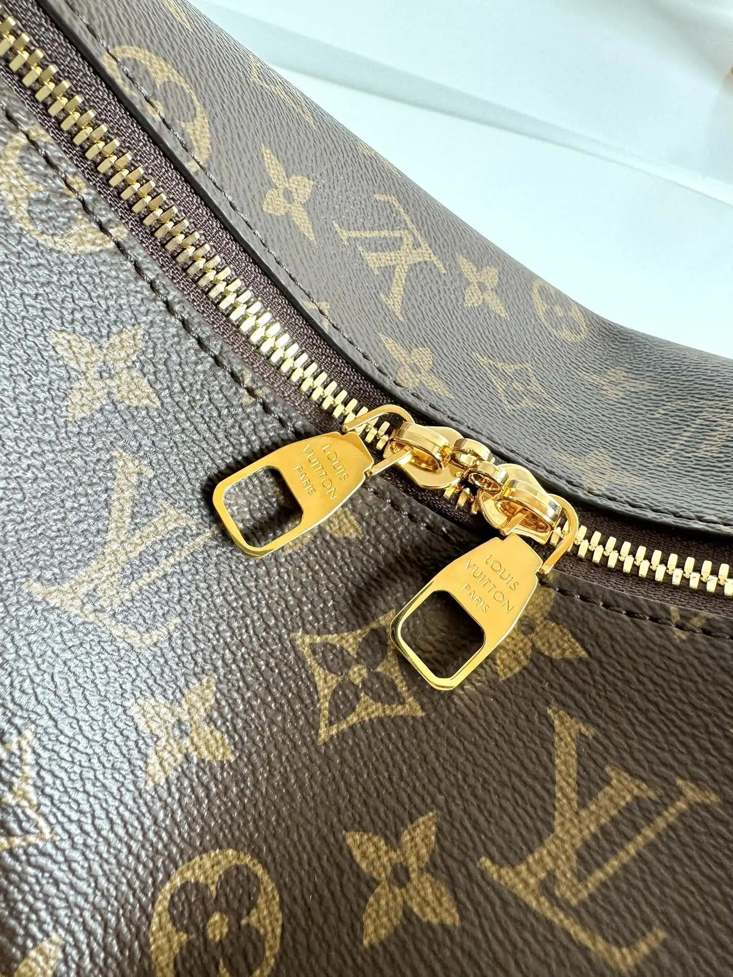 海外原单M11952独家实拍 本款 Slouchy 小号手袋采用路易威登经典 Monogram 帆布 以肩背手提两相宜的别致廓形驾驭商务办公或周末出游等各式场合 崭新挂锁和名牌标注新季素 彰显品牌的悠久传承与精湛工艺 尺寸 33×22×9cm