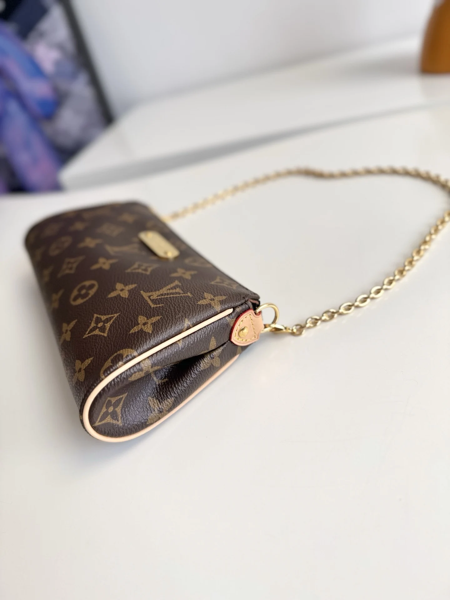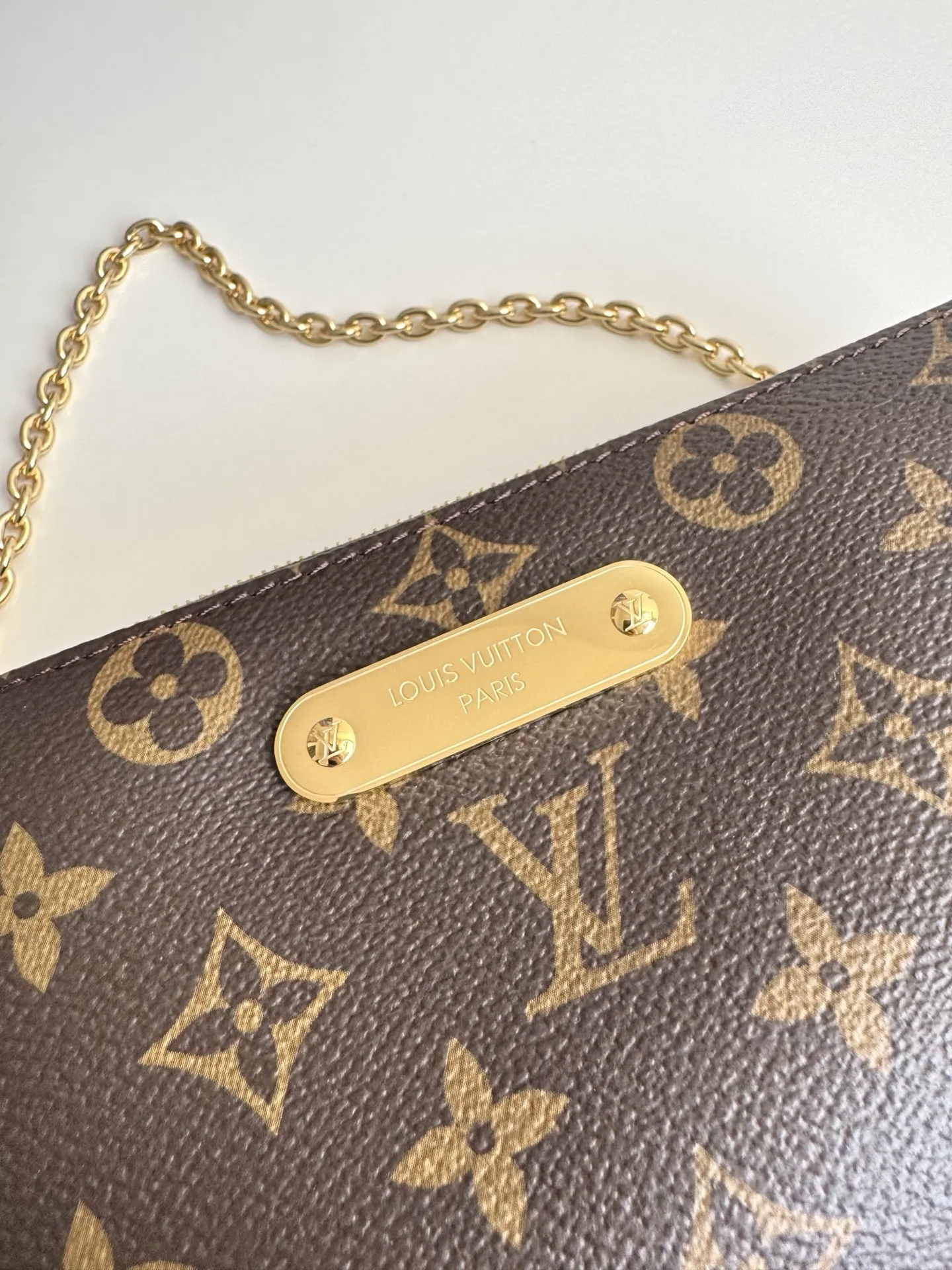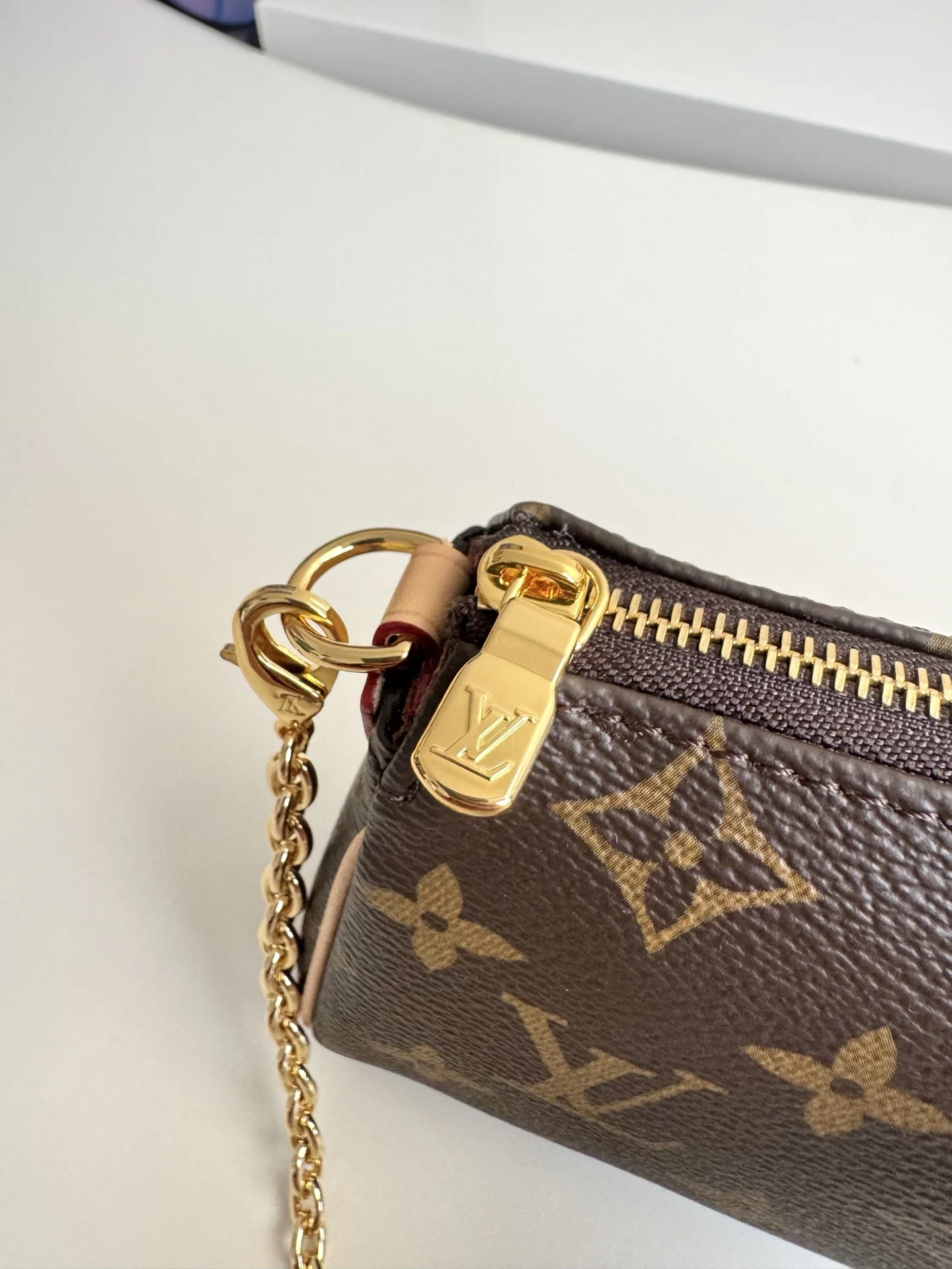 海外原单M13567独家实拍 本款 Pochette Eva 手袋为品牌 Monogram 帆布搭配撞色皮革饰边 以别致笔触传递典雅风范 铭纹标识牌和可拆卸链条相得益彰 恰宜构型便于收纳短款夹和化妆品等日常所需 尺寸 27×11×5cm
