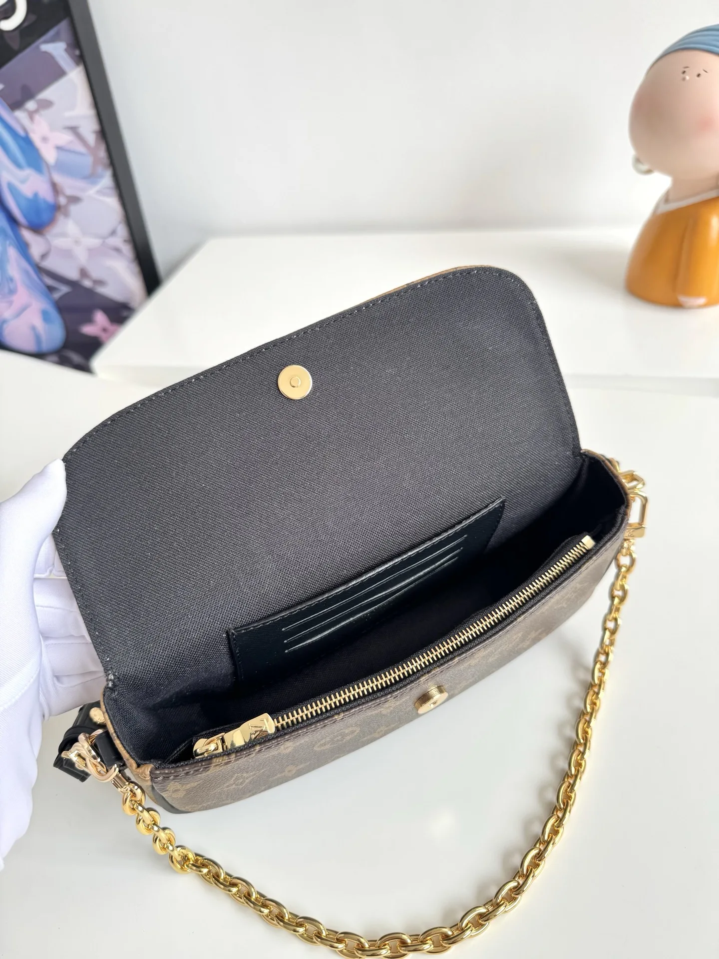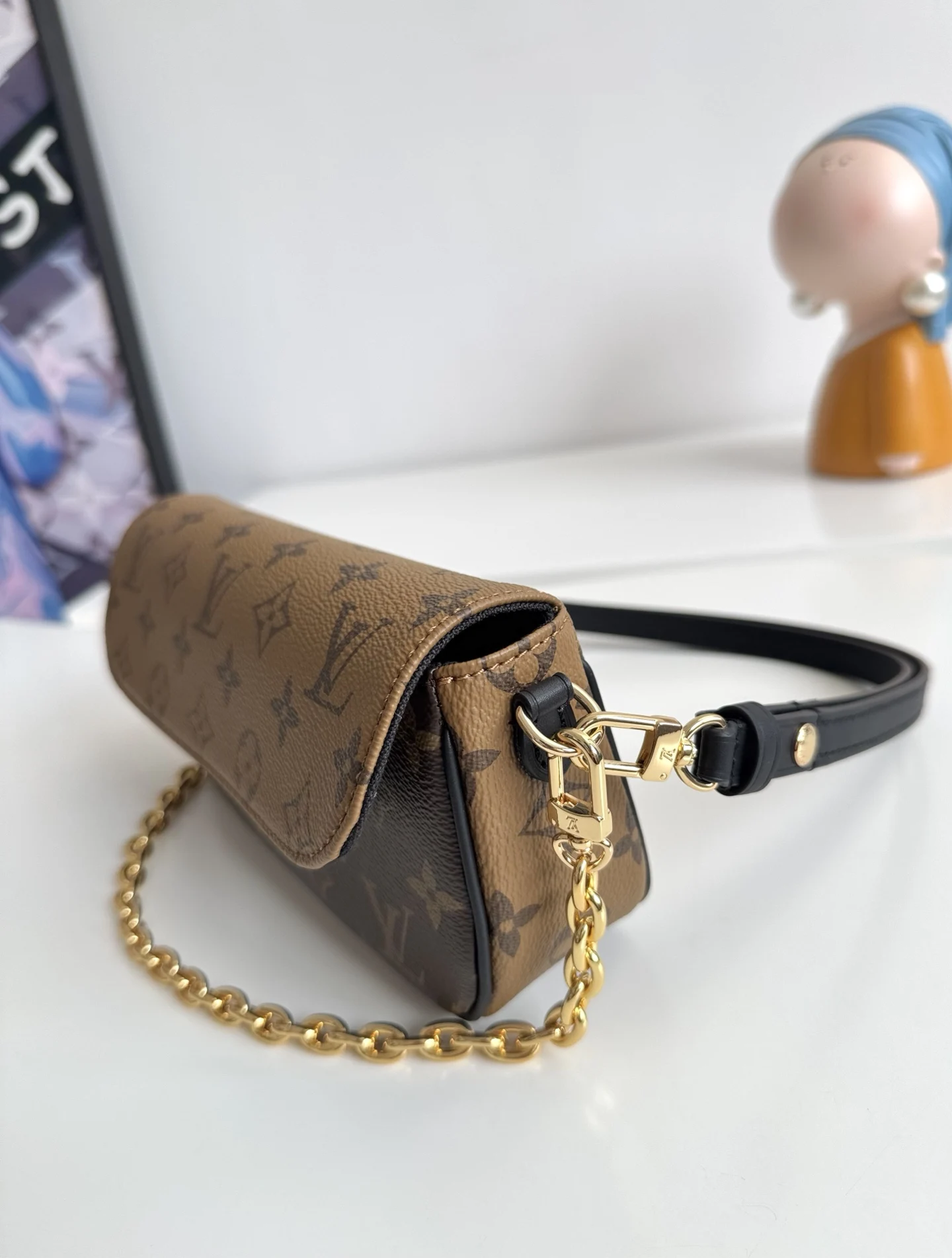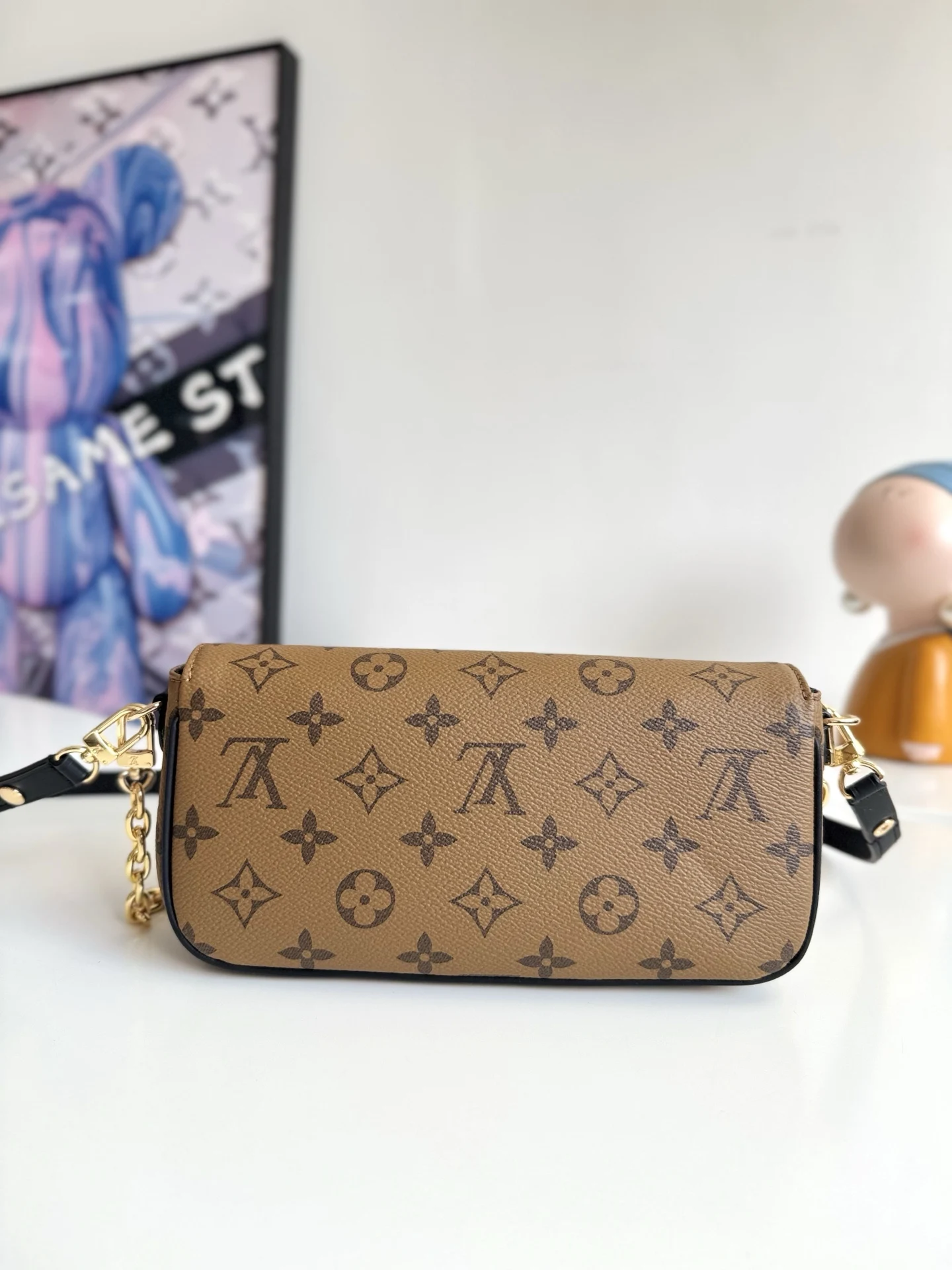 海外原单M26587独家实拍 本款 Wallet On Chain Ivy 手袋取材 Monogram Reverse 帆布 巧妙展现当季定向思维 可拆卸金属链条与 LV 字母相得益彰 齐整内里设有贴袋和卡位 可稳妥收纳日常所需 尺寸23.5×12×4cm