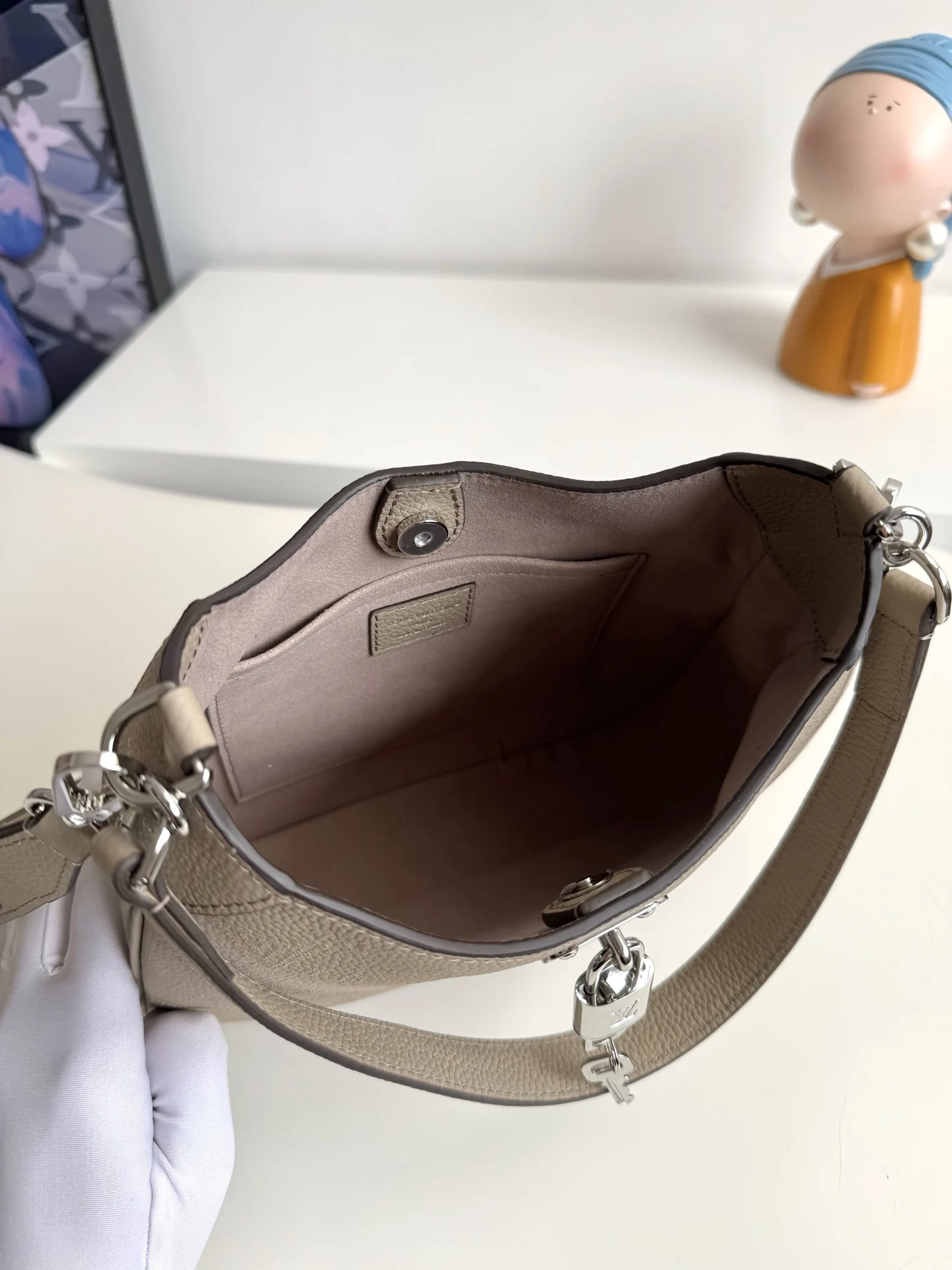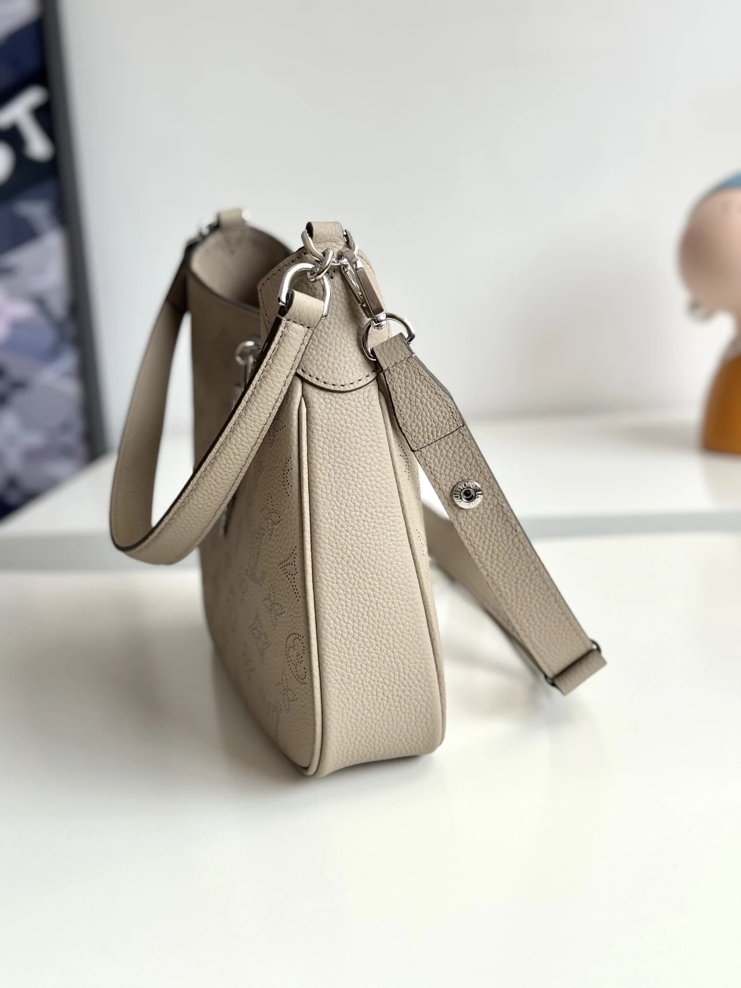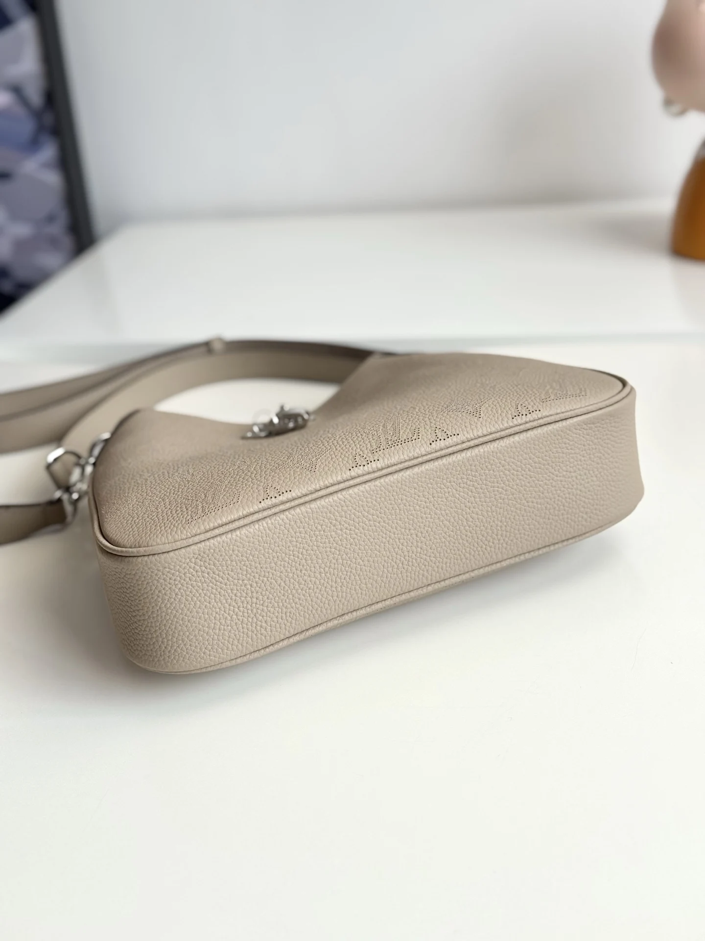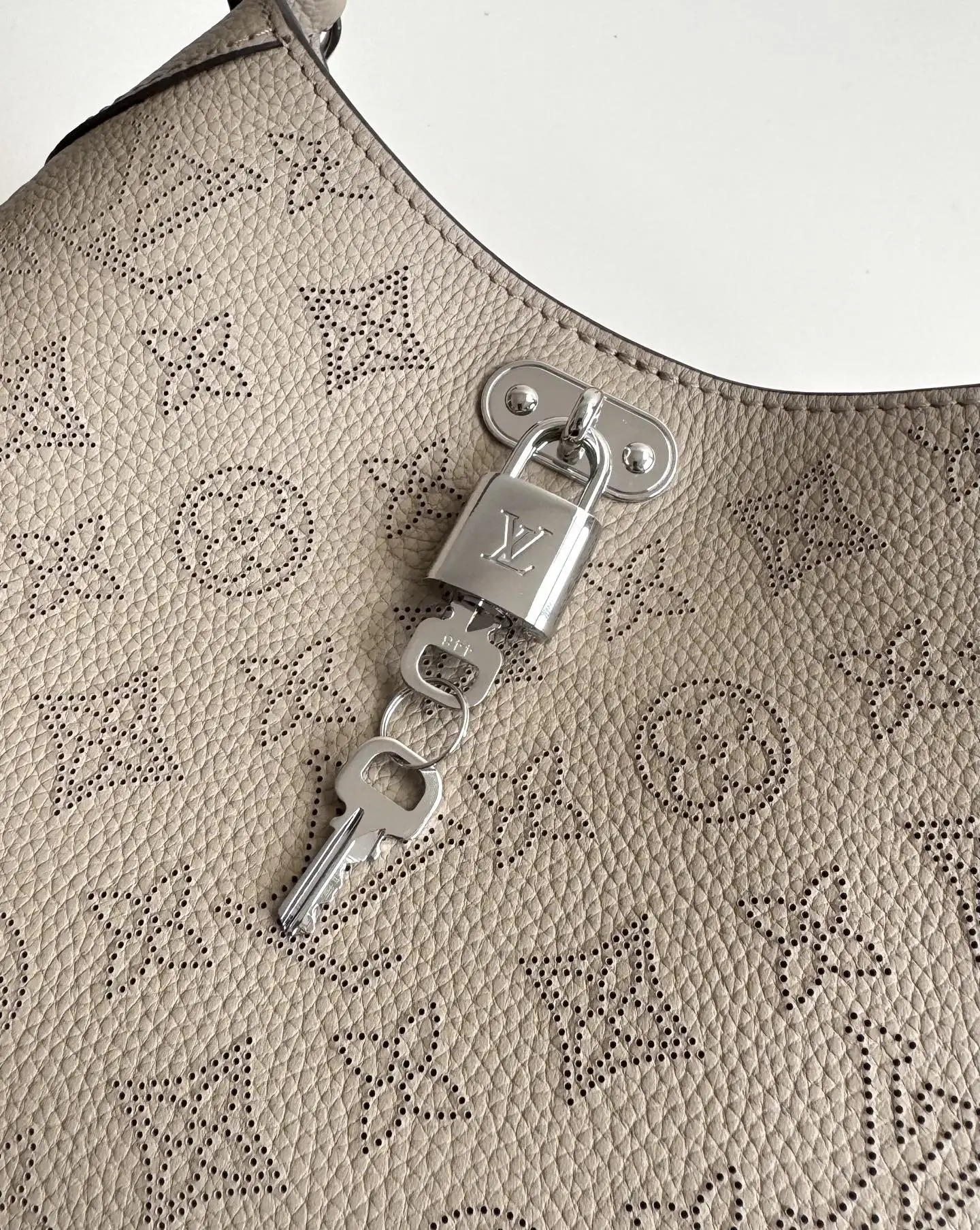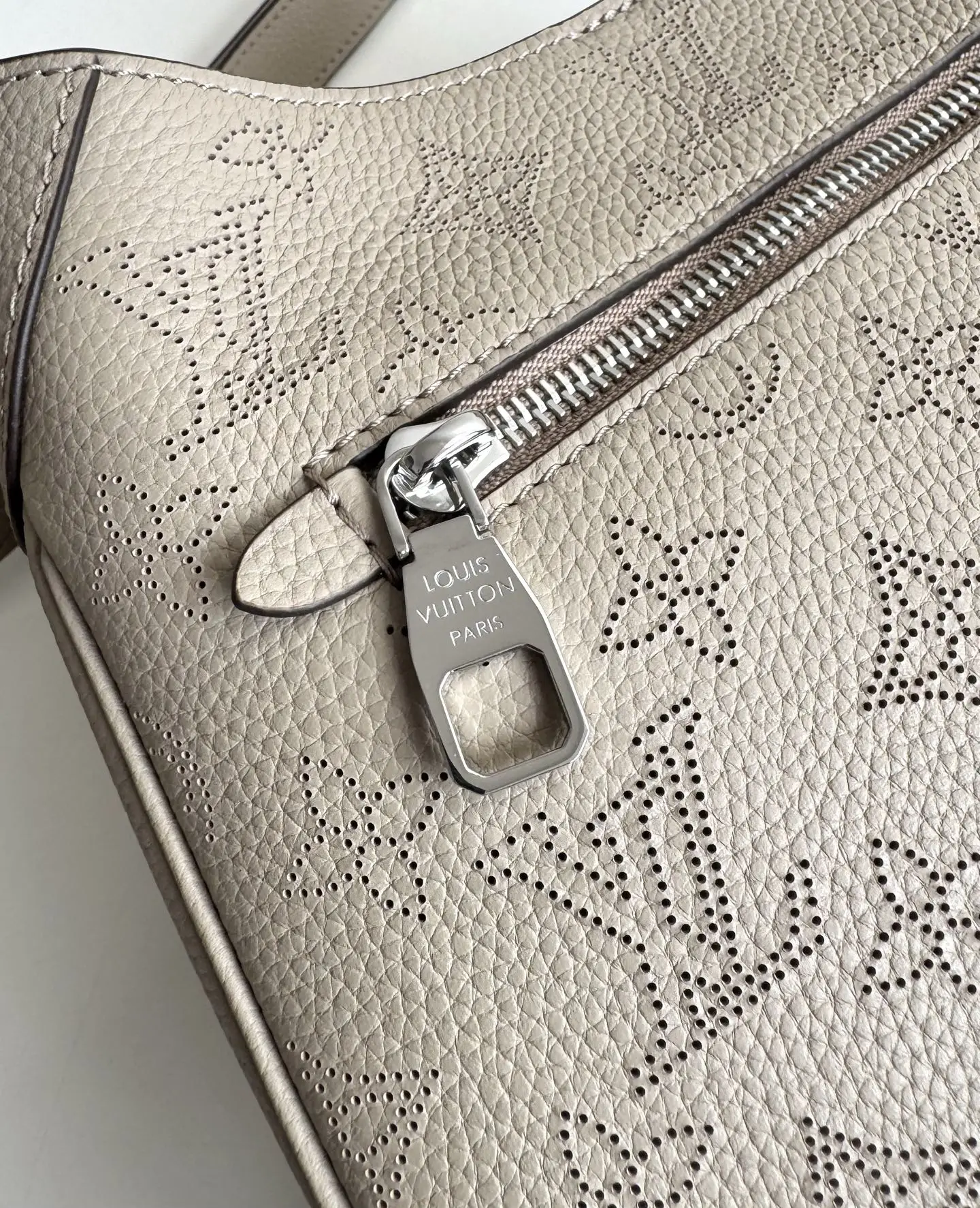 海外原单M27336独家实拍 本款 All Around 小号手袋出自 Mahina 系列 以 Monogram 穿孔牛皮革呈现优雅色调 搭配金属 LV 挂锁 可调节肩带和手柄 可轻松点亮各式造型 尺寸 25×20×6cm
