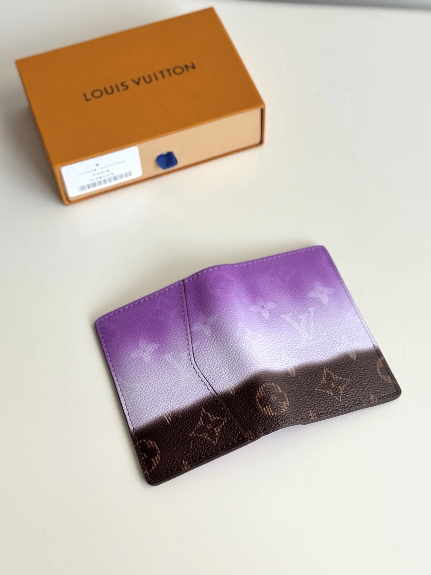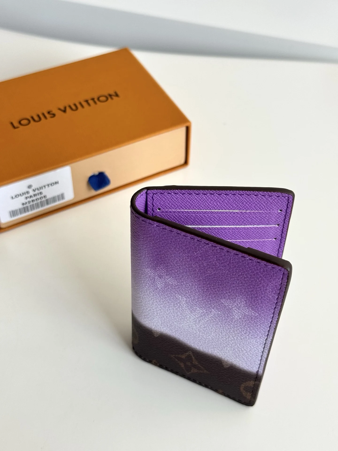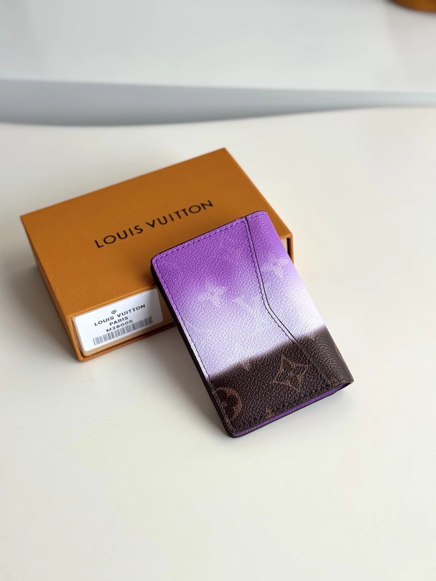 海外原单M28005独家实拍 本款口袋夹取材 Monogram Pigment 帆布 以精湛印花工艺营造视觉意趣 仿佛颜料直接涂刷于帆布之上 渐变色彩为紧凑构型再添悦然活力 卡片夹层 内袋和后部外袋实现齐整收纳 尺寸 11×7.5cm
