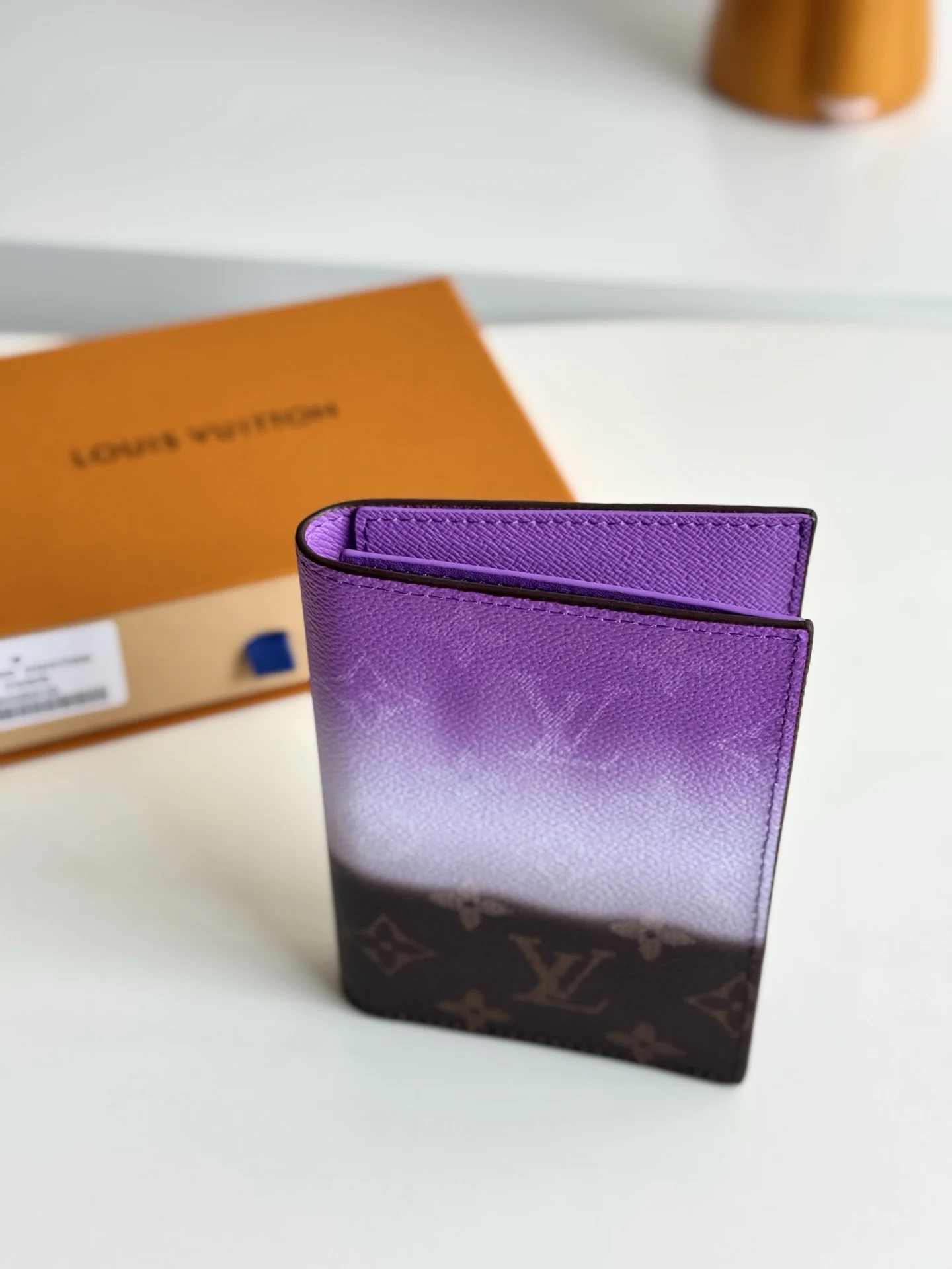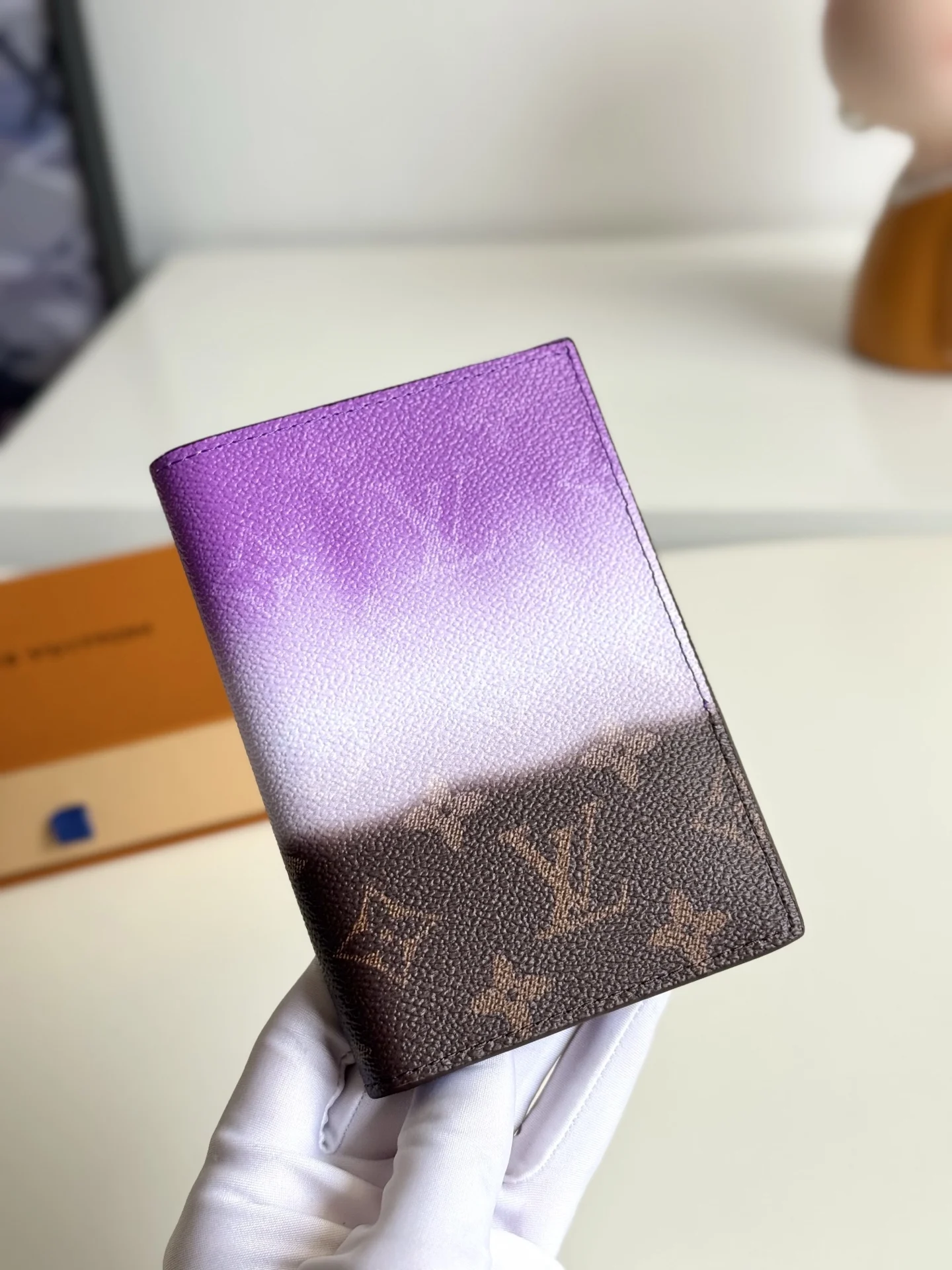 海外原单M28010独家实拍 本款护照套取材 Monogram Pigment 涂层帆布 以大胆渐变设计描摹喷绘效果 Monogram 图案 经典构型令护照轻松随行 内袋和卡片夹层再添功能考量 尺寸 14×10×2.5cm