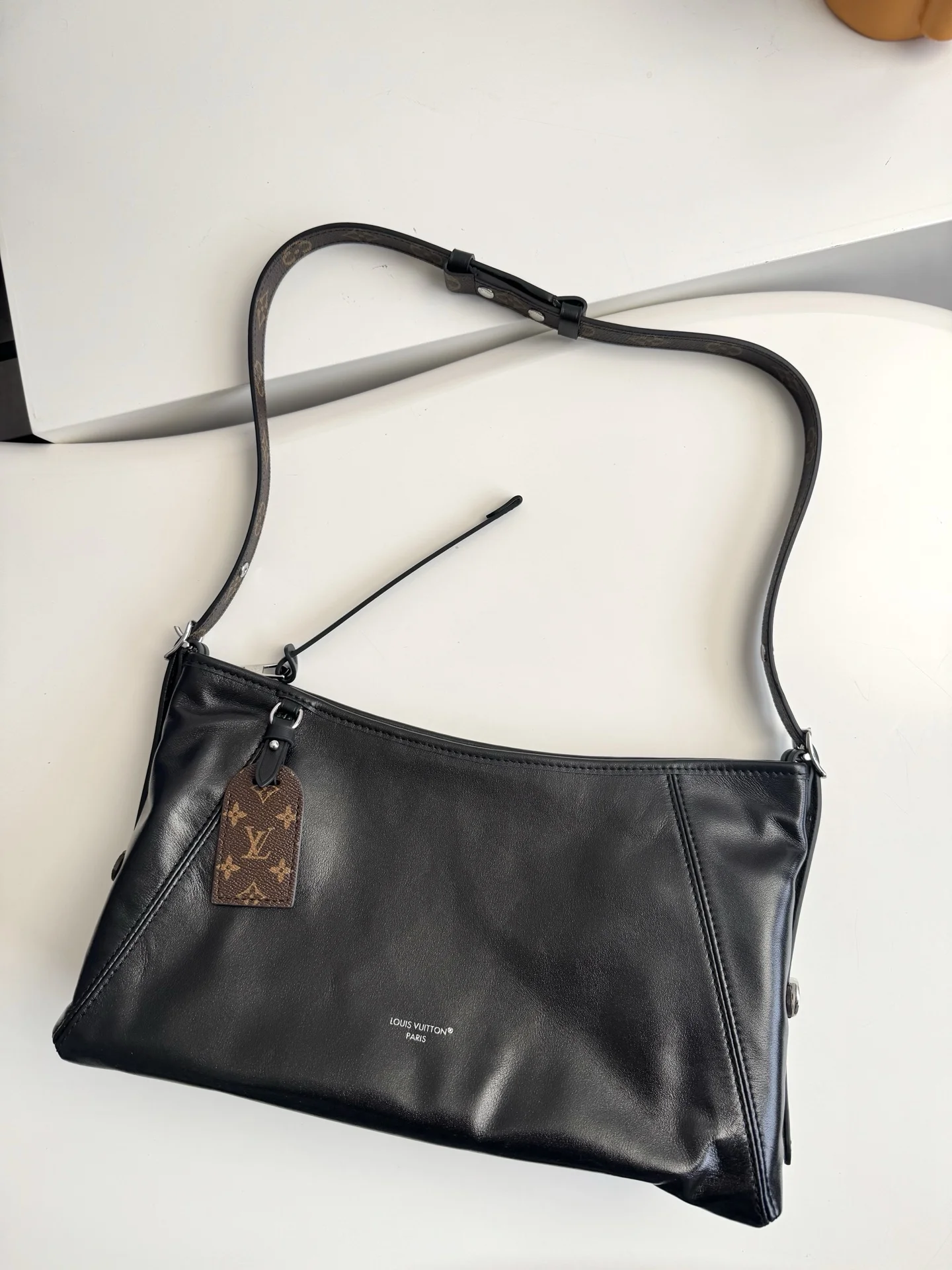 海外原单M28160独家实拍 LV Vibe 系列推出 Carryall East West 手袋 巧妙融合经典细节与摩登廓形 柔软羊皮革包身配有 Monogram 素 名牌致敬品牌典藏硬箱设计 恰宜尺寸可轻松容纳日常所需 可拆卸肩带实现斜挎 肩背和手提选择 尺寸 36×19×10cm
