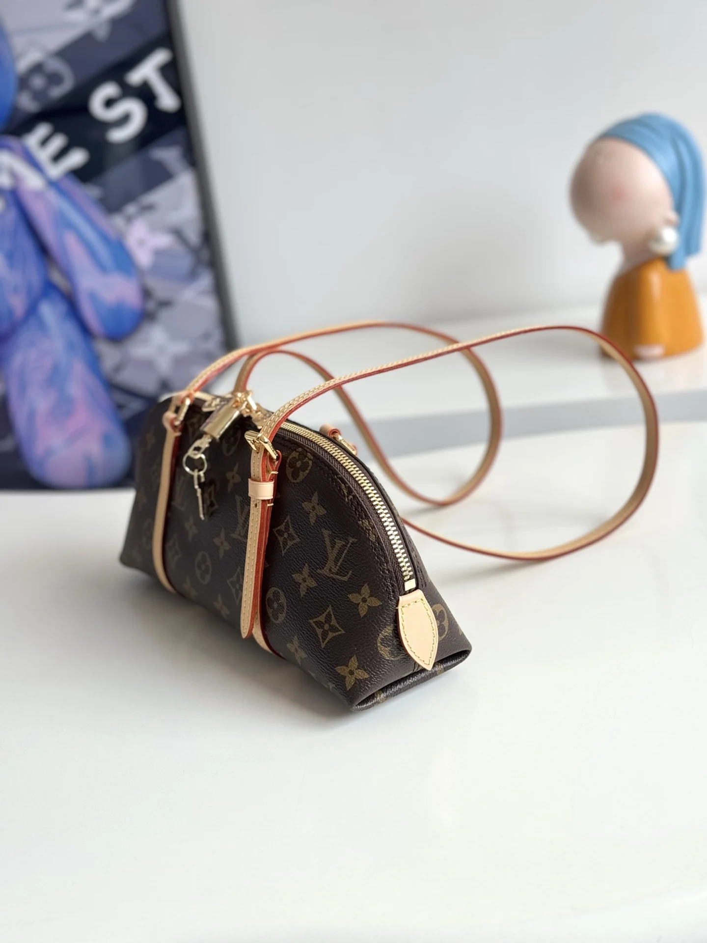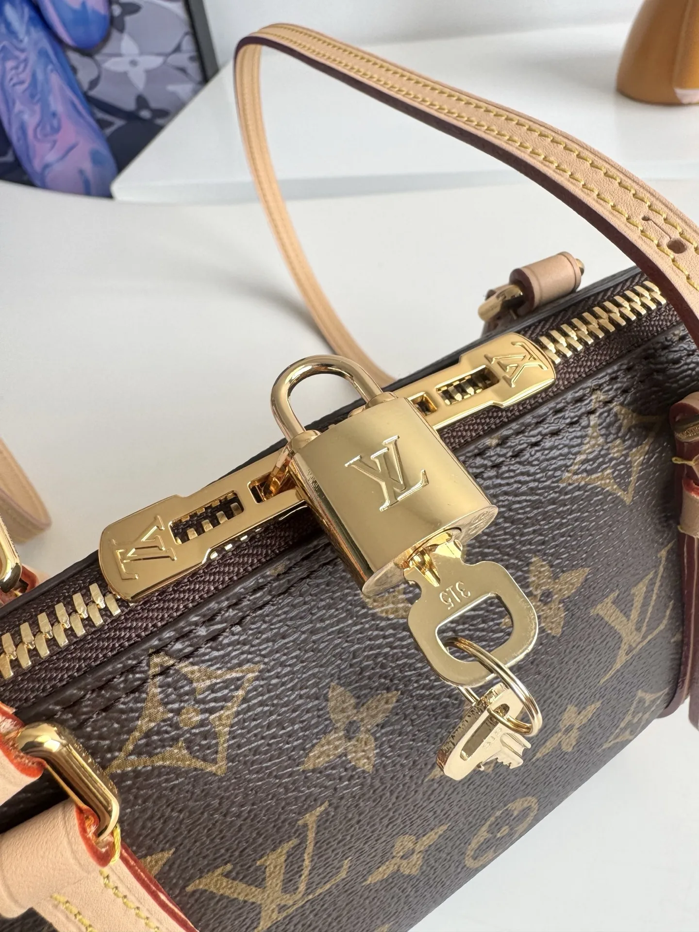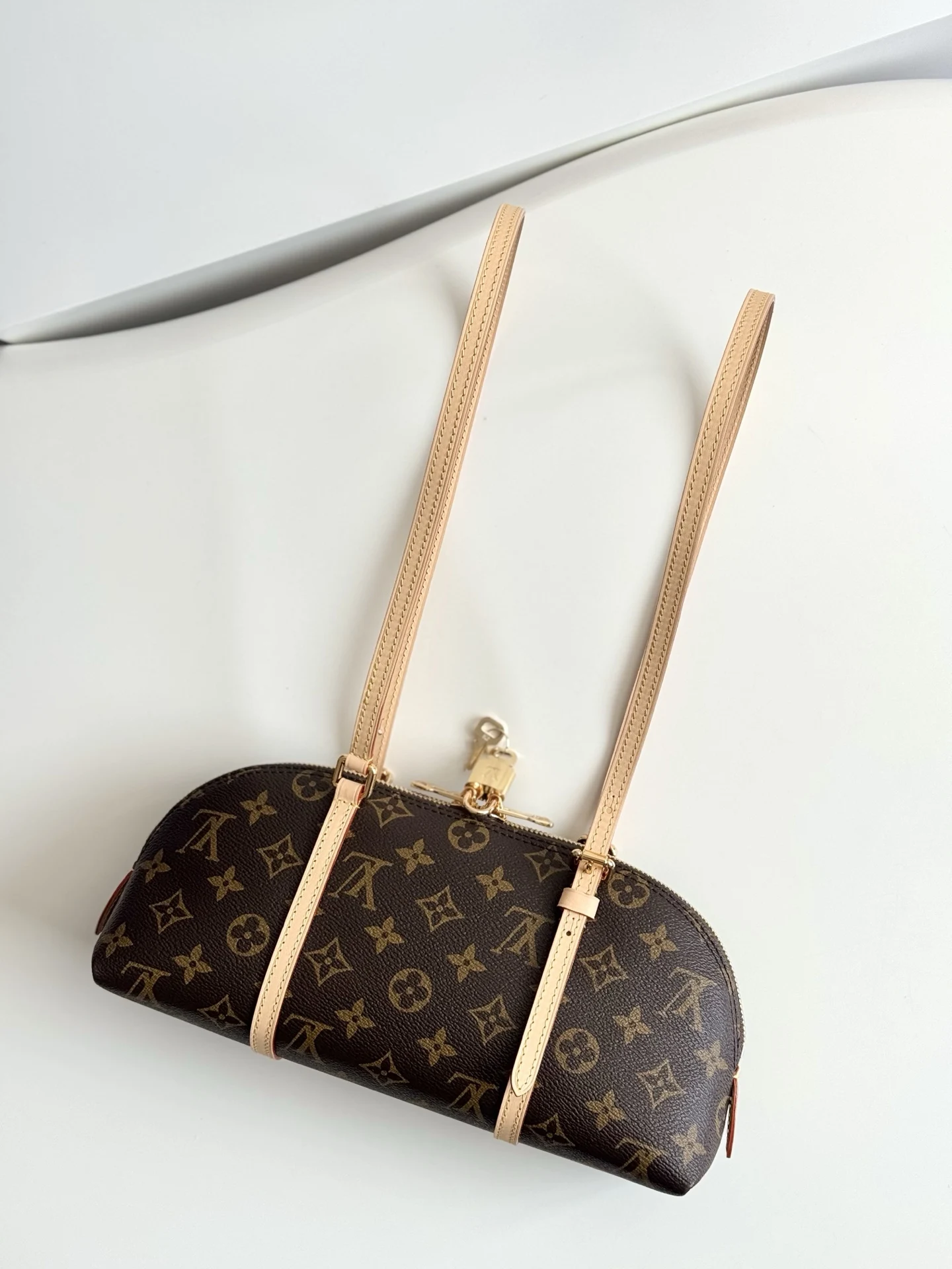 海外原单M28953独家实拍 本款 Squire East West 手袋致敬 1934 年诞生的 Alma 手袋前身 以 Monogram 帆布和皮革饰边打造都市通勤之选 内设贴袋和充裕空间 方便存放手机 卡夹或其他用品 耀目挂锁再添考究细节 尺寸 29×14×8cm