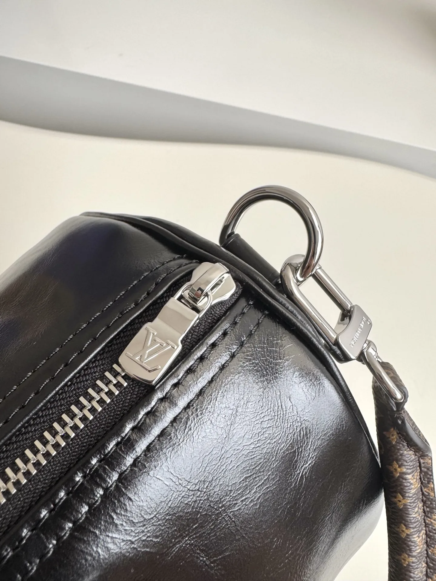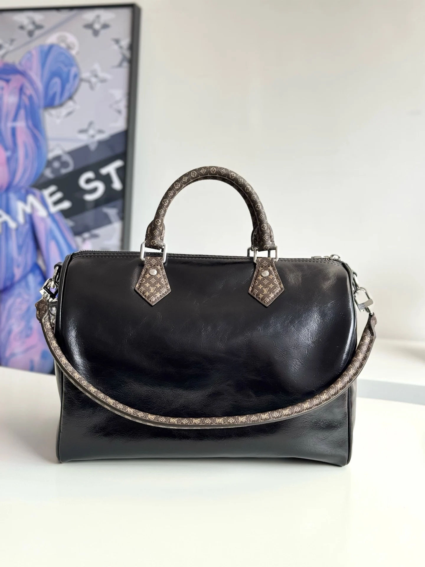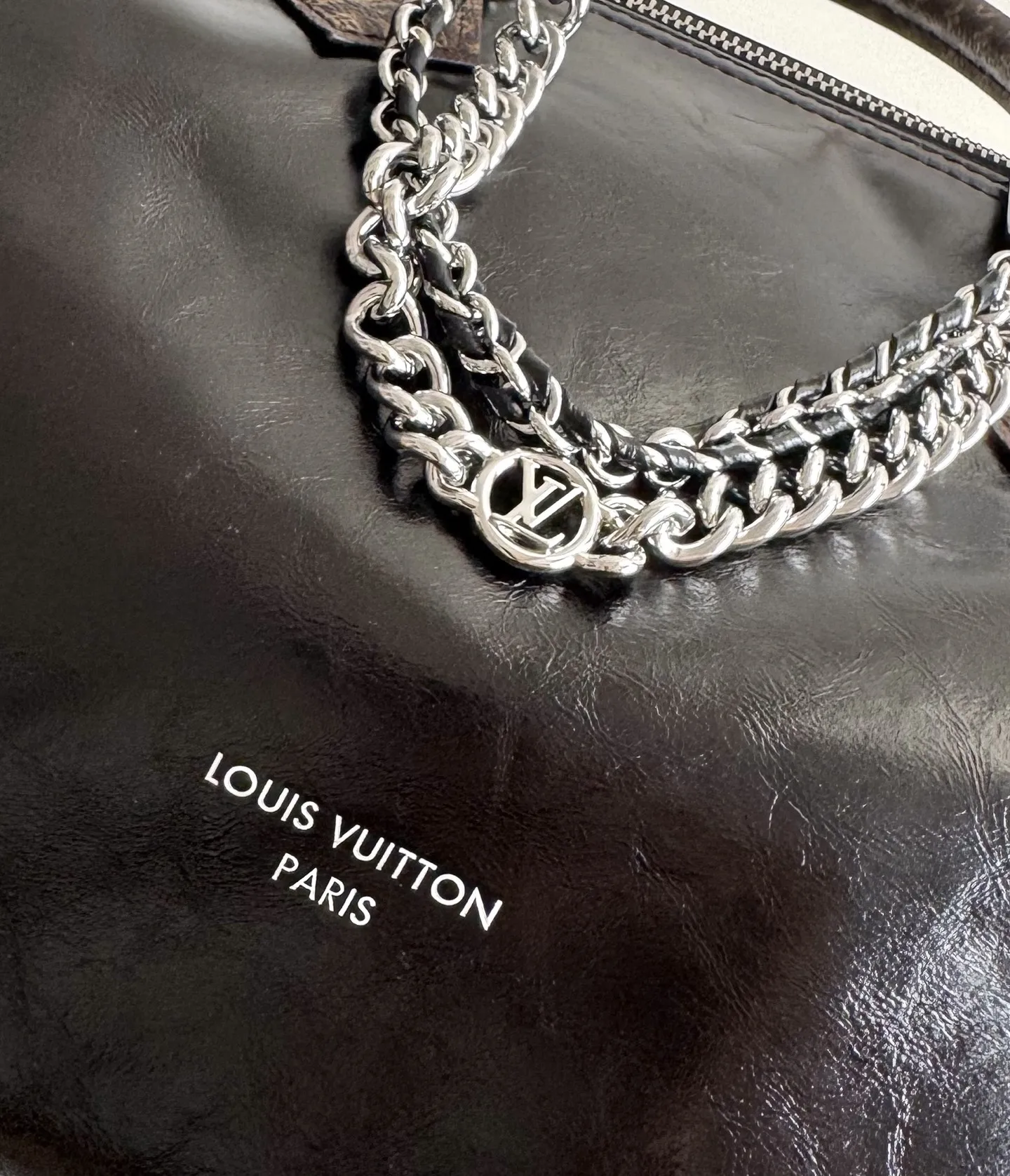 海外原单M29419独家实拍 本款 Speedy Soft 30 手袋质感轻盈 以潮酷摇滚风格演绎经典设计 打造时尚瞩目的个性之作 采用光泽感褶皱皮革精制 搭配迷你 Monogram 图案帆布饰边 专为都市生活而设计 背携方式多样 独具一格的链条点缀 LV Circle 标识 平添考究格调 充裕空间可容纳笔记本电脑等日常所需 尺寸 30×21×17cm