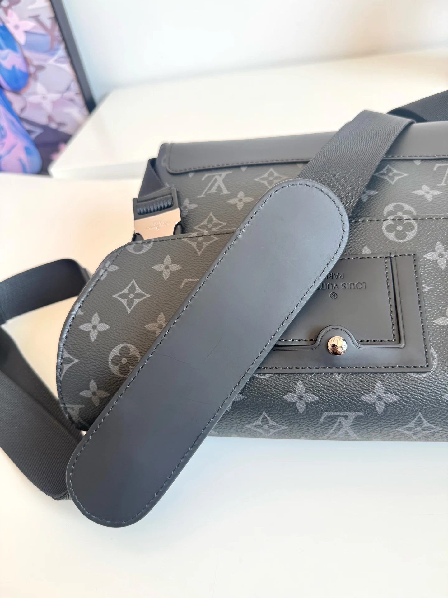 海外原单M40511独家实拍 以经典学院风格为设计灵感 此款Messenger PM Voyager小号邮差包采用柔软的Monogram Eclipse帆布材质 提携十分舒适 双搭扣设计 便利的可调节肩带 众多的内部隔层 满足都市生活的使用需求 尺寸 33×22.5×11cm