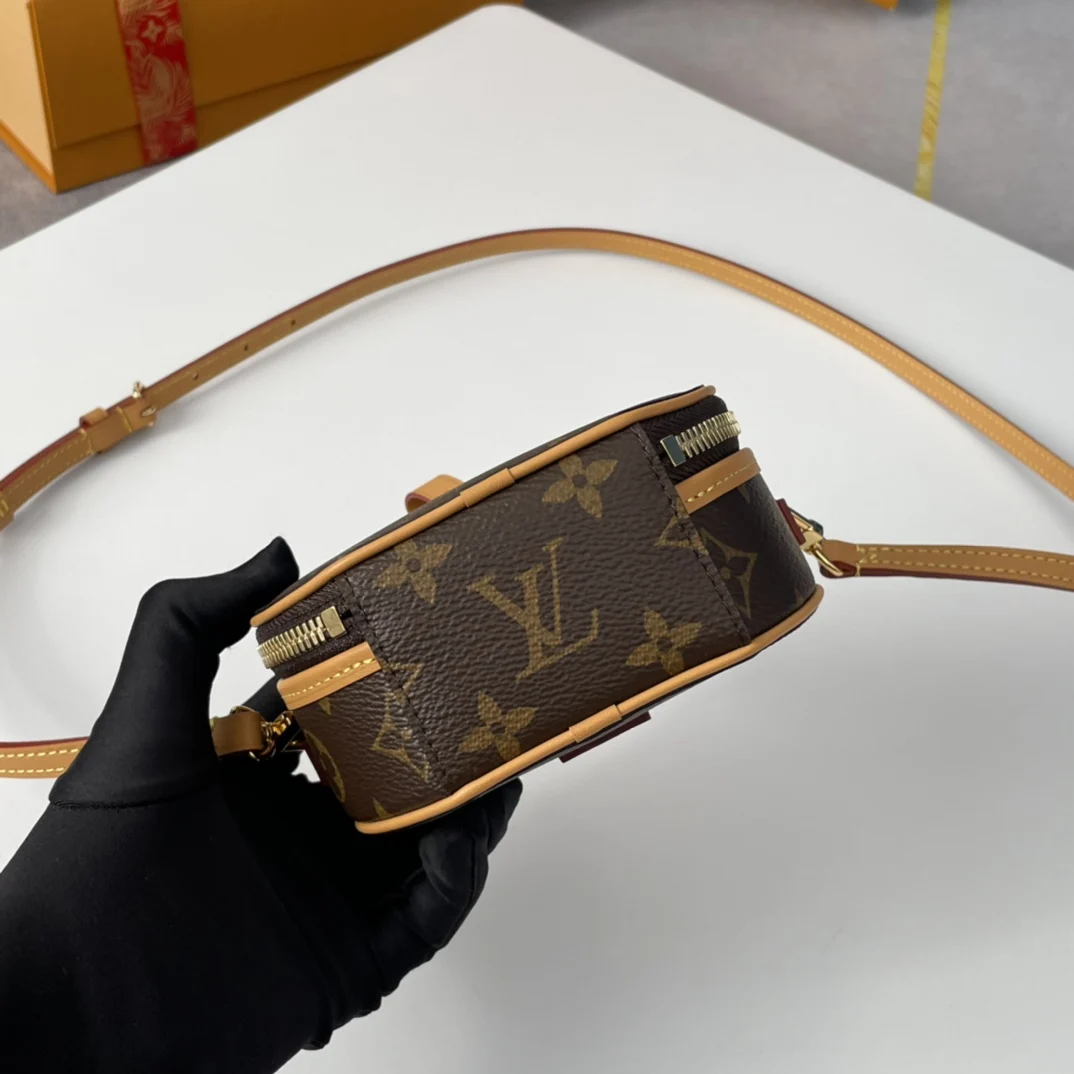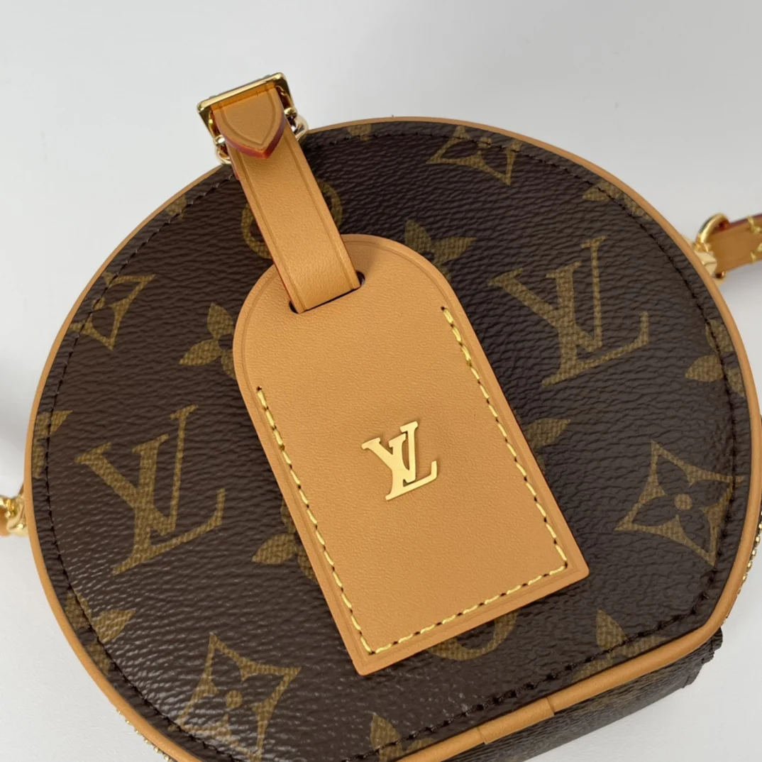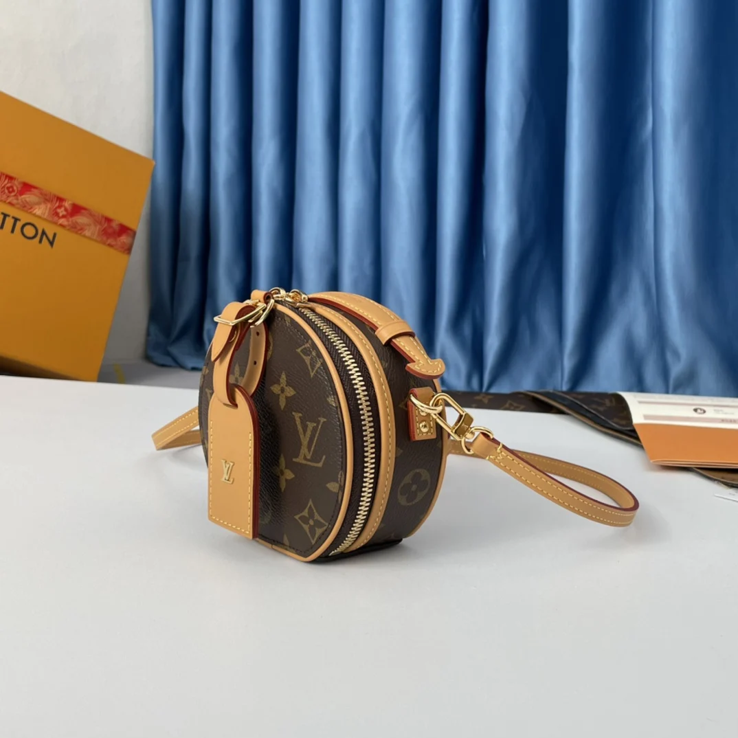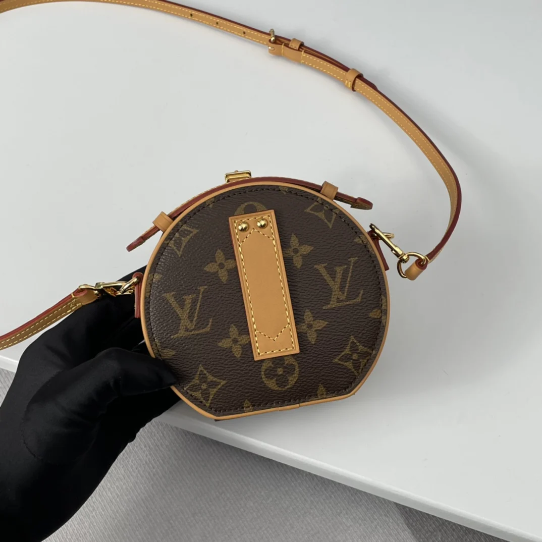 海外原单M44699独家实拍 Boite Chapeau 迷你包选用 Monogram Reverse 涂层帆布 点缀 Malletage 绗缝内衬 致敬品牌传统细节 打开拉链展现考究内里 配有大号风琴隔层 配有可拆卸肩带 可系于腰间 手持或肩背 尺寸 13×12×6.5cm