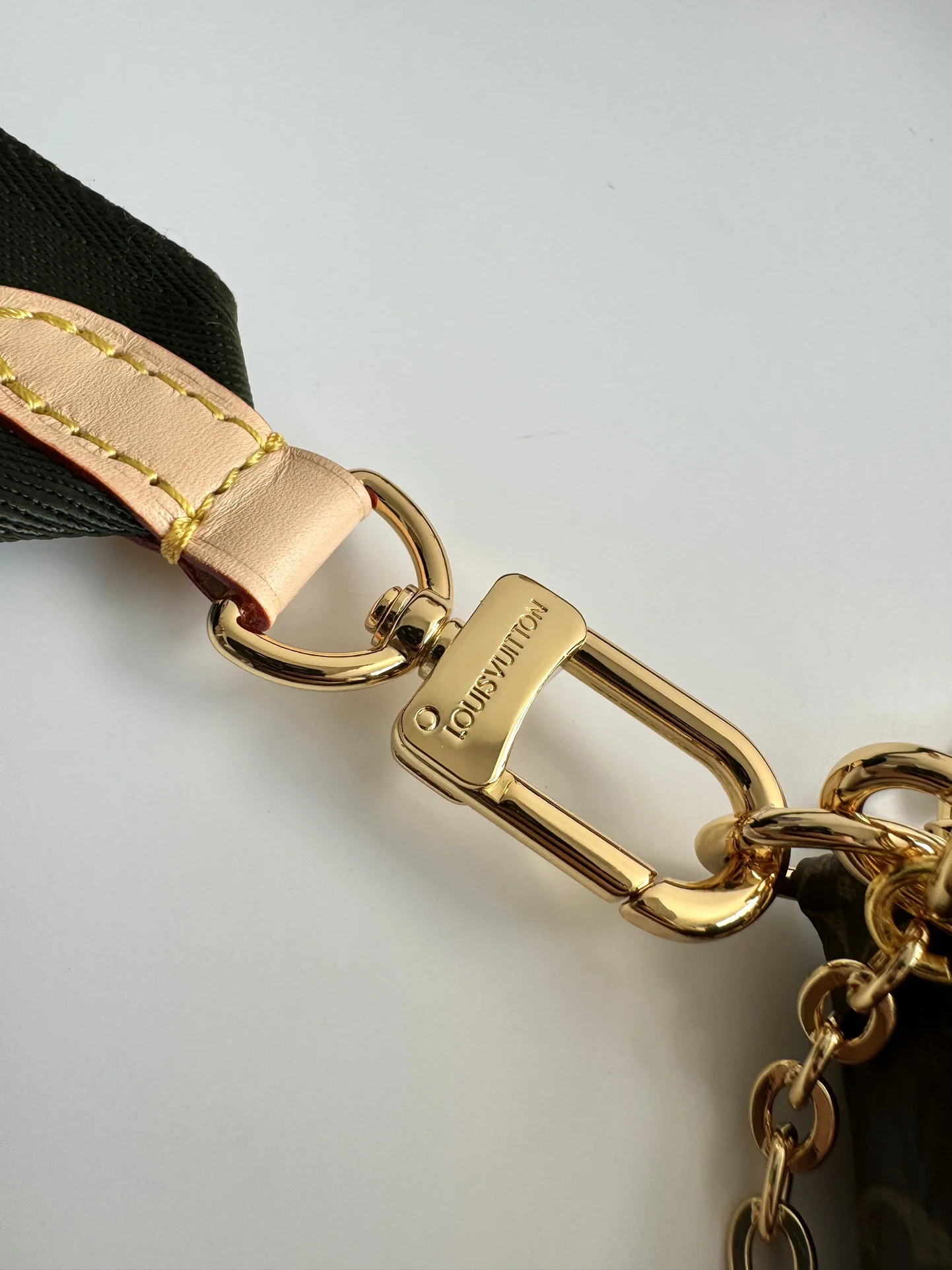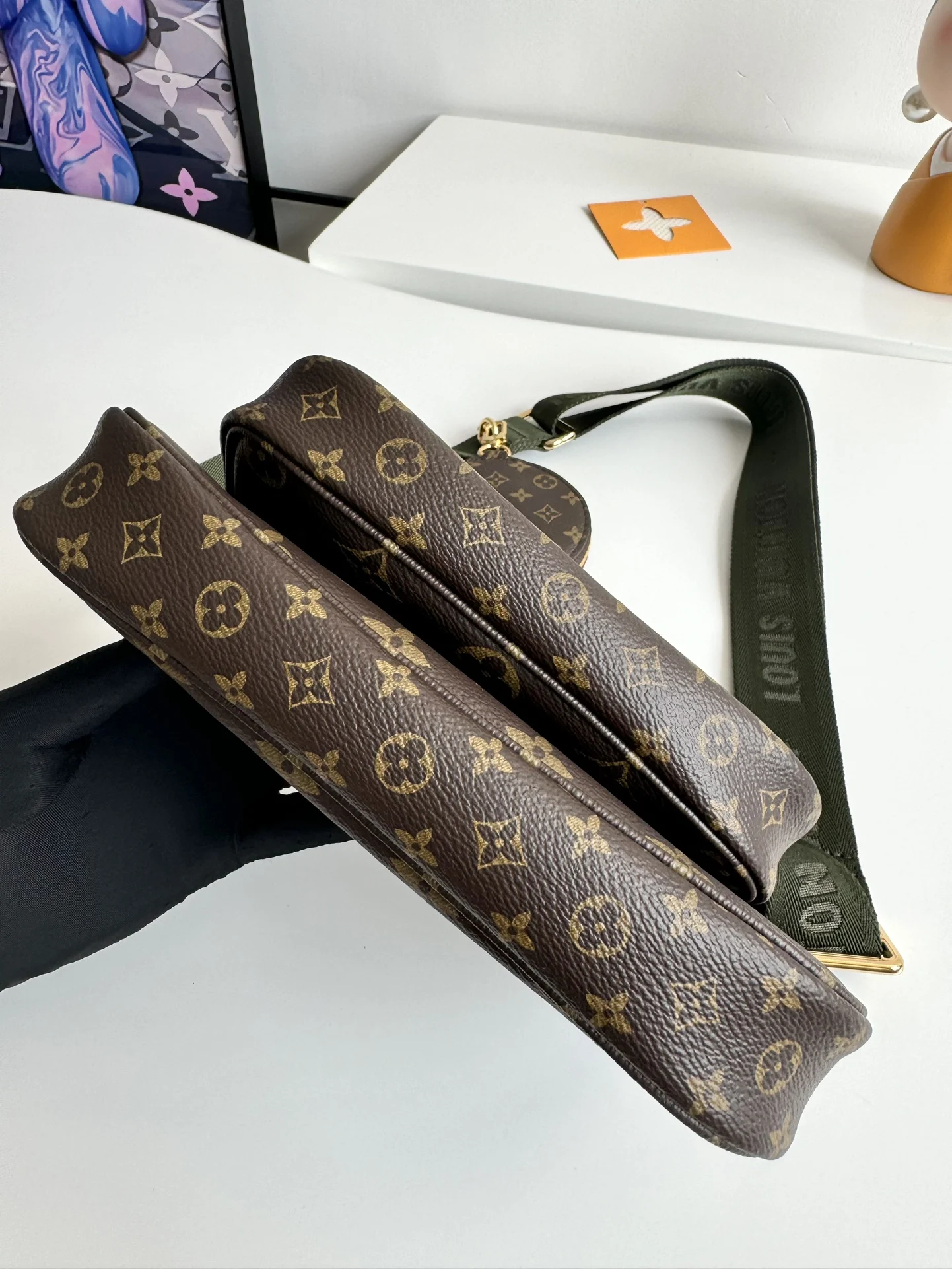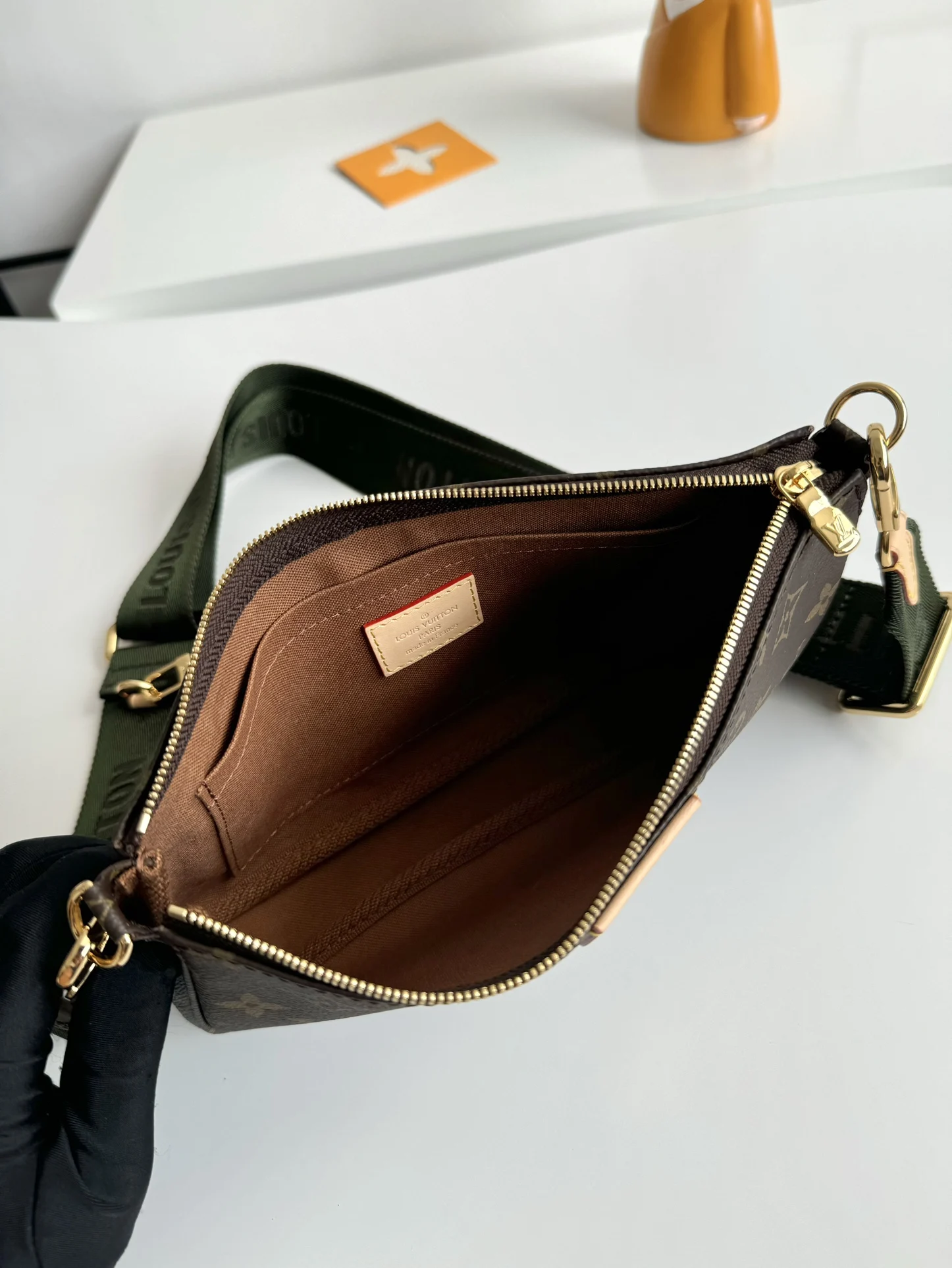 海外原单M44813独家实拍 Multi Pochette Accessories 手袋以 Monogram 帆布构筑三件合一的活力设计 另配备多个口袋和隔层 可调节金色链条与路易威登铭纹提花肩带提供斜挎等多种背携方式 尺寸 24×16×6cm