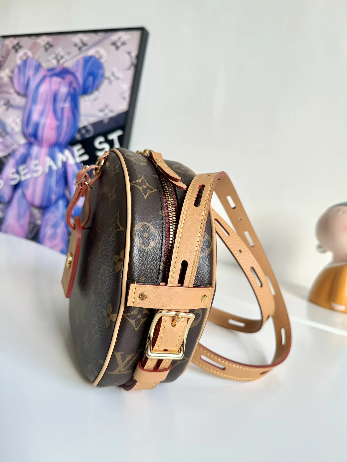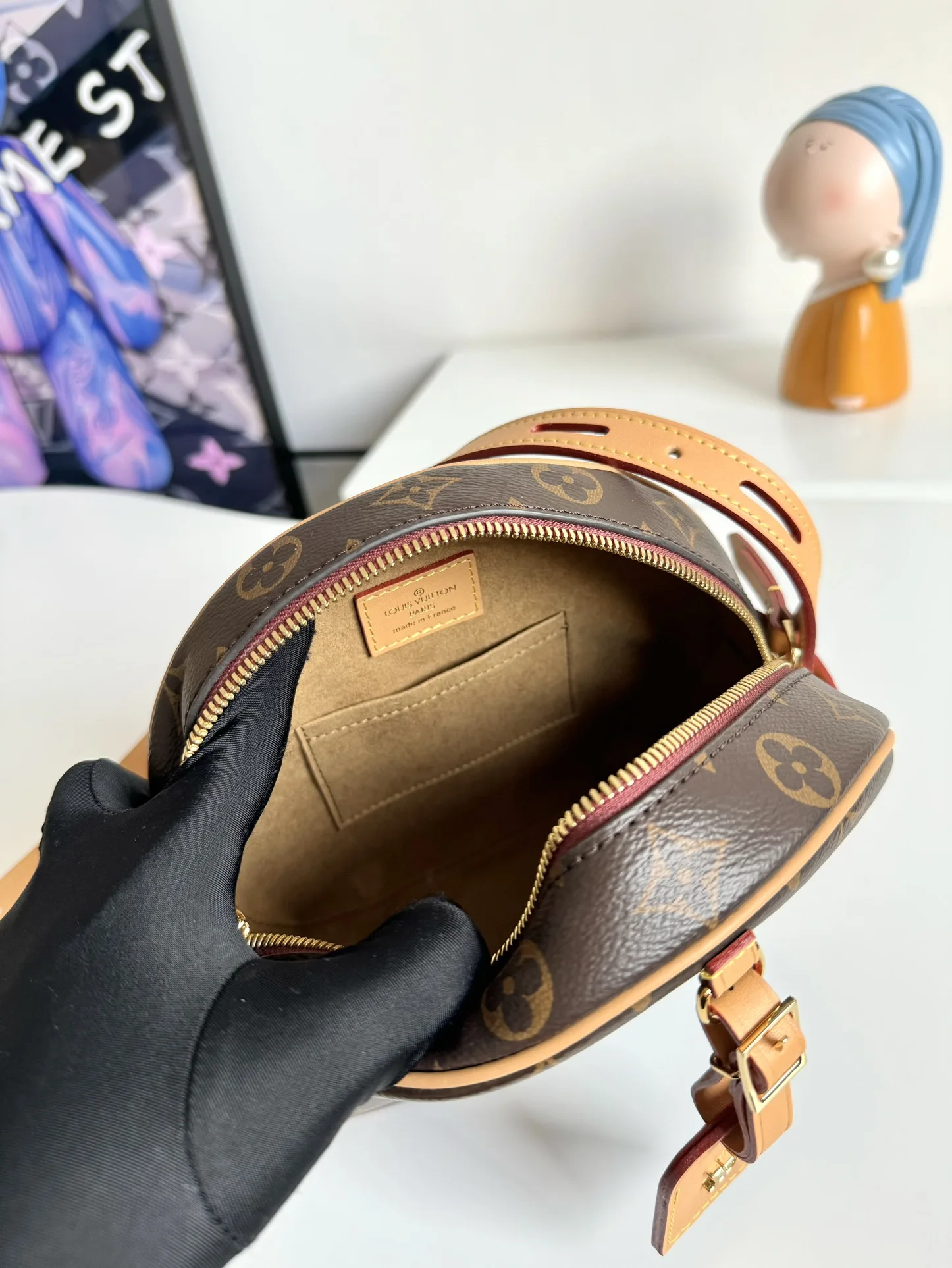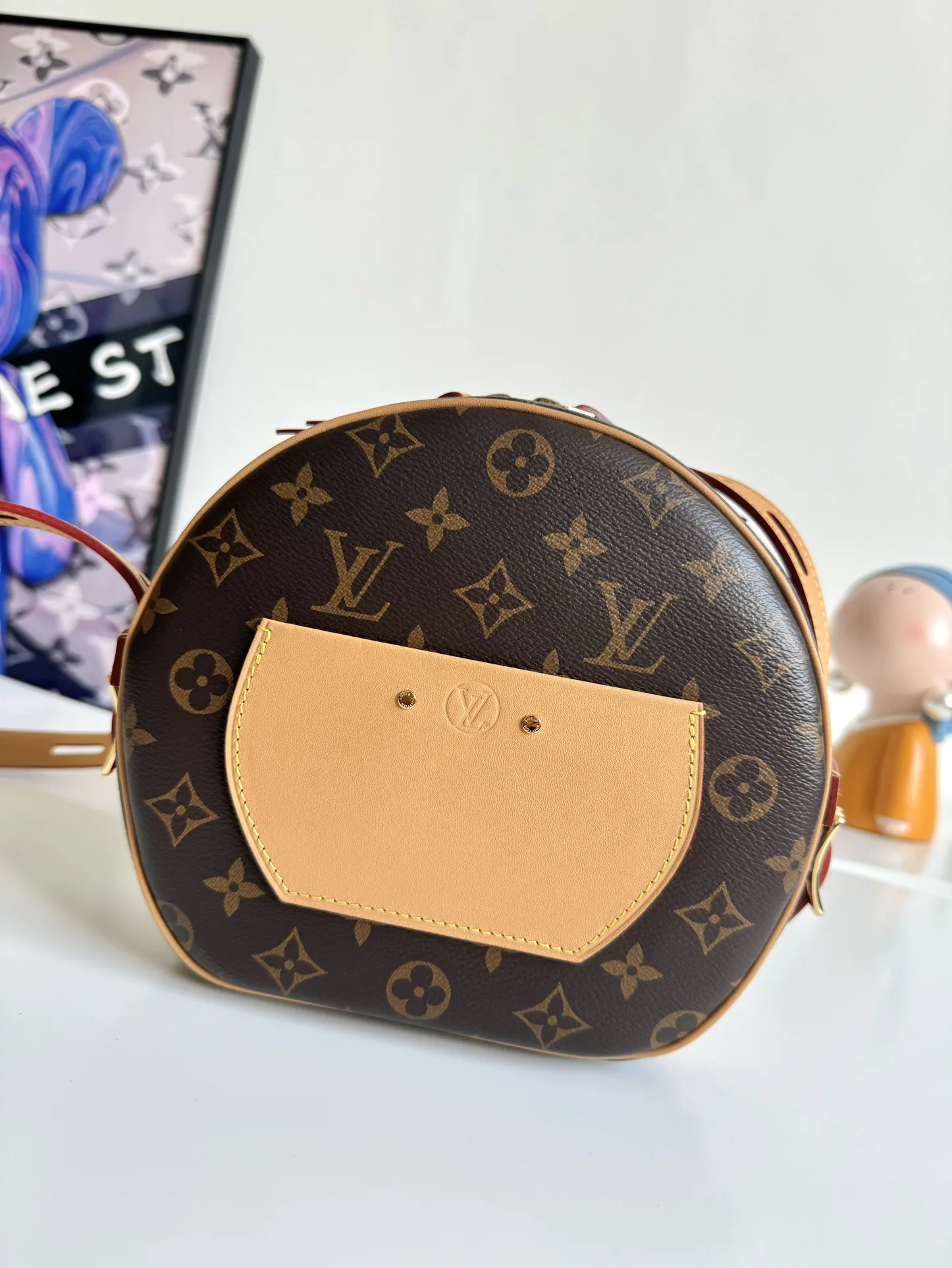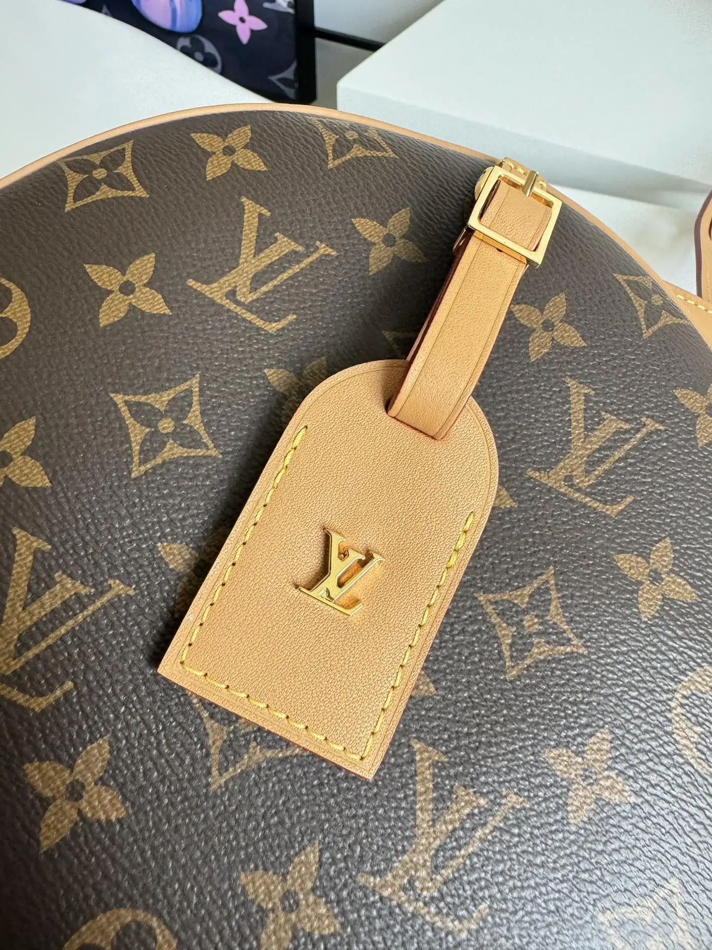 海外原单M45647独家实拍 女装艺术总监 Nicolas Ghesquiere 以经典帽盒为原型 推出优雅迷人的 Boite Chapeau Souple 手袋 以路易威登传统旅行箱为灵感 柔软的 Monogram 帆布包身搭配皮革长肩带 轻松肩背或斜挎 尺寸 22.5×20×8cm