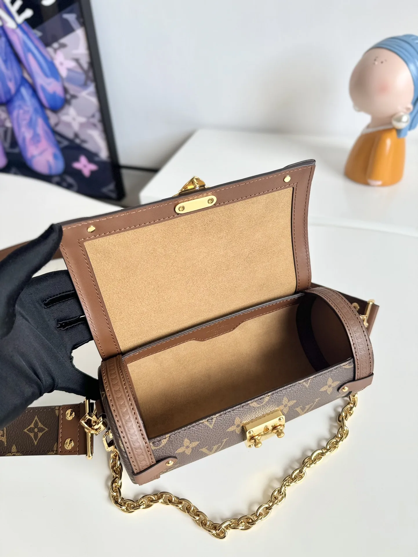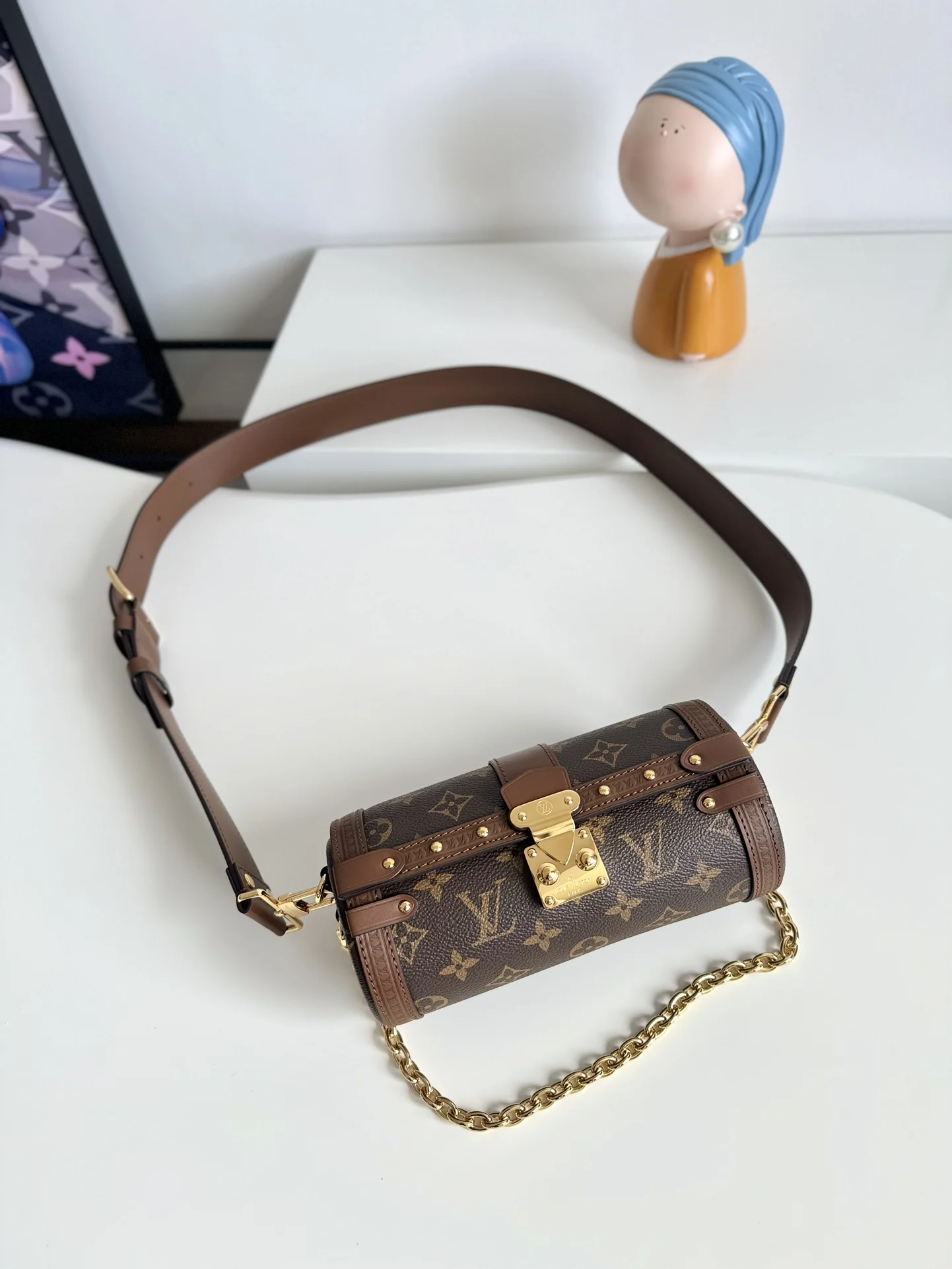 海外原单M57835独家实拍 Papillon Trunk 手袋点缀金属铆钉和 S-lock 钩扣 为路易威登的传统格调注入当代风华 半硬质法棍包构型方便手持 亦可系上肩带肩背或斜挎 尺寸 19×9×9cm