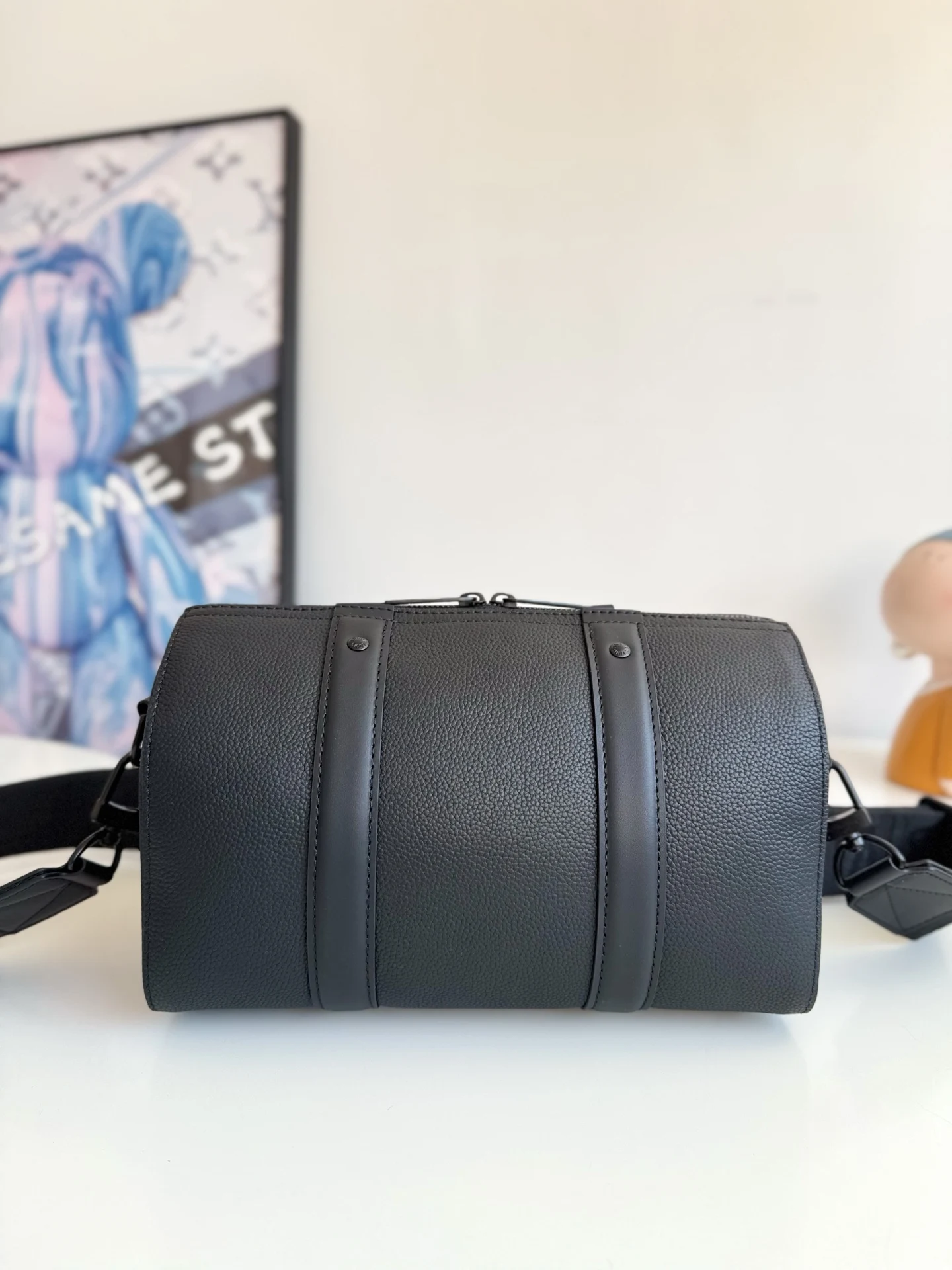 海外原单M59255独家实拍 本款 City Keepall 手袋于 2021 秋季绽放路易威登新古典主义风尚 Aerogram 细粒面牛皮革如传统航空信笺般柔软 金属 LV 字母含蓄抒写品牌标识 可拆卸肩带方便背携 将实用功能和当代优雅兼收并蓄 尺寸 27×17×13cm