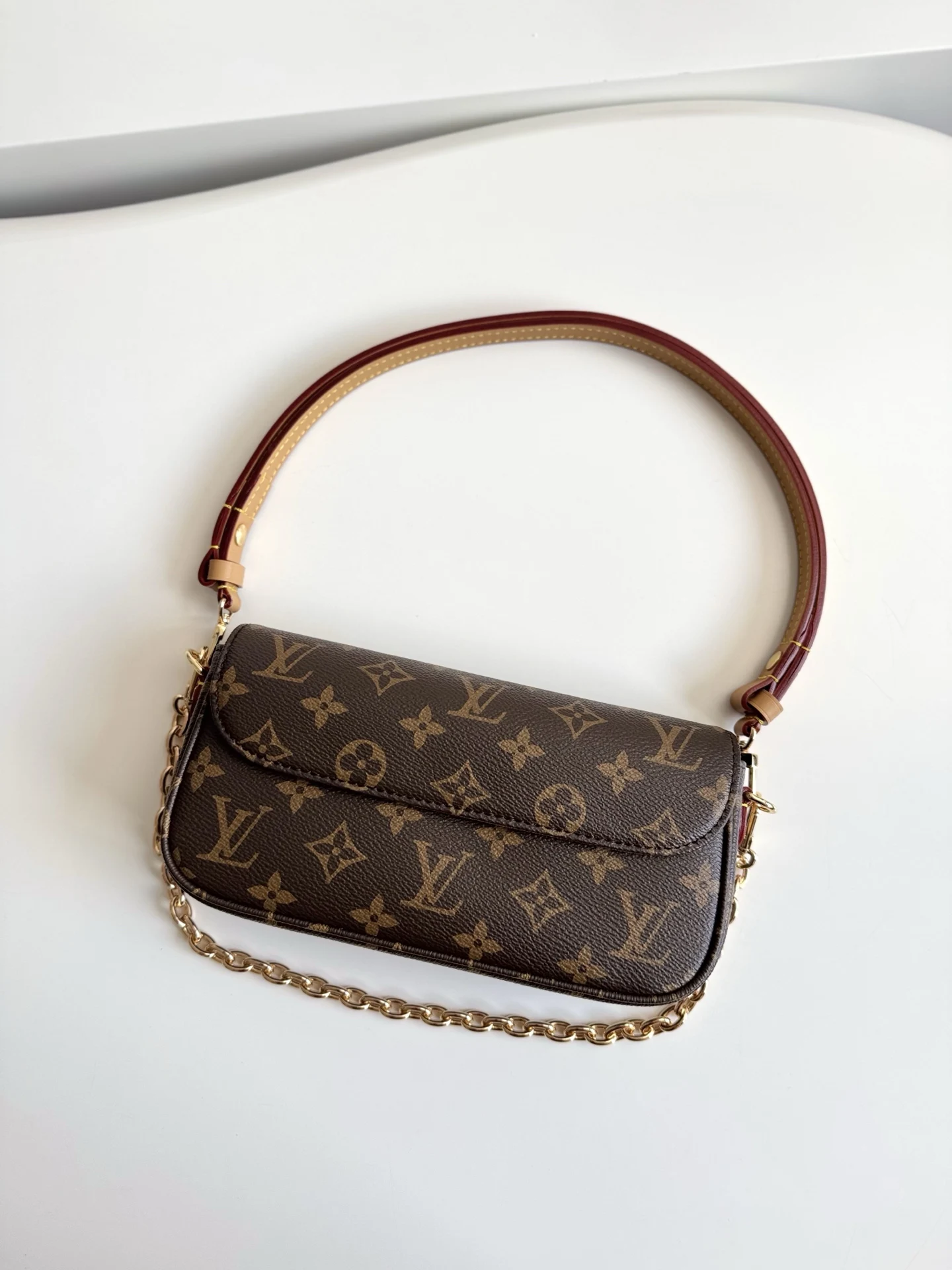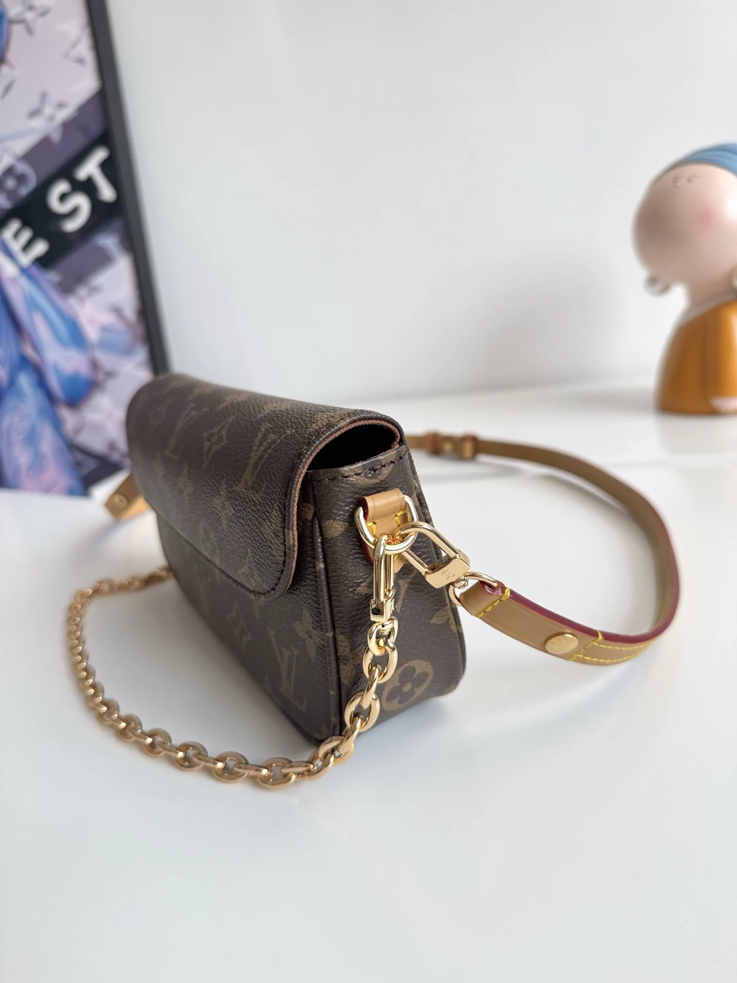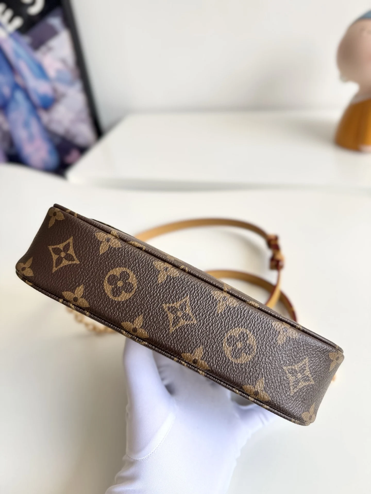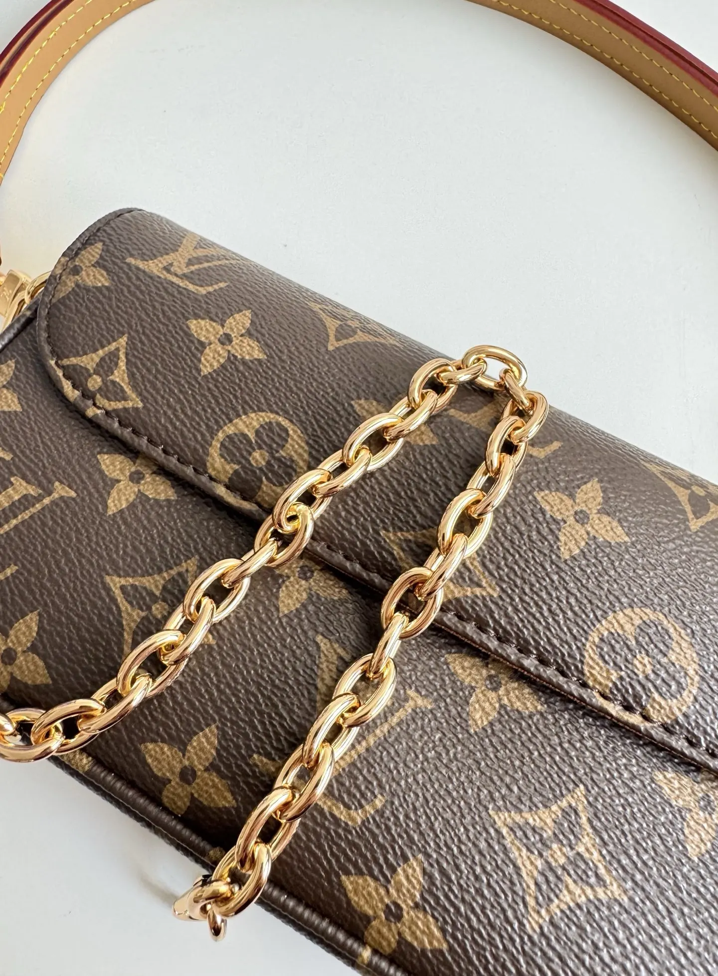 海外原单M81911独家实拍 Wallet On Chain Ivy 手袋取材 Monogram 帆布 灵感源自 2000 年代的 Sac Recoleta 手袋 卡片夹层和拉链内袋可容纳日常所需 链条和可调节皮革肩带均可拆卸 实现长短肩背和斜挎选择 尺寸23.5×12×4cm