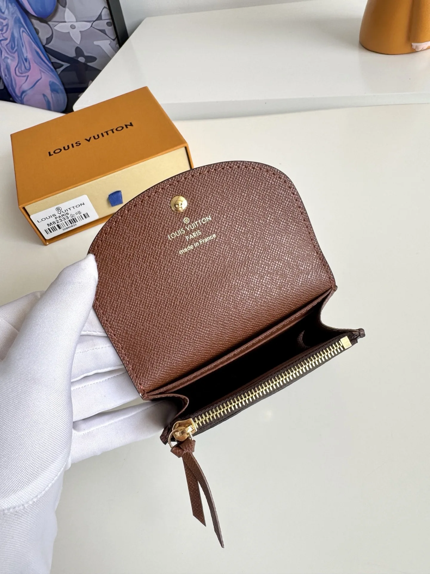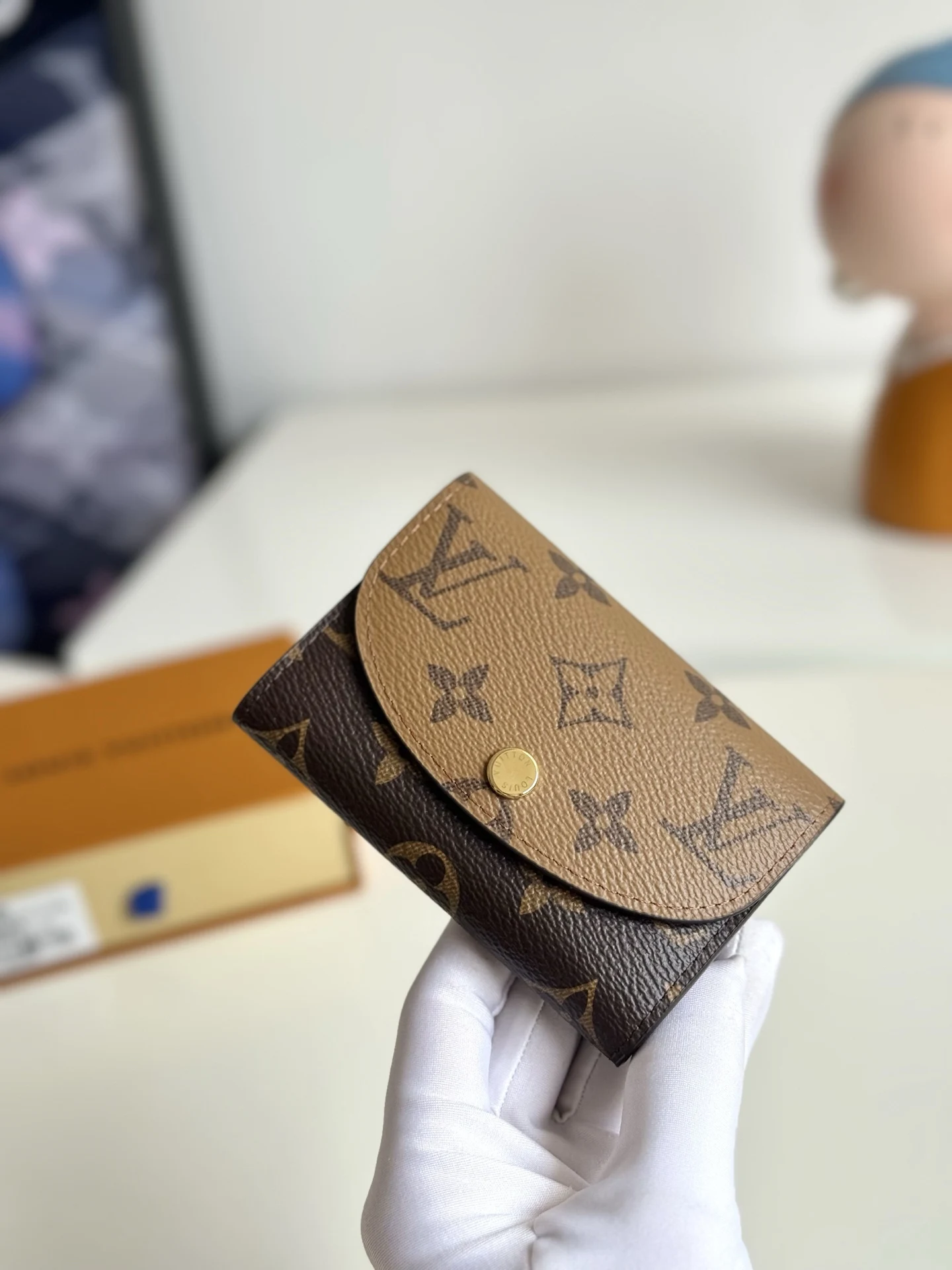 海外原单M82333金啡独家实拍 本款 Rosalie 零包选用 Monogram 和 Monogram Reverse 帆布 以铭纹按扣开启圆润翻盖 设有内贴袋 拉链零袋 卡片夹层和后贴袋 尺寸 11×8×2.5cm