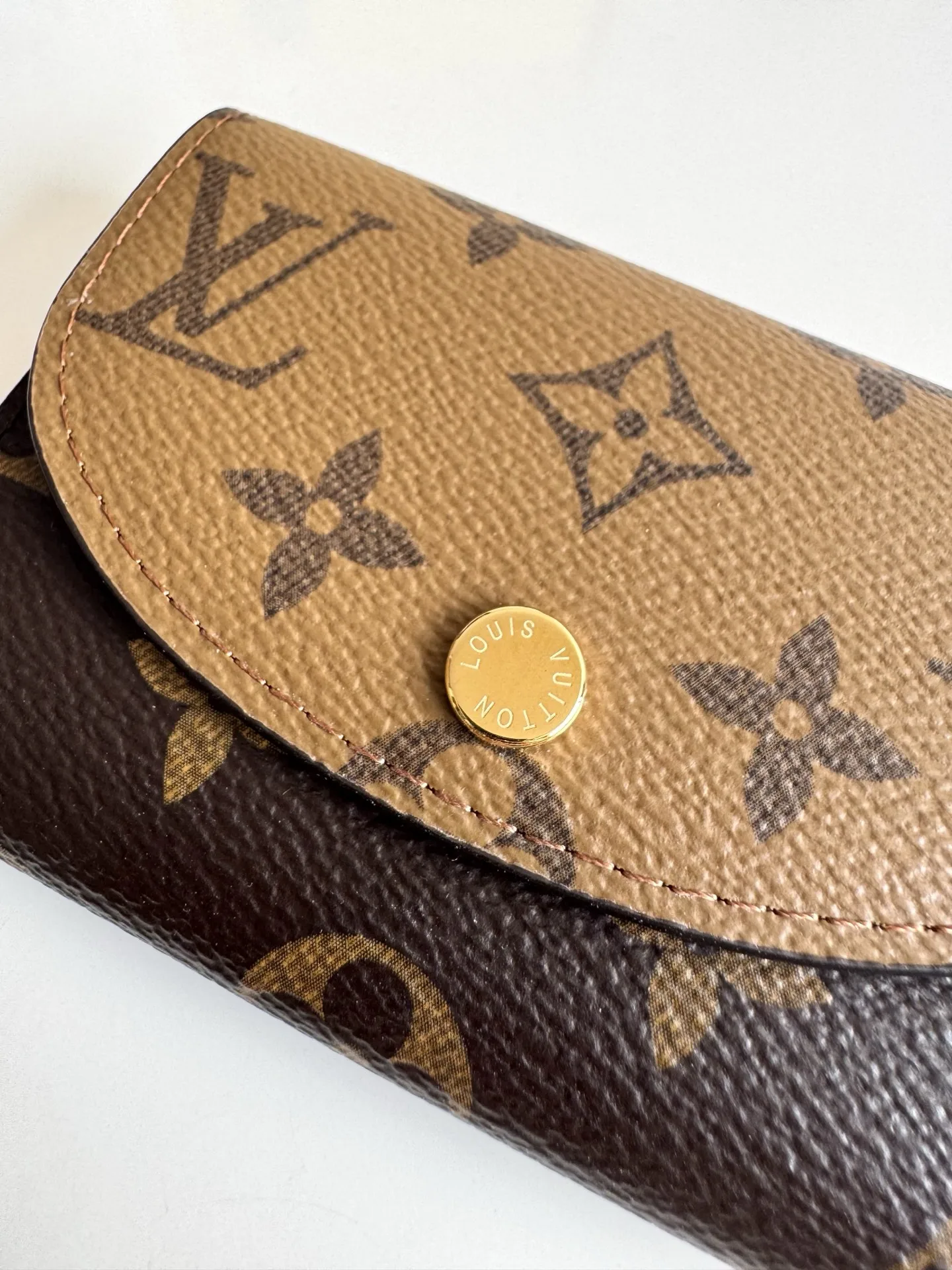 海外原单M82333金粉独家实拍 本款 Rosalie 零包选用 Monogram 和 Monogram Reverse 帆布 以铭纹按扣开启圆润翻盖 设有内贴袋 拉链零袋 卡片夹层和后贴袋 尺寸 11×8×2.5cm