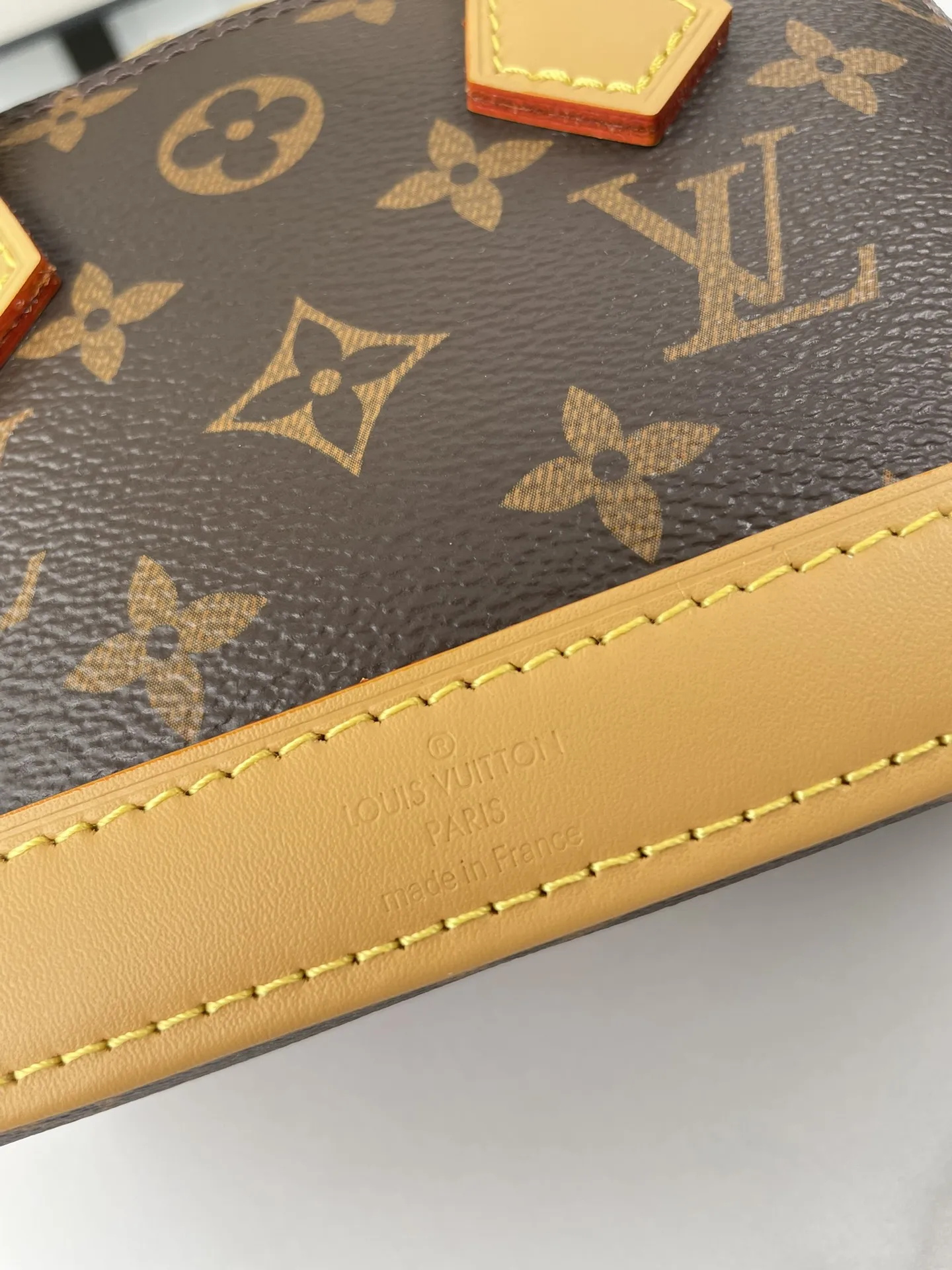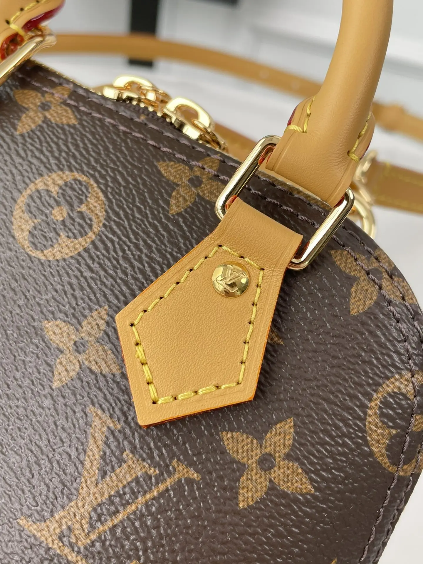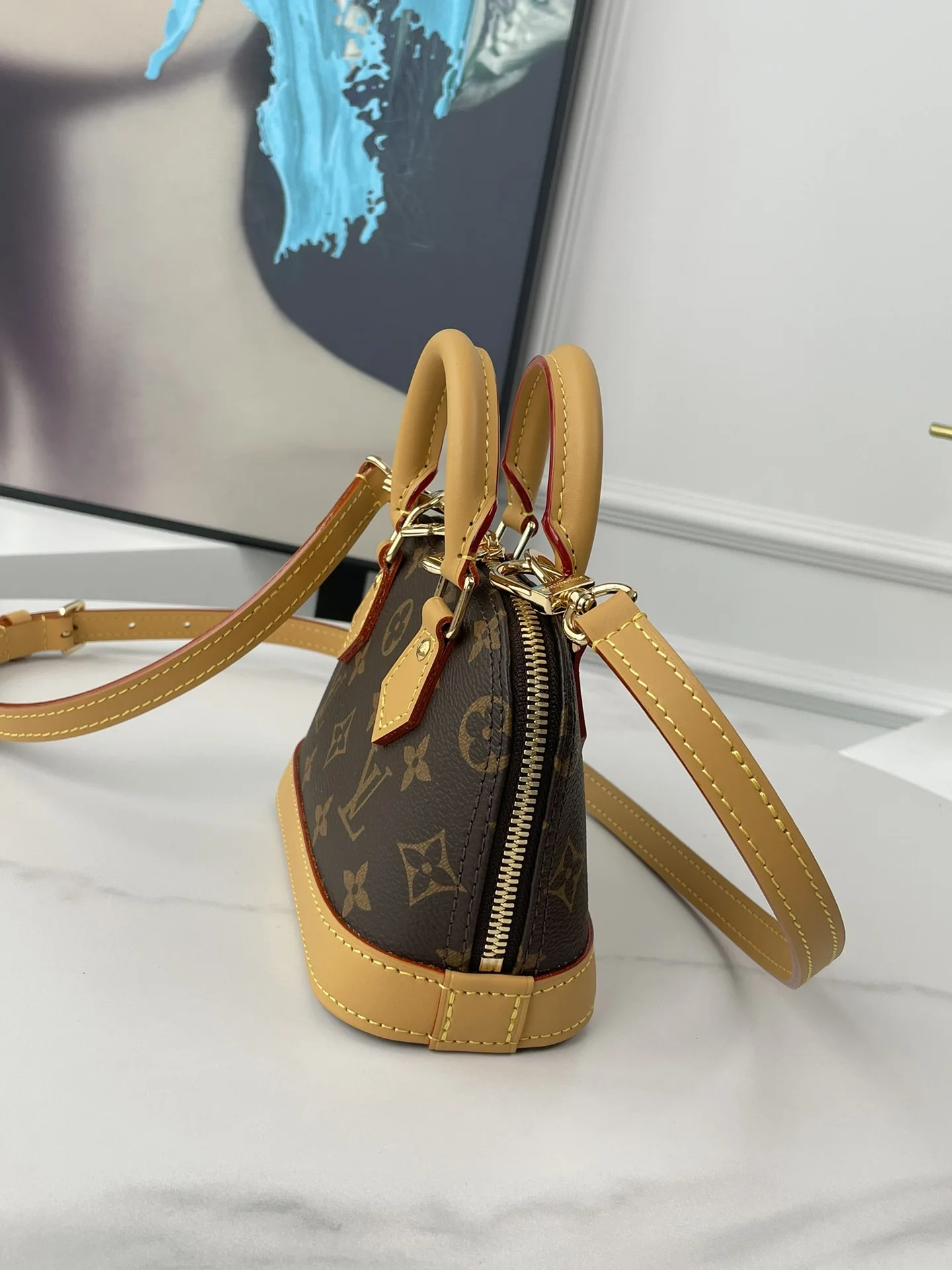 海外原单M82717独家实拍 本款 Nano Alma 手袋浓缩 Alma 手袋的经典构型 为 2024 早春秀场的 Monogram Dune 帆布勾勒皮革饰边 精巧手柄和可拆卸并调节的肩带实现多种背携方式 尺寸 18×12×8cm