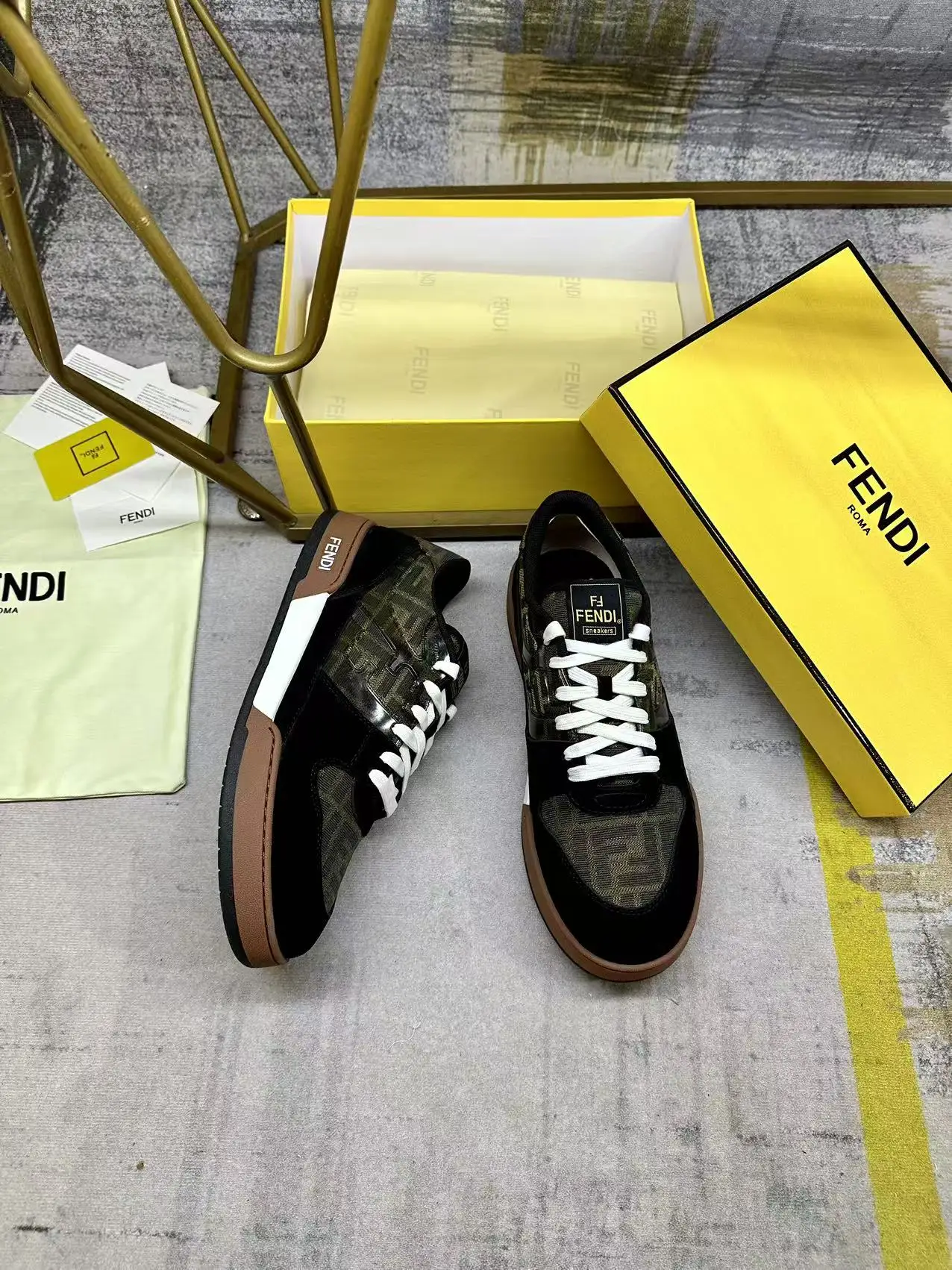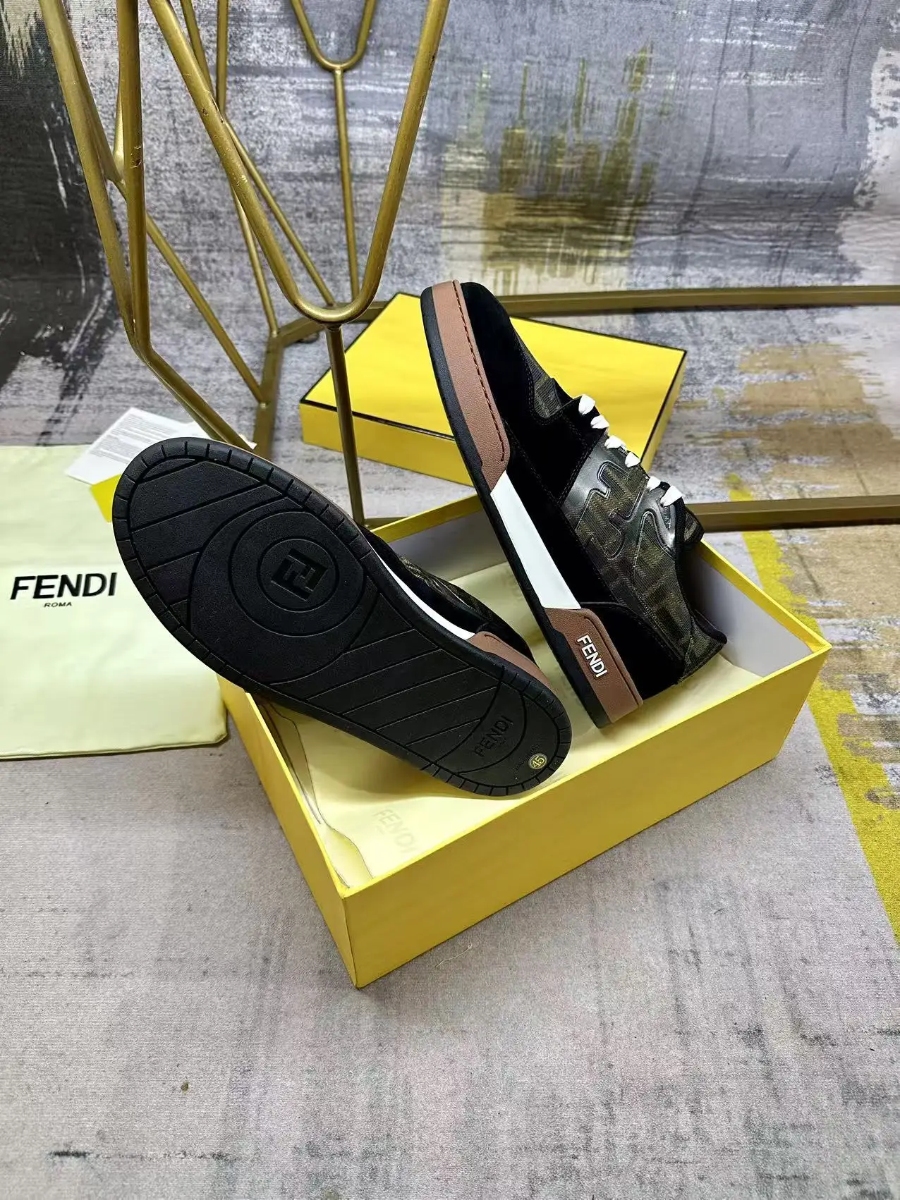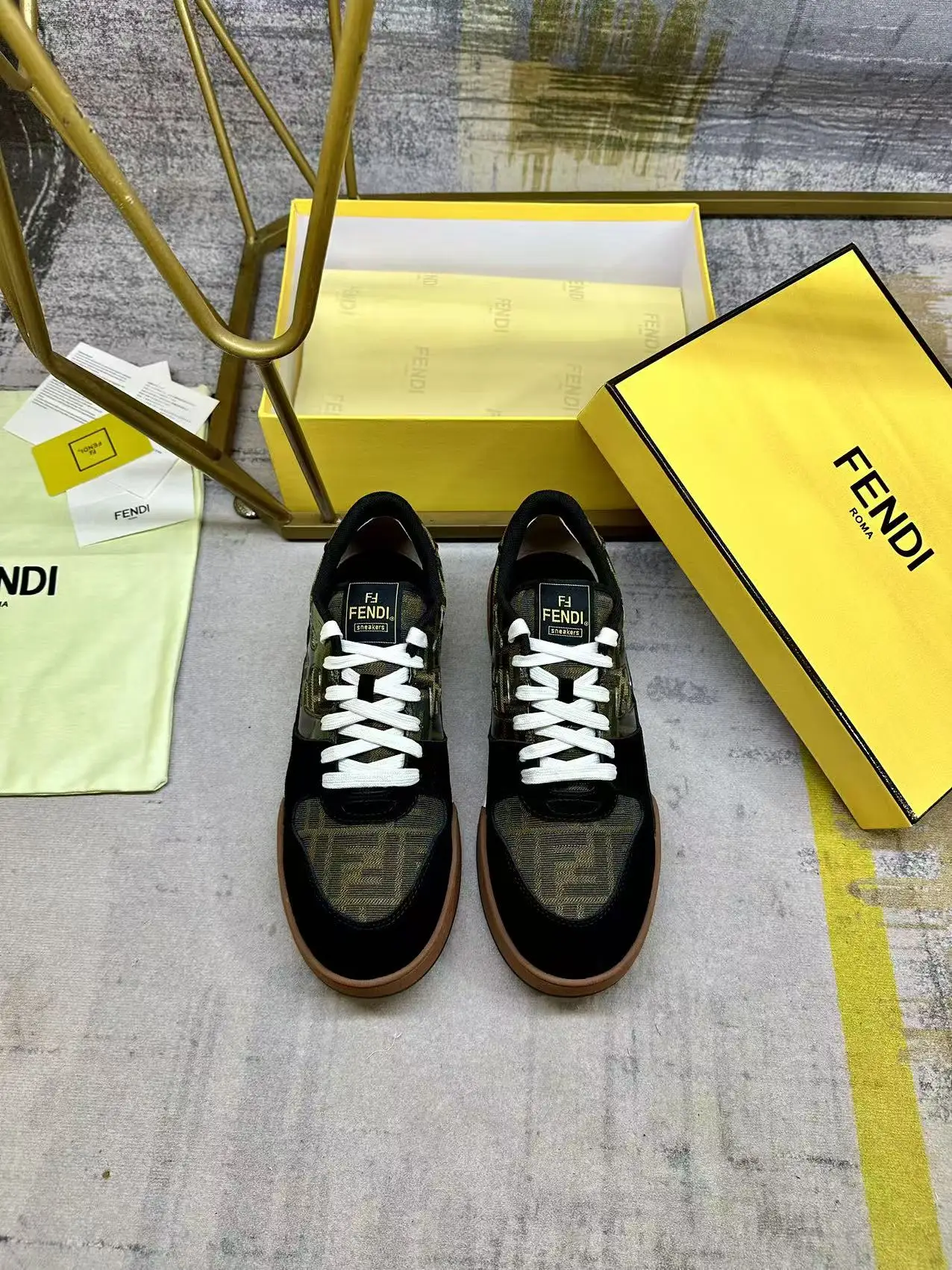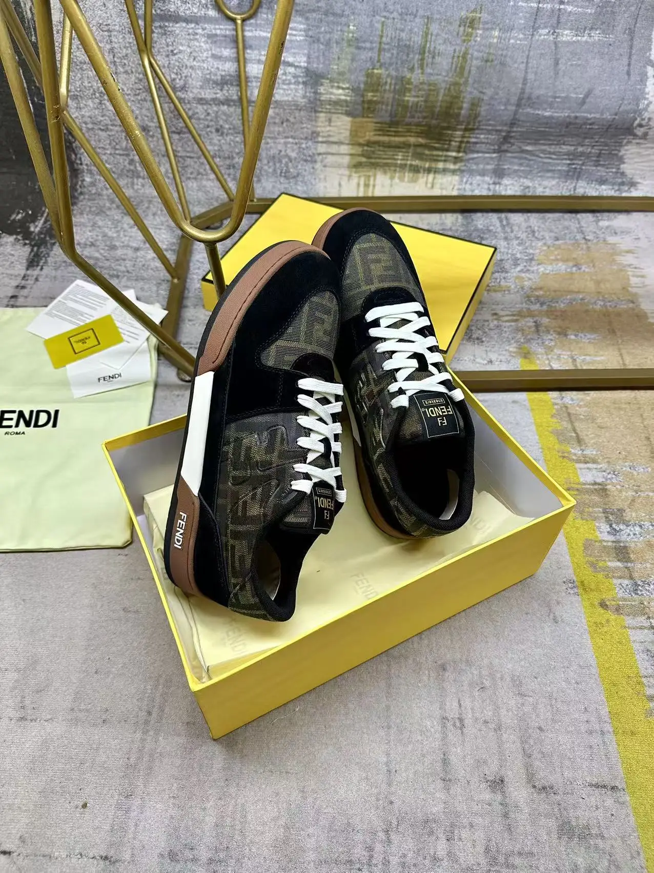 升级版本FENDI Match系带最新运动鞋 点缀棕色和烟草黄提花FF布料材质饰有黑色麂皮细节 注塑FF贴花装饰 男码39-45码