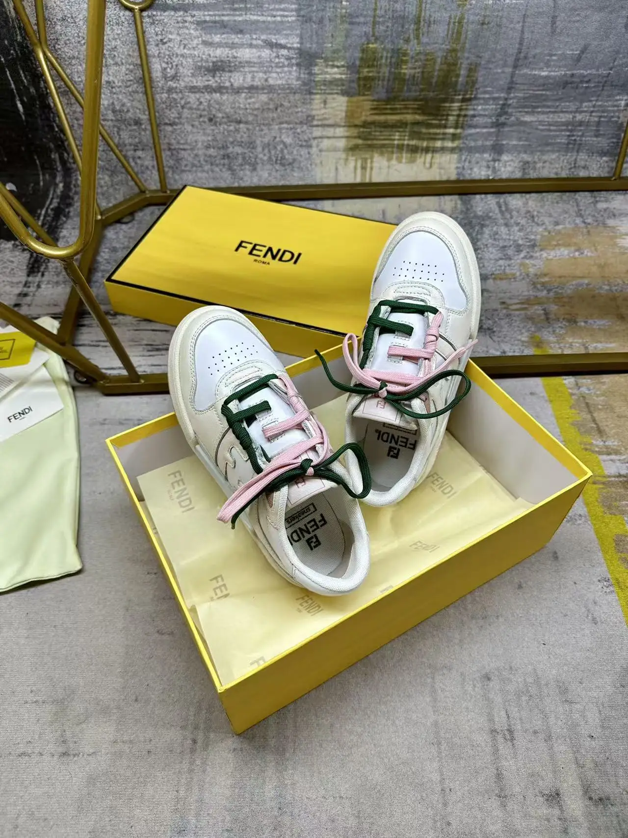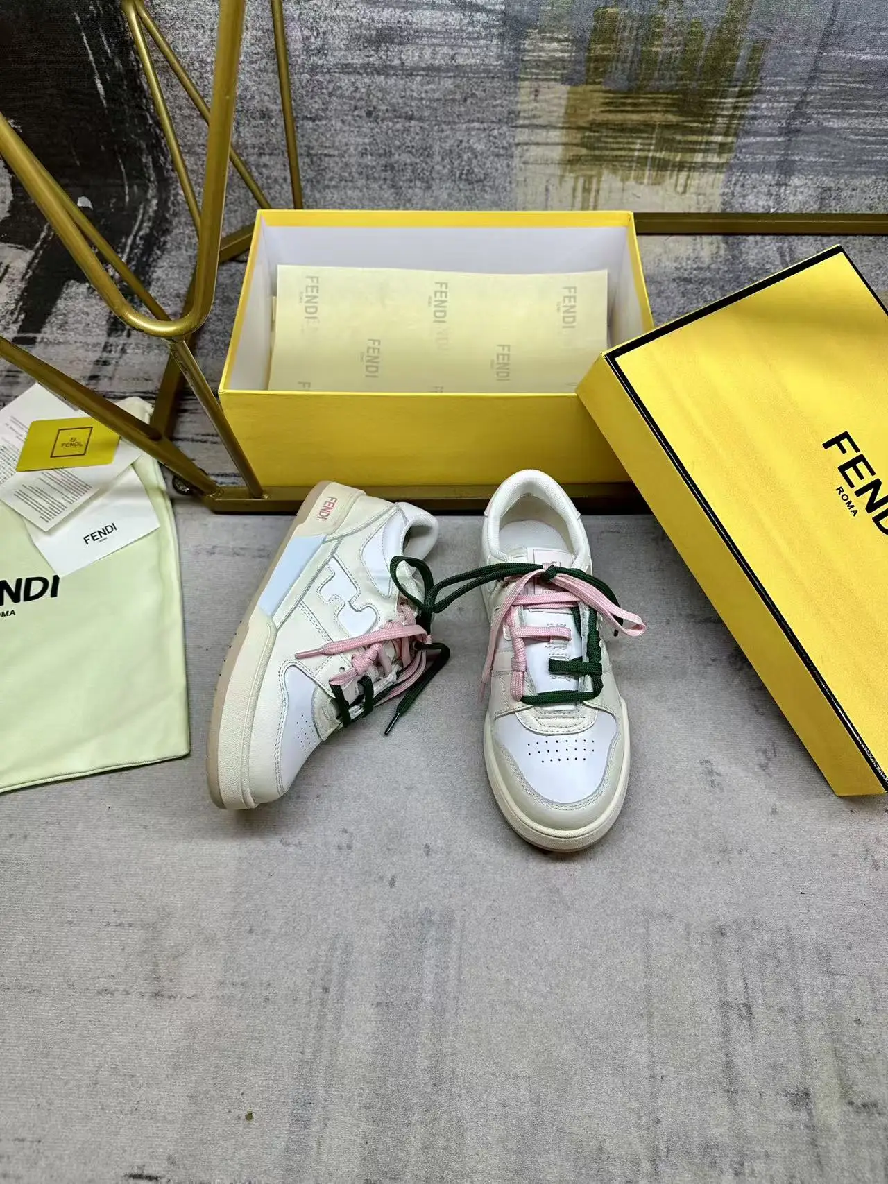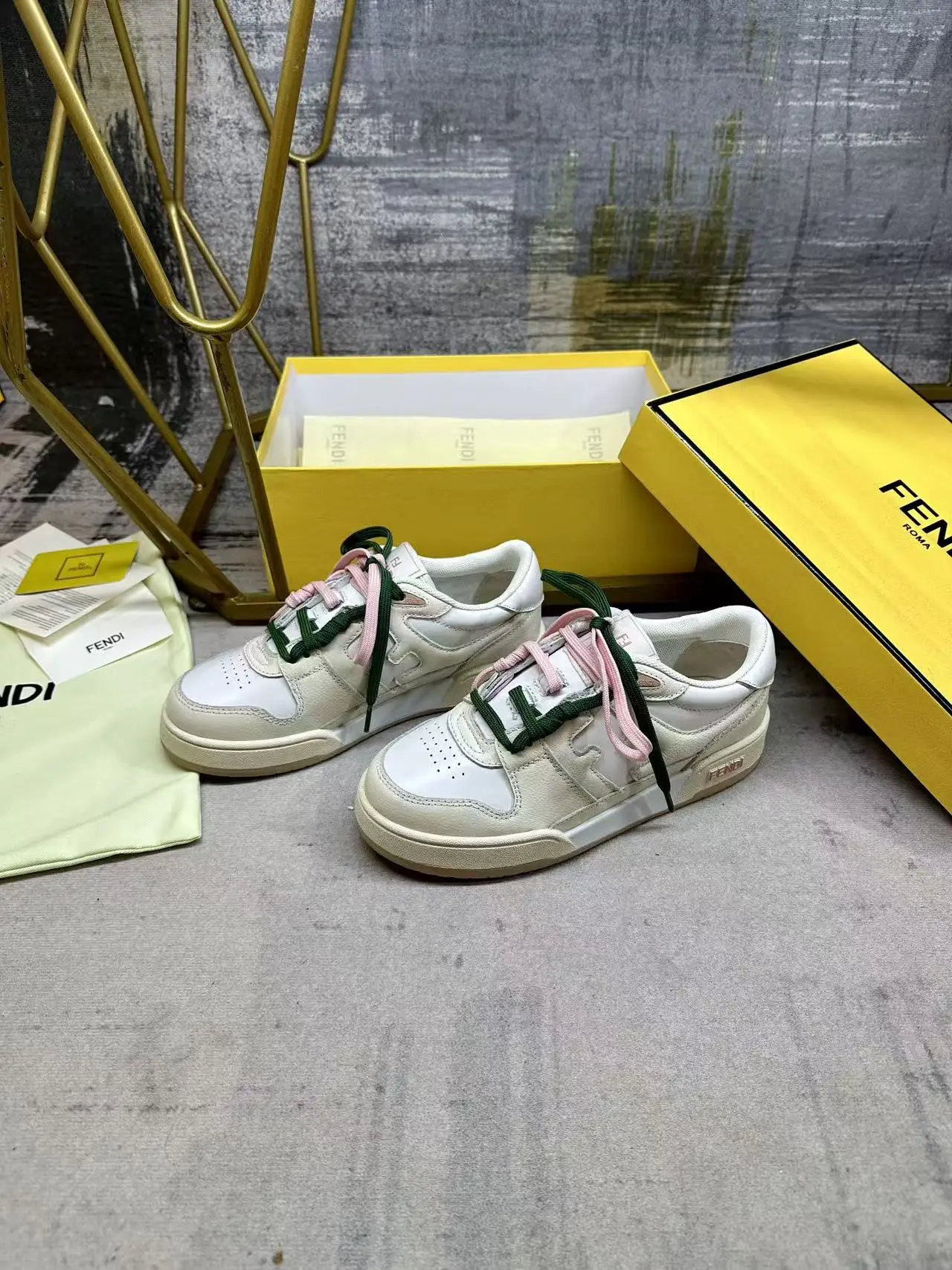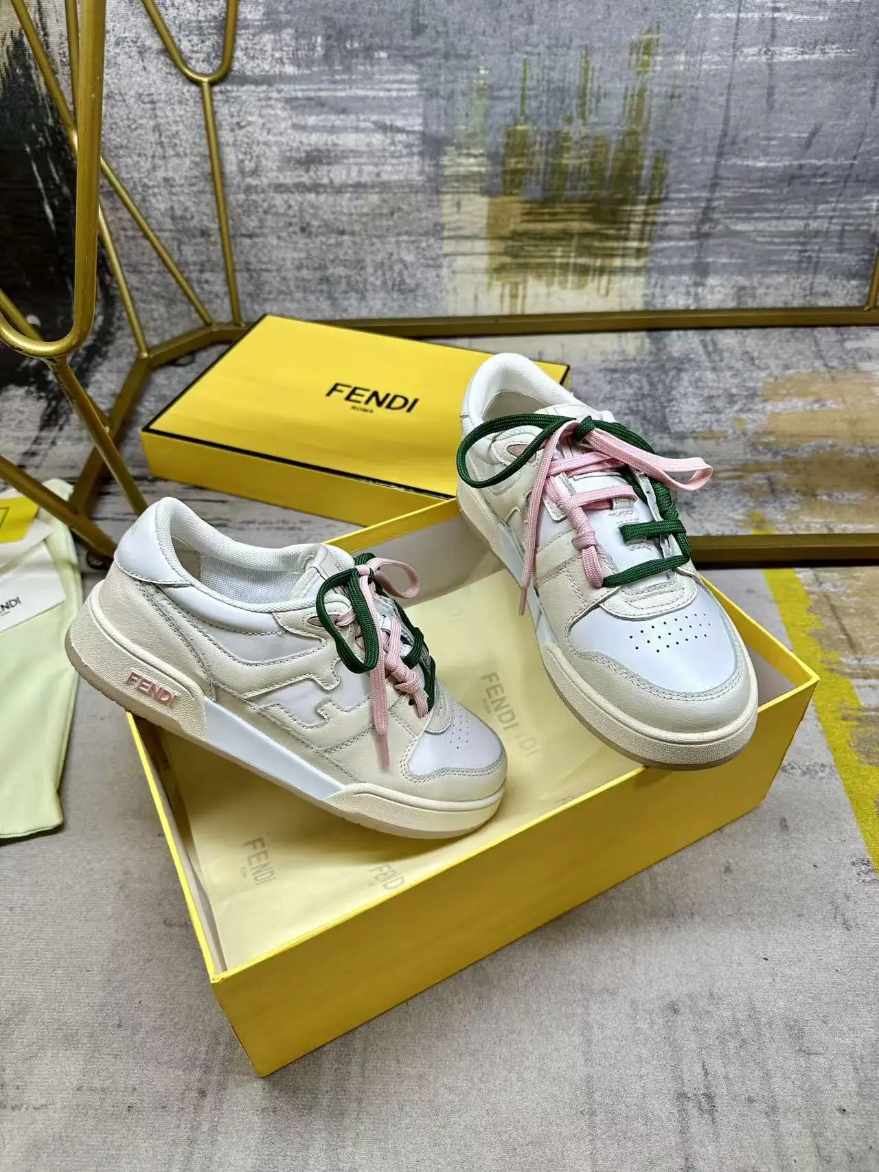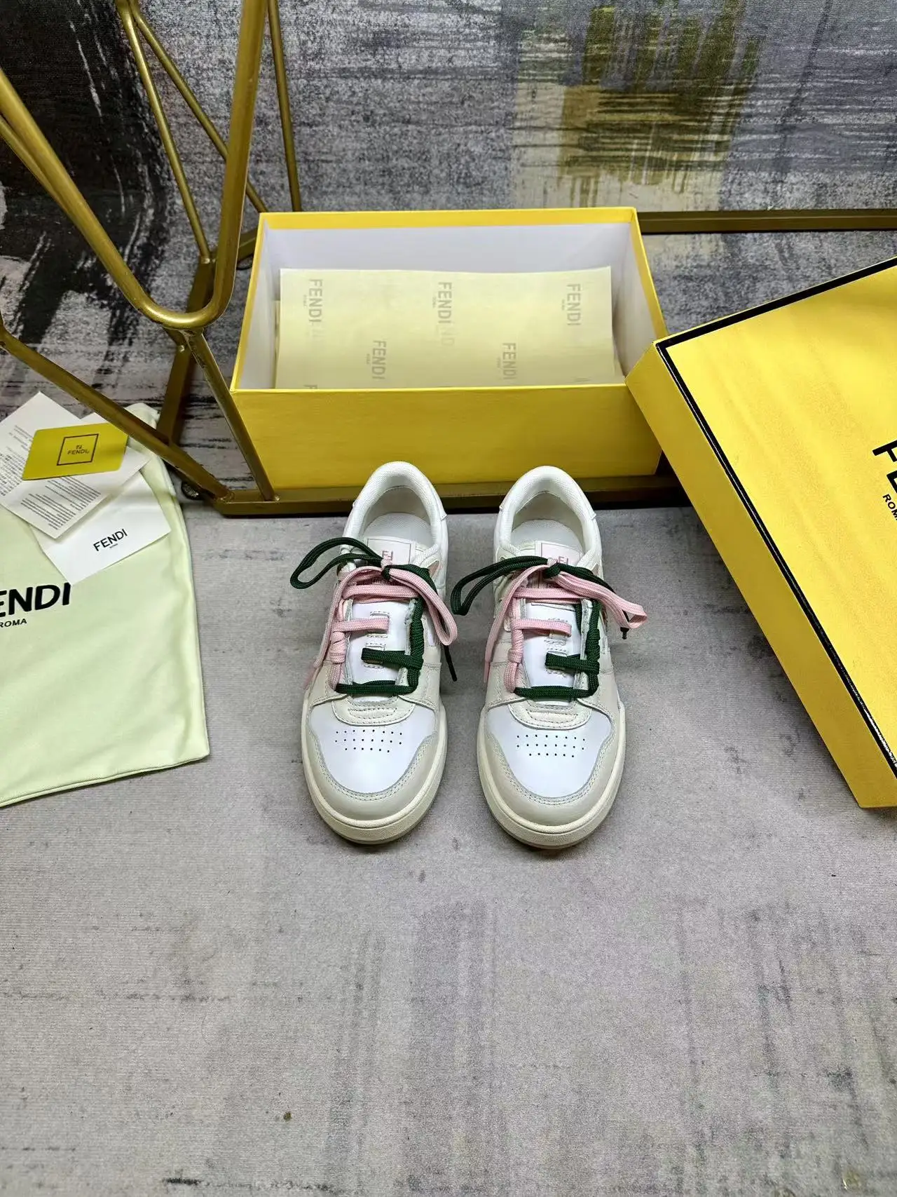 FENDI Match一脚蹬运动鞋 白色皮革材质 饰以象牙色皮革细节 饰有FF标志的装饰性管状鞋带 搭配内部弹性纤维 轻松实现一脚蹬 橡胶鞋底 侧面带FENDI字样 女35-40码 男38-45码