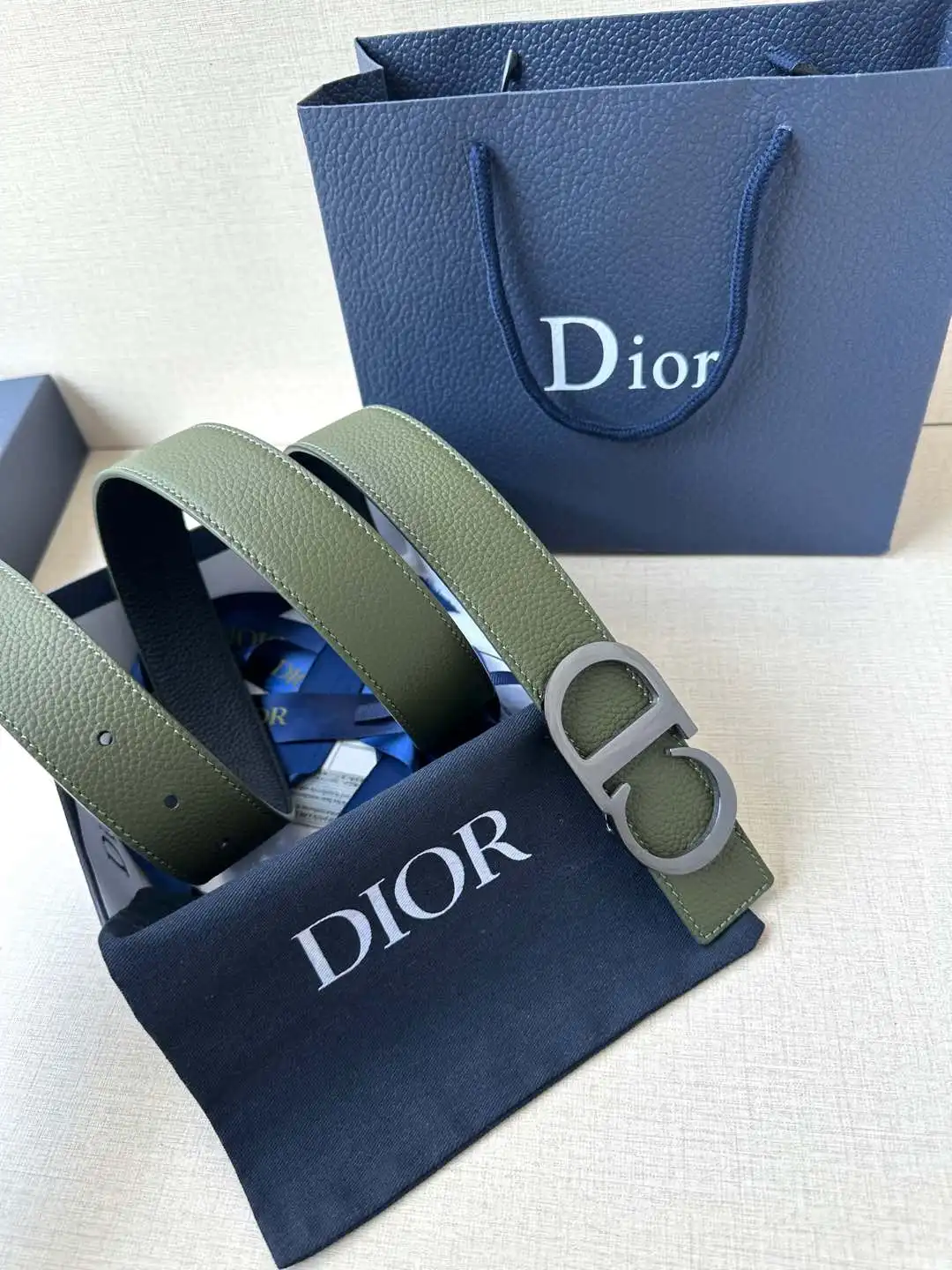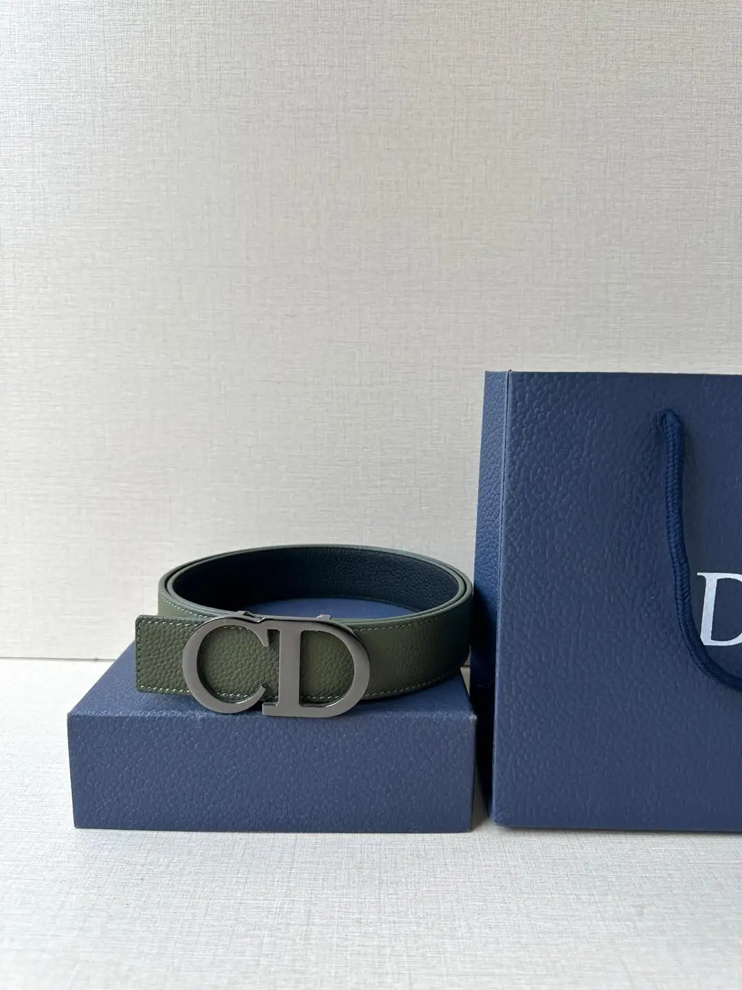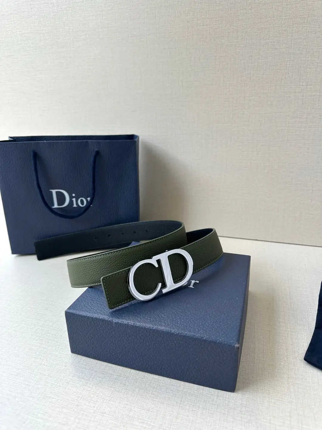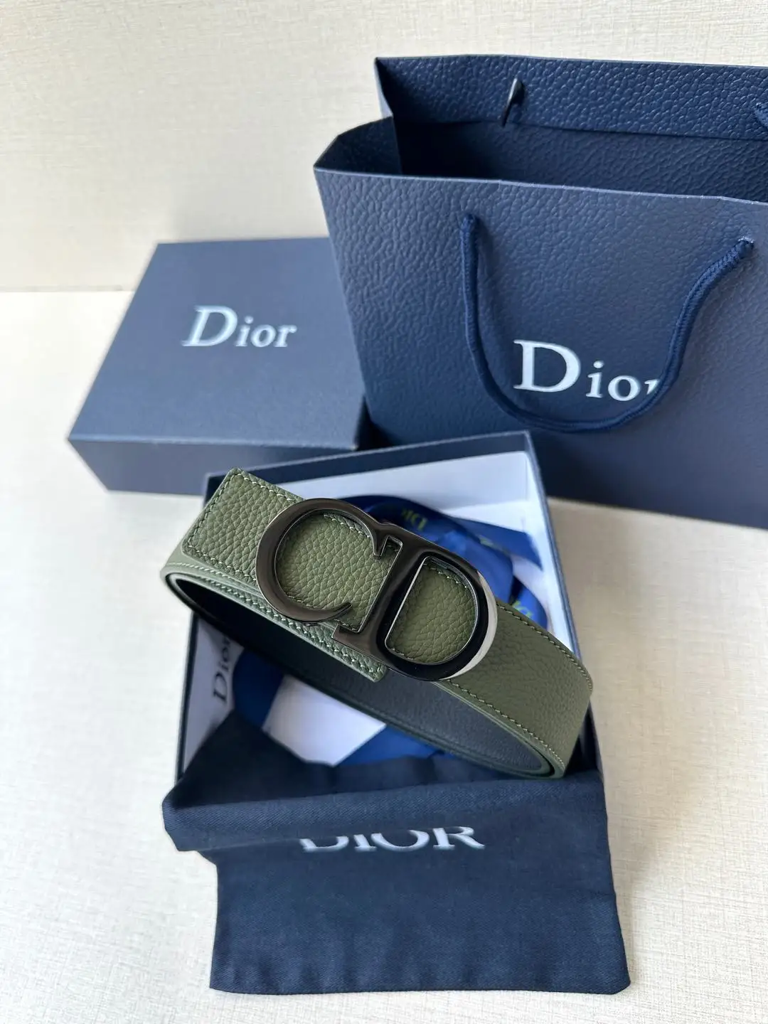 迪奥 宽度3.5cm 这款 35 毫米双面腰带结合典雅气质与摩登风范 双面均采用粒面牛皮革精心制作 一面为黑色 另一面多色选择 可搭配各式 35 毫米腰带扣 打造富有个性特色的配饰 时尚百搭
