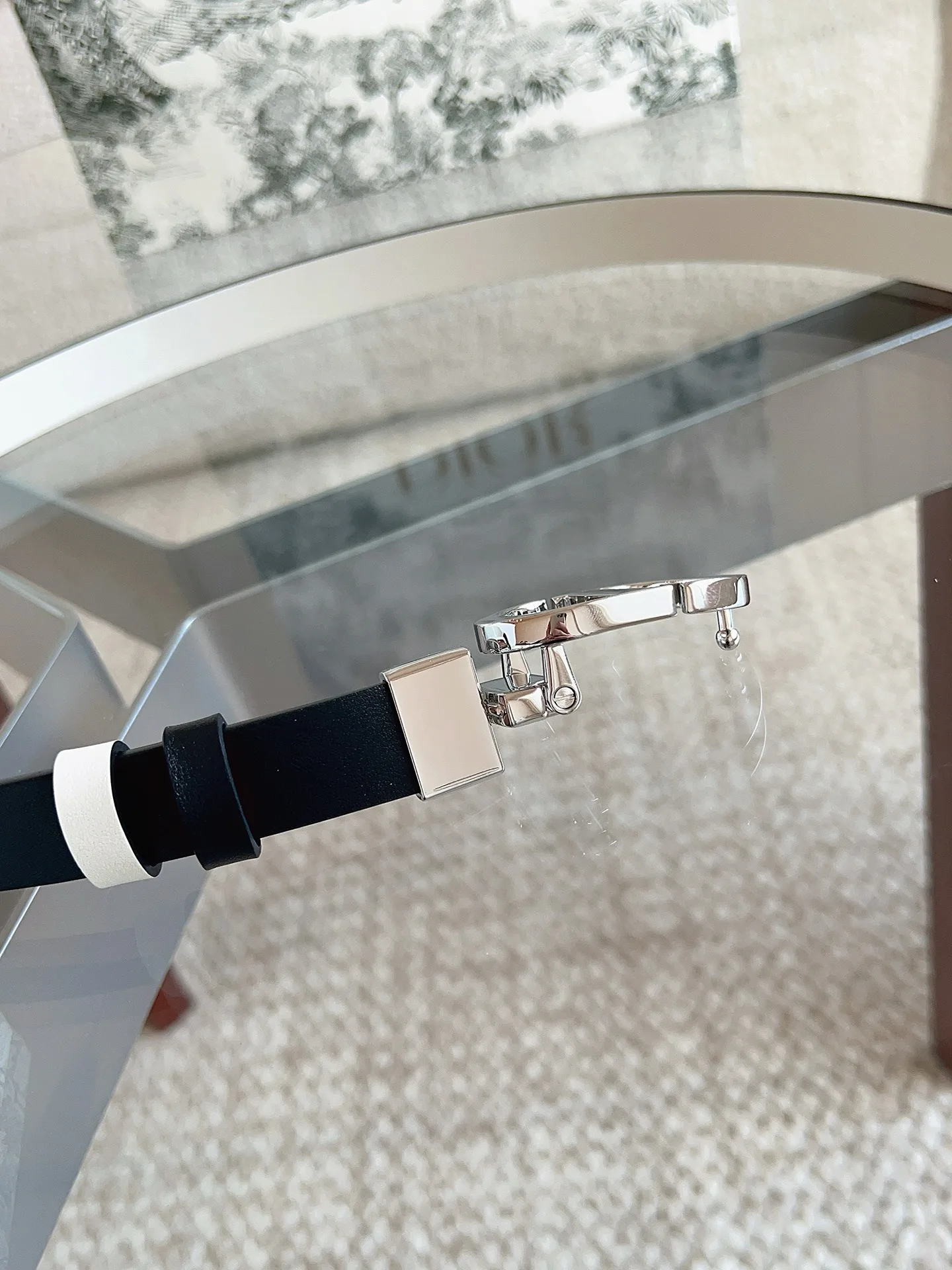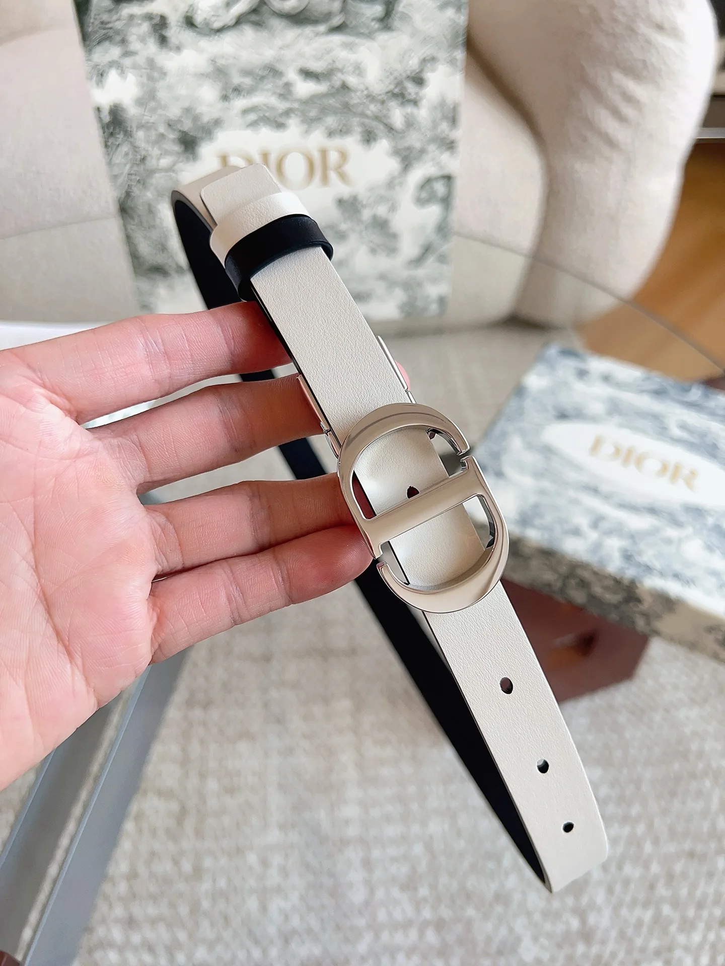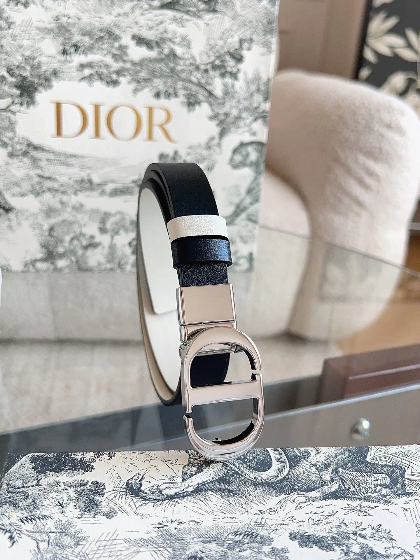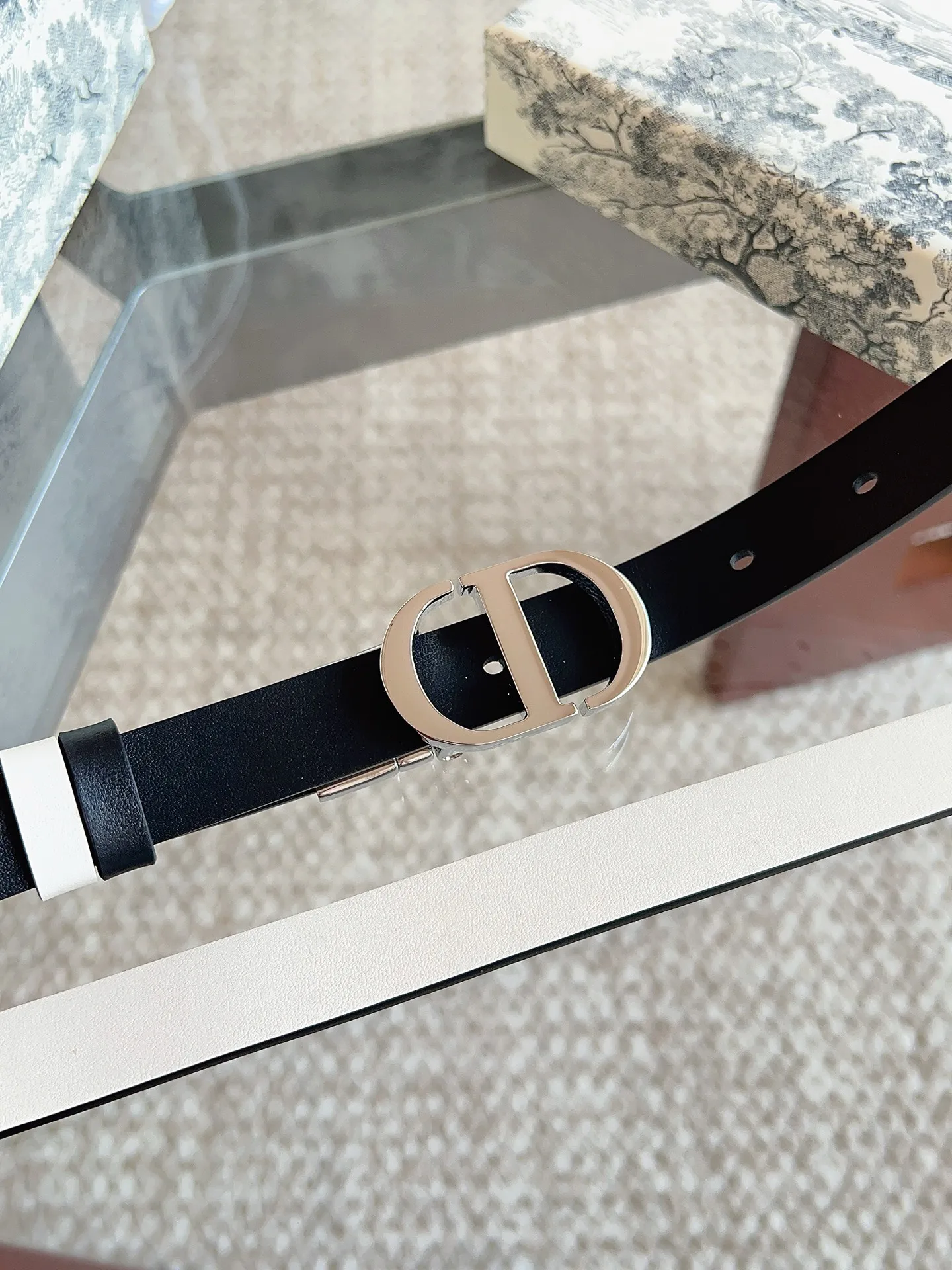 迪奥 DIOR 这款 20 Montaigne 腰带从同名手袋汲取灵感 可翻面使用 以双面设计重新诠释经典 采用光滑小牛皮革精心制作 一面为黑色 另一面为奶白色 搭配富有光泽的饰面金属 CD 腰带扣 搭配两个可拆卸的腰带环 可选择与同色调或对比鲜明的时尚风格搭配