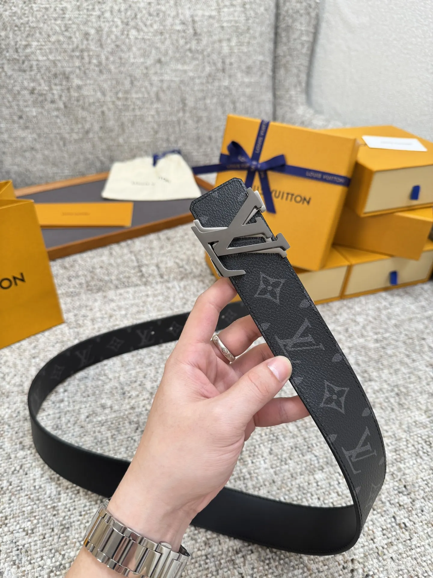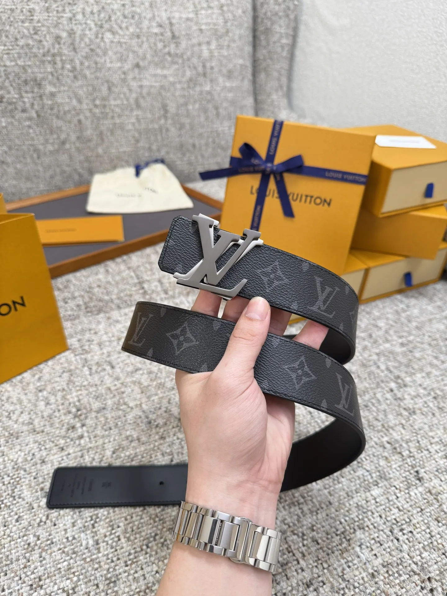 LV 路易威登 40mm宽度 正品一体铸造五金钢扣 原厂皮料 双面原厂定制牛皮面料