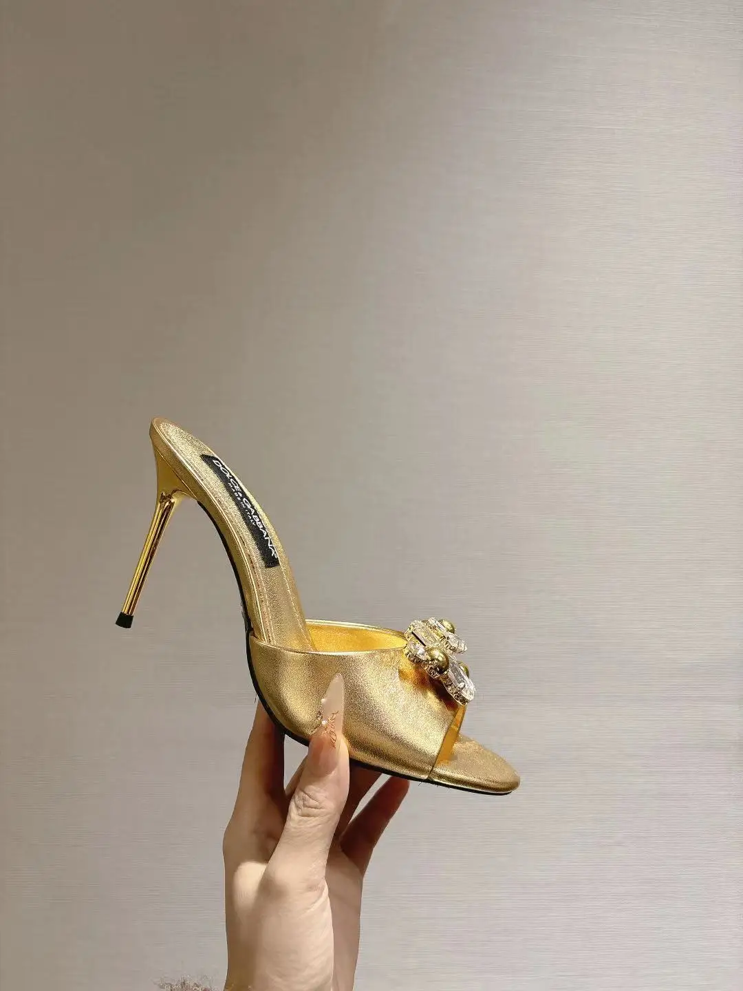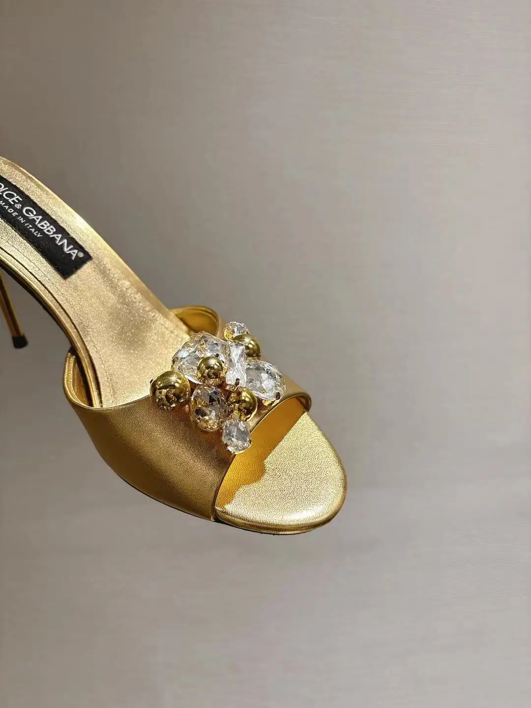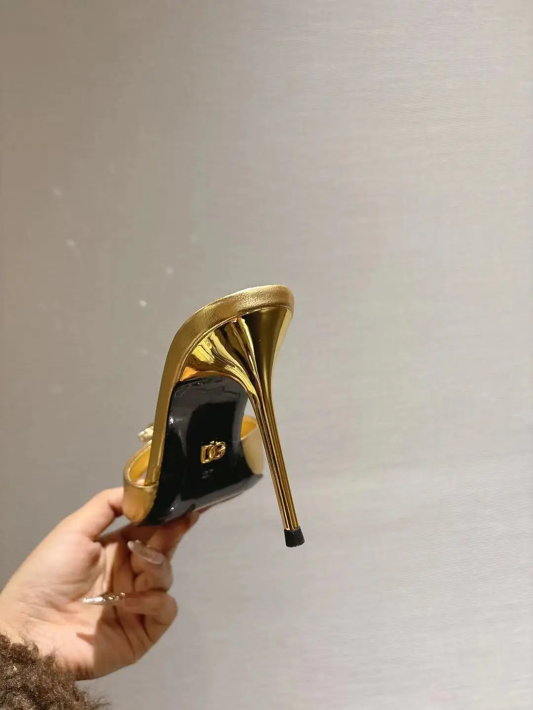 杜嘉班纳 新款头层牛皮高跟拖鞋