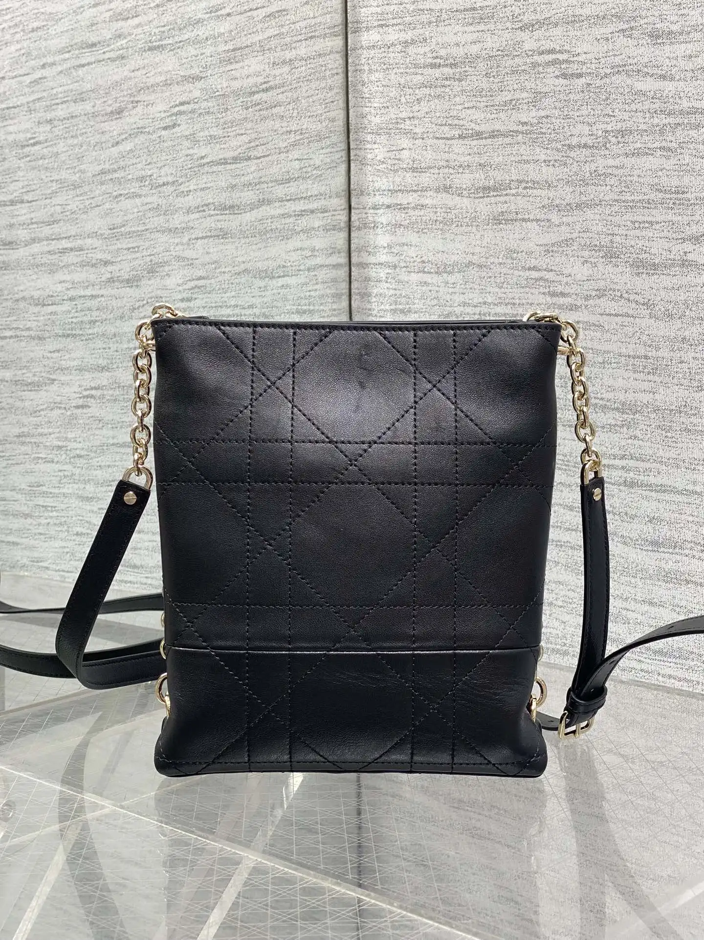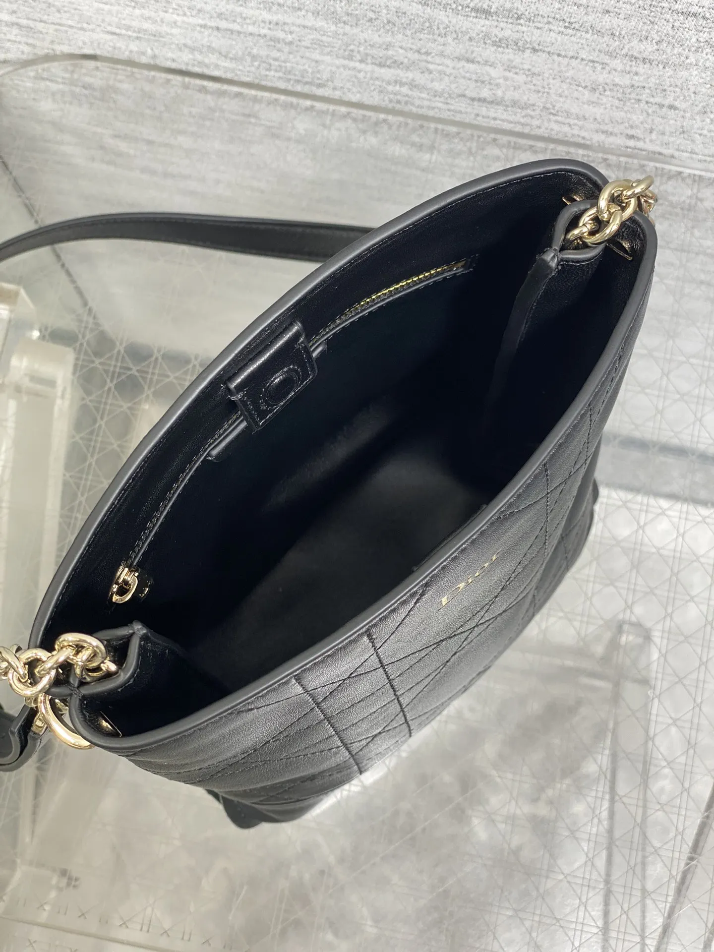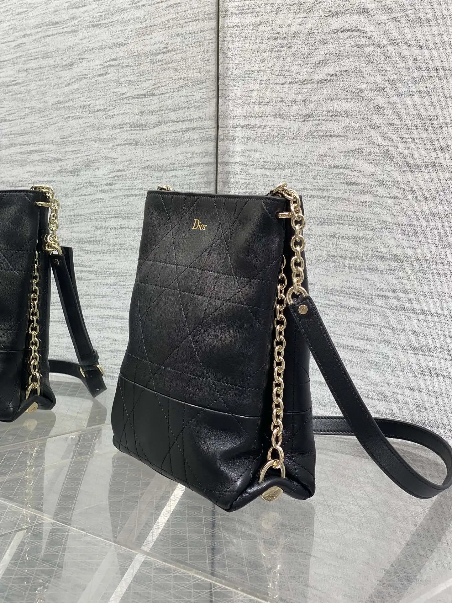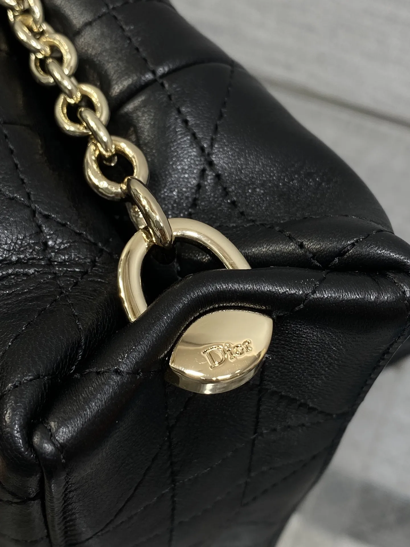 2026 Trianon新款Hobo链条包 黑色菱格纹皮革+金属链条肩带 优雅又实用 正面 Dior 标志超有辨识度 尺寸适中 通勤 出街都很百搭 内部空间合理 日常物品轻松收纳 链条肩带可调节 手提 单肩 斜挎随心切换 时尚与功能兼备 是Dior经典热门款