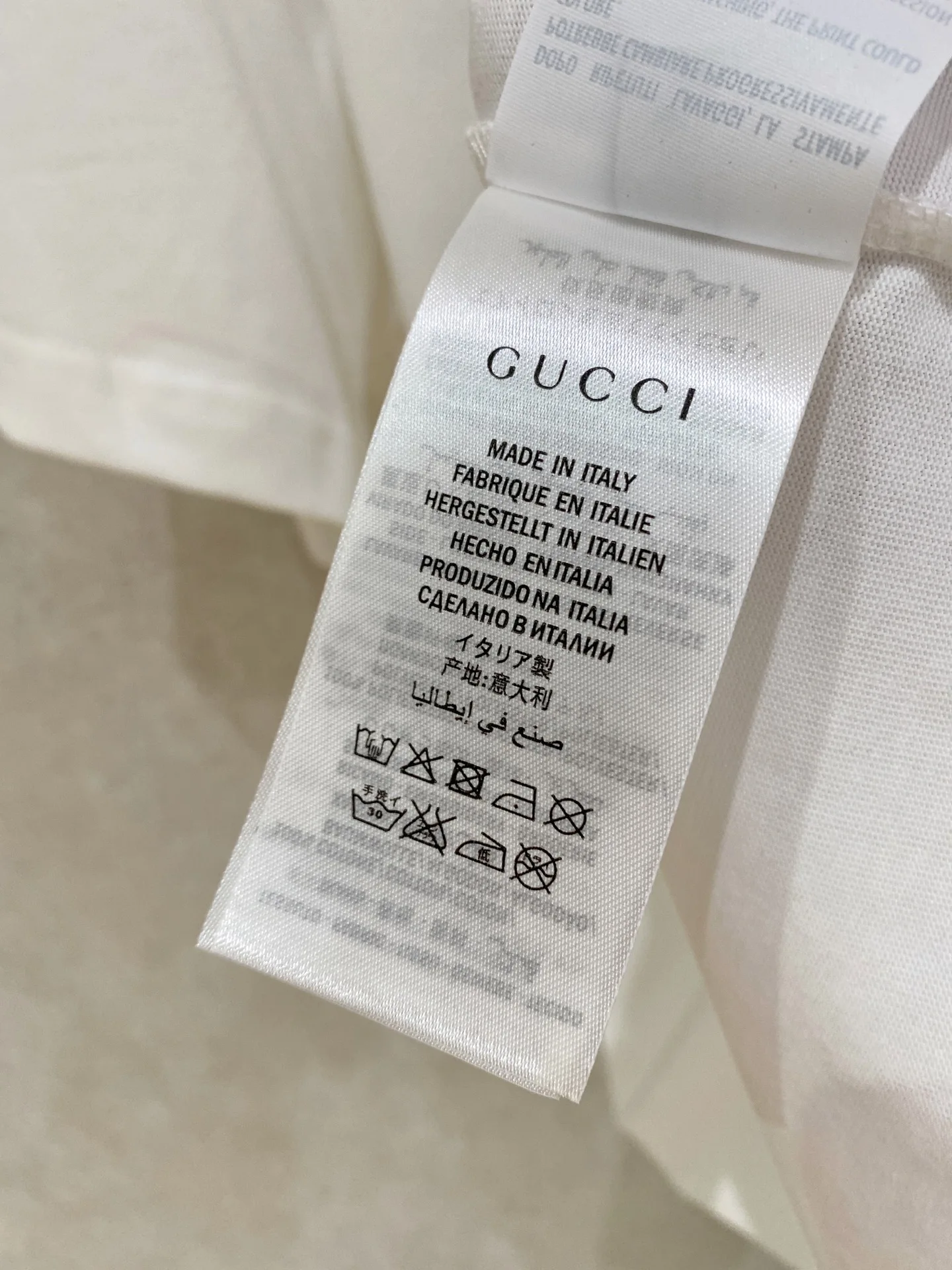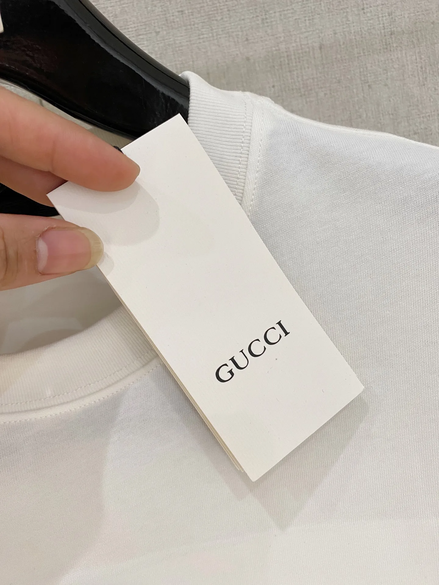 古驰Gucci26春夏新品专柜首发最新款短袖圆领T恤 高端订制 设计前卫时尚 品牌logo重工艺设计 高端定制面料 手感柔软 穿着舒适 客供进口高档面料质感非常细腻 细节工艺精湛考究 专柜级别精致车线 做工精细 塑造性极高的一款单品 任何时装都可以搭配 版型超级好 潮男必备单品