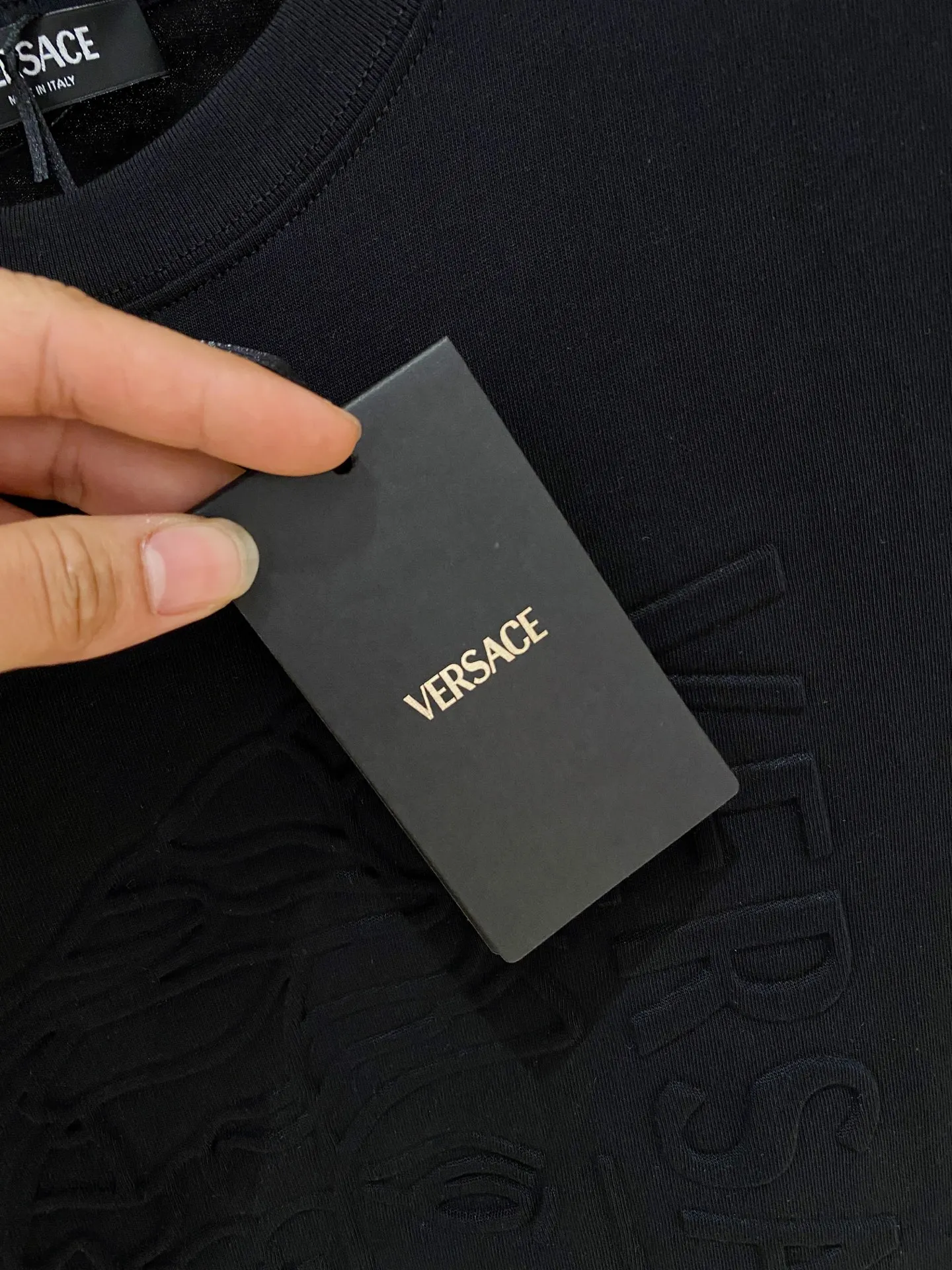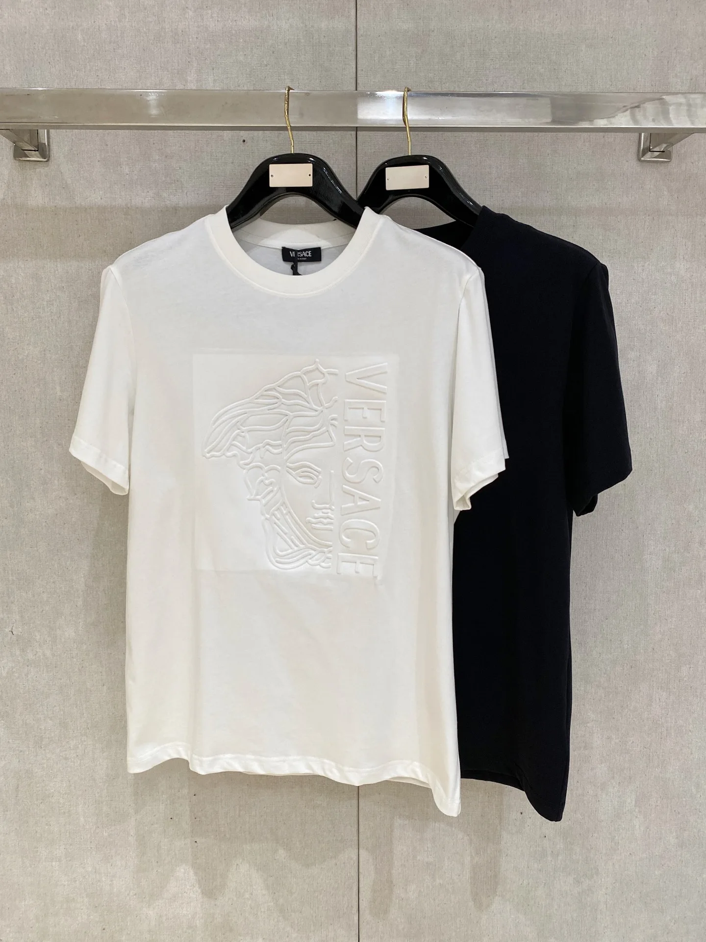 瓦萨Versace 26春夏新品专柜首发最新款短袖圆领T恤 高端订制 设计前卫时尚 品牌logo重工艺设计 高端定制面料 手感柔软 穿着舒适 客供进口高档面料质感非常细腻 细节工艺精湛考究 专柜级别精致车线 做工精细 塑造性极高的一款单品 任何时装都可以搭配 版型超级好 潮男必备单品