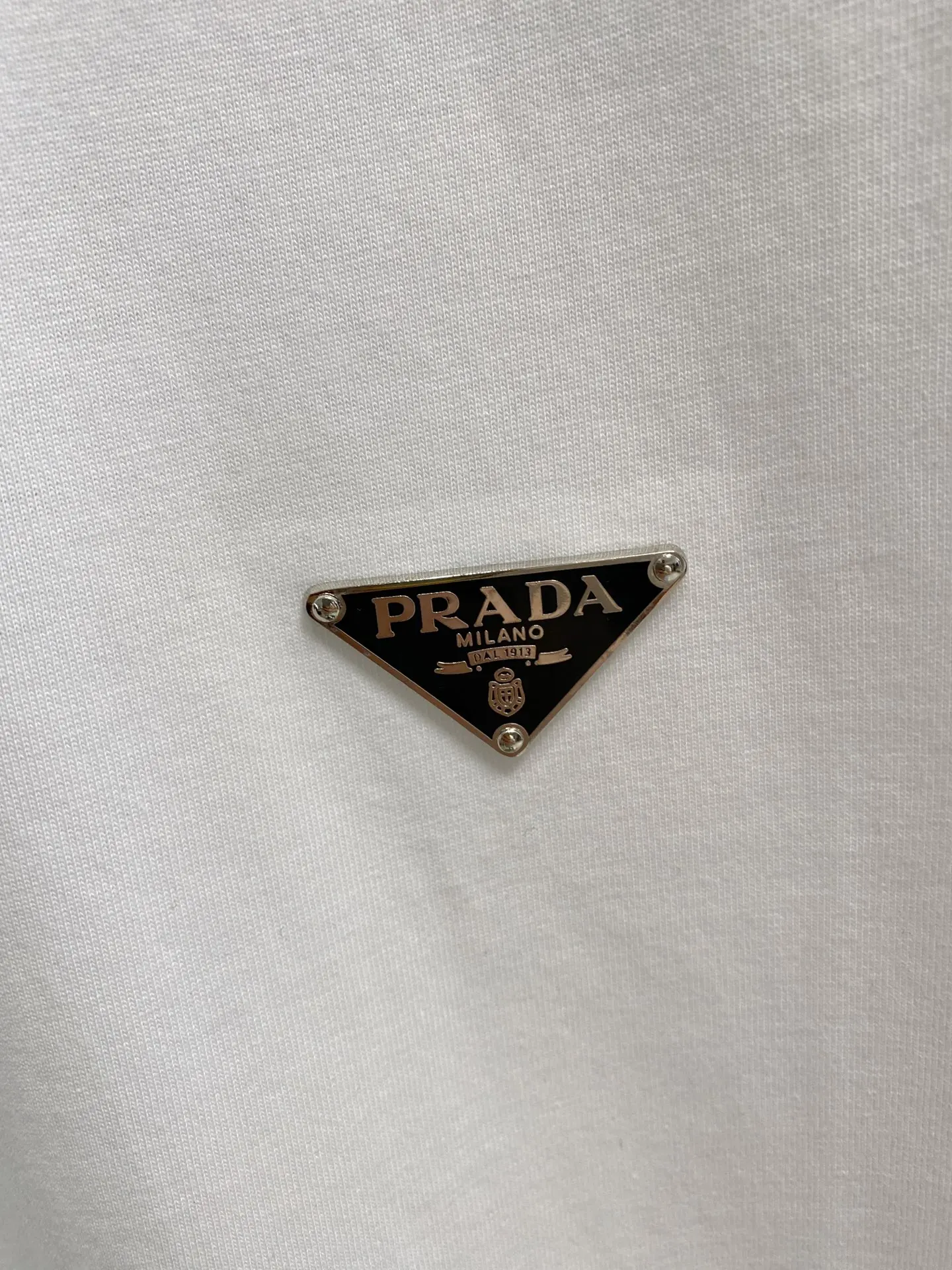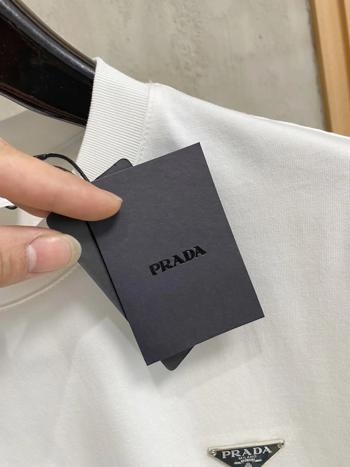 Prada 普拉达 2026ss 春夏新款首发专柜最新款短袖圆领T恤 高端订制 设计前卫时尚 品牌logo重工艺设计 高端定制纯棉面料.手感柔软.穿着舒适.专柜级别精致车线.做工精细.上身效果无敌帅气 型男必备单品