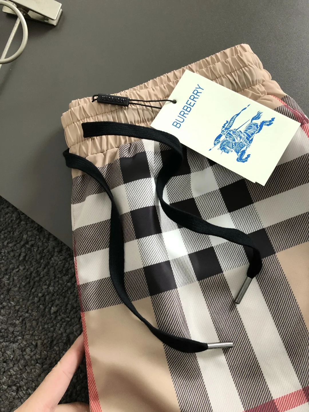 2026春夏短裤 以格纹印花骑士刺绣为主调 巧妙融入最新l格纹素 打破传统短裤的单调感 彰显个性与不羁 立体剪裁贴合身形 设计利落有型 轻松拉长腿部线条
