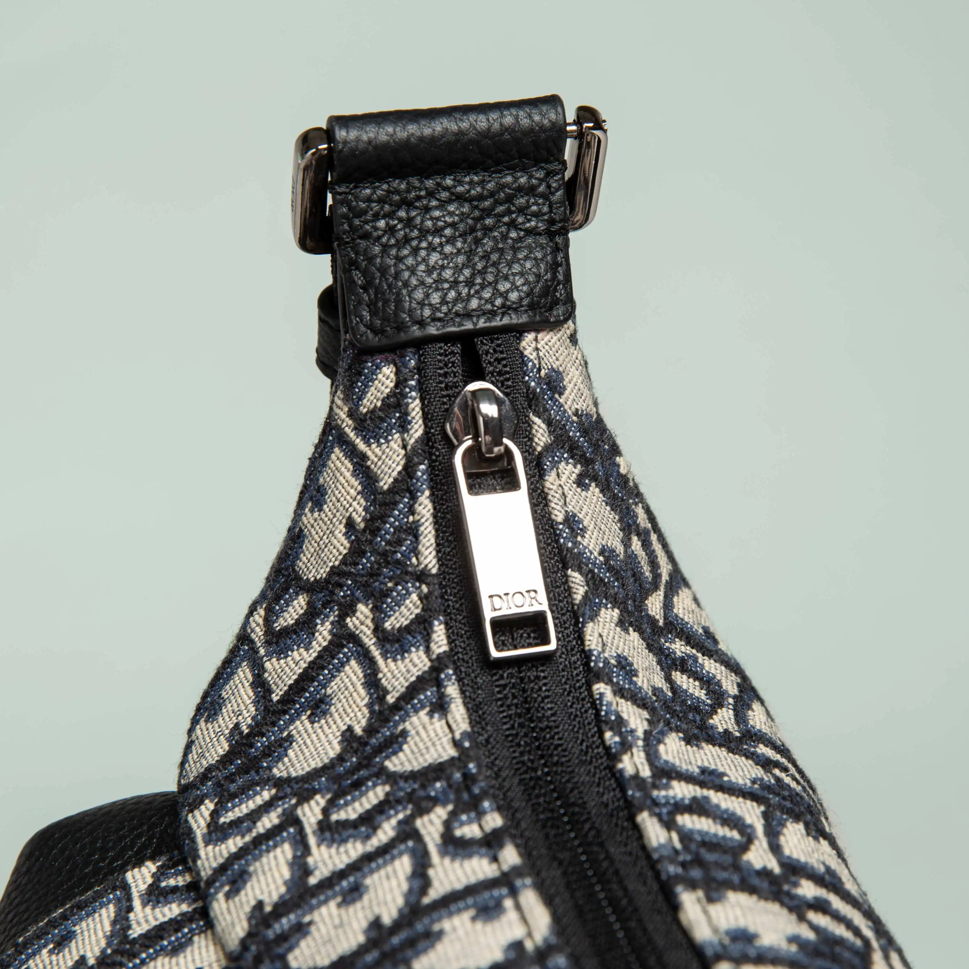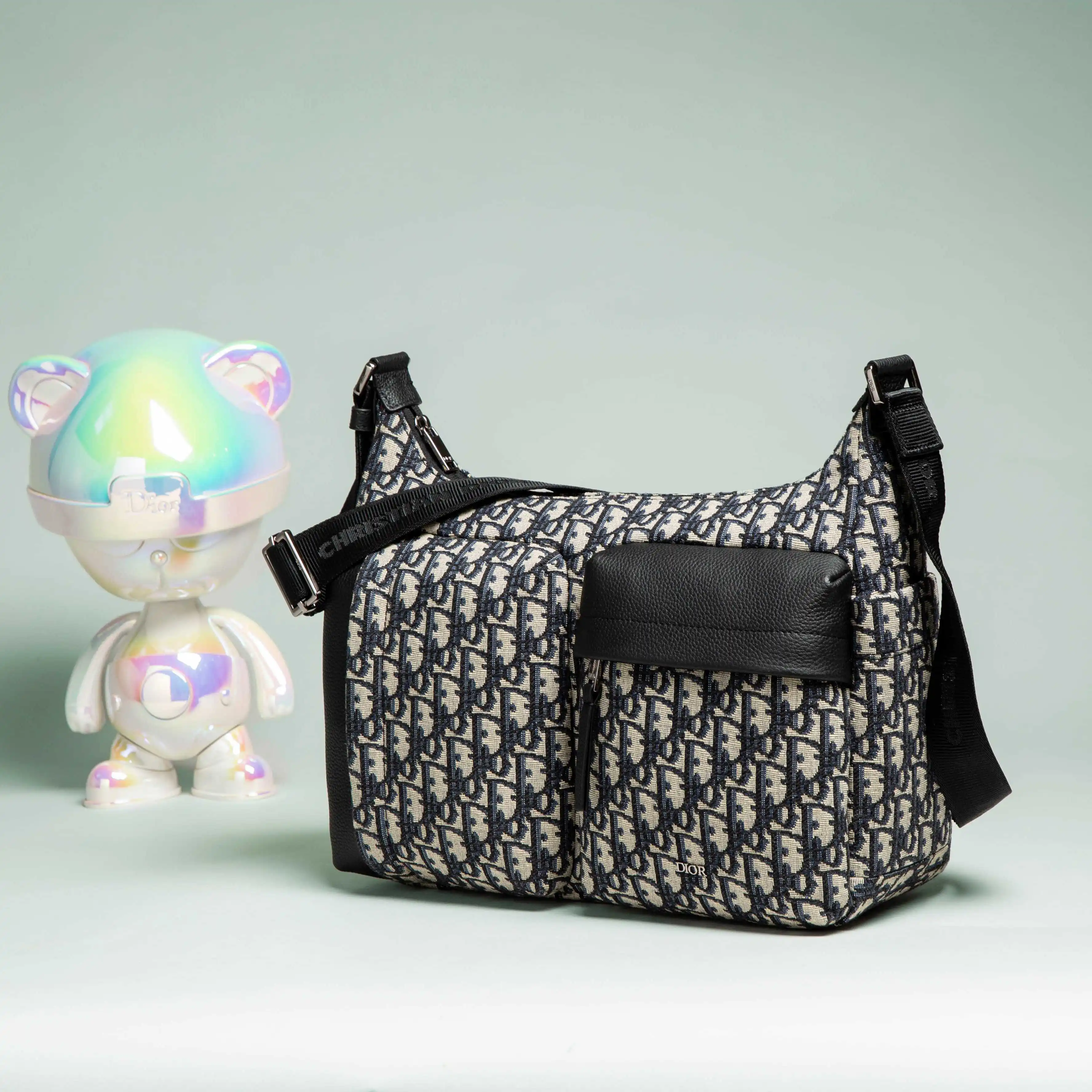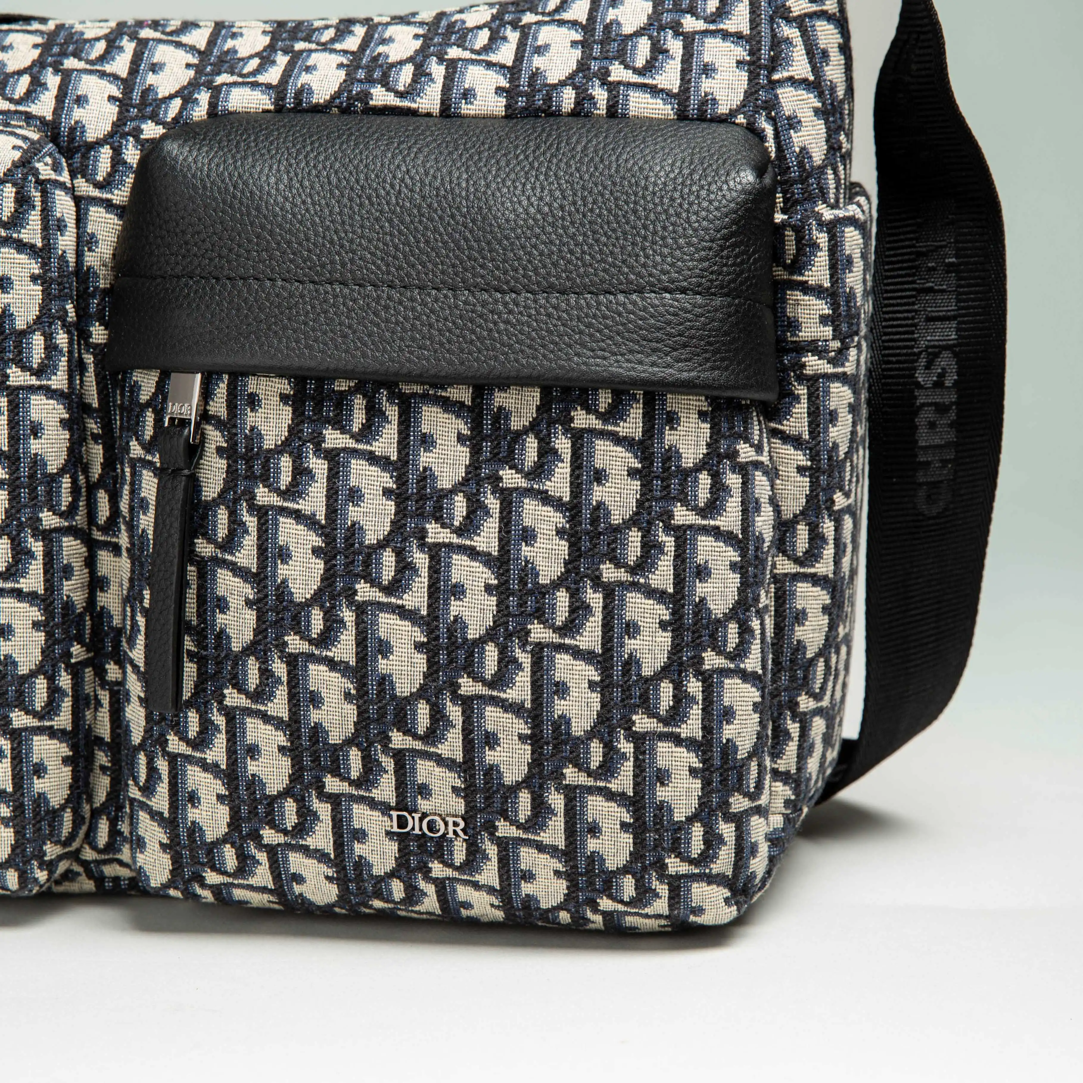 米色和黑色 Oblique 印花面料 饰以黑色粒面牛皮革细节提升格调 设有拉链隔层 两个正面拉链口袋和两个侧面插袋 可收纳各种日常用品 搭配可调节肩带 可肩背或斜挎