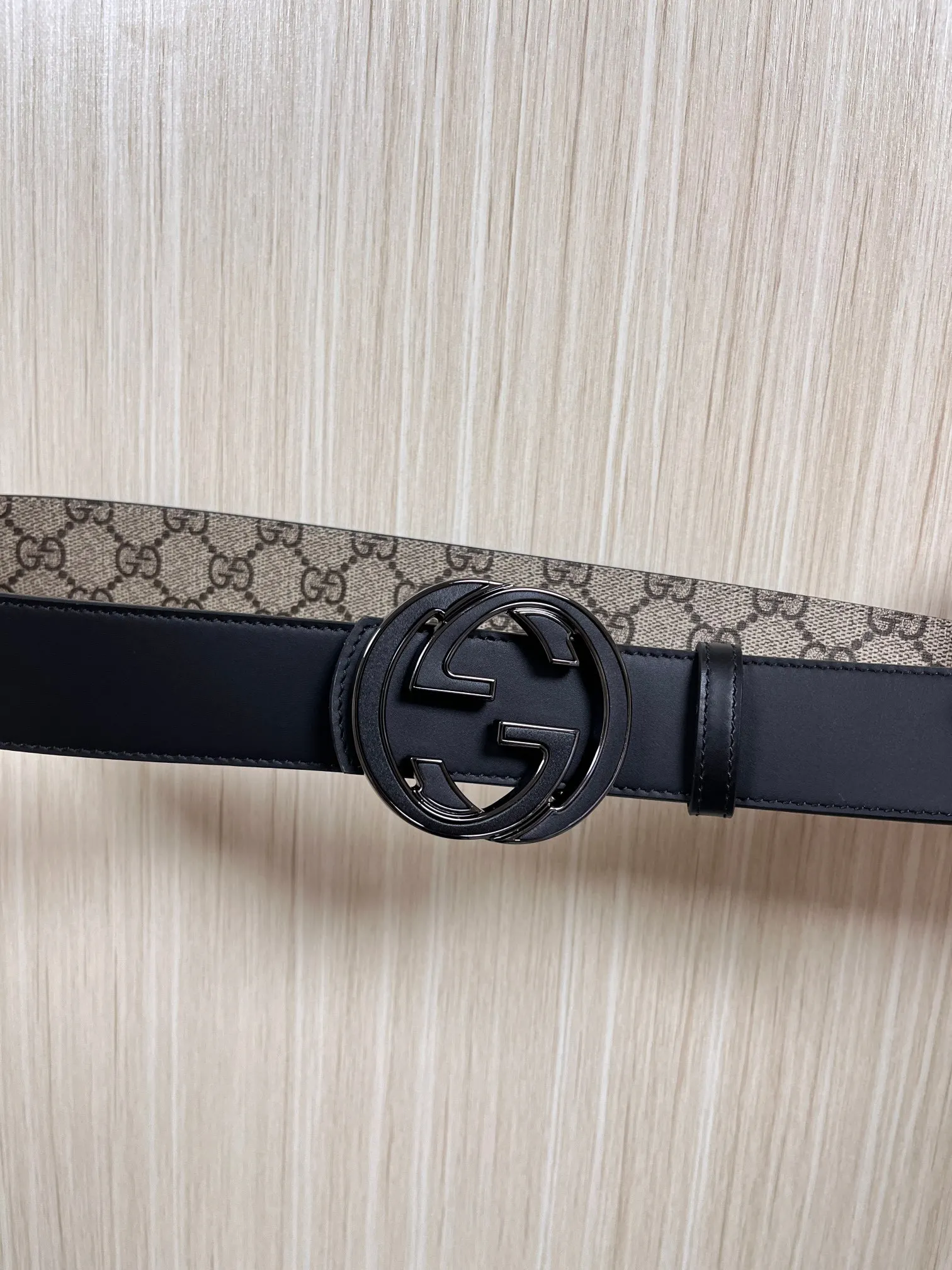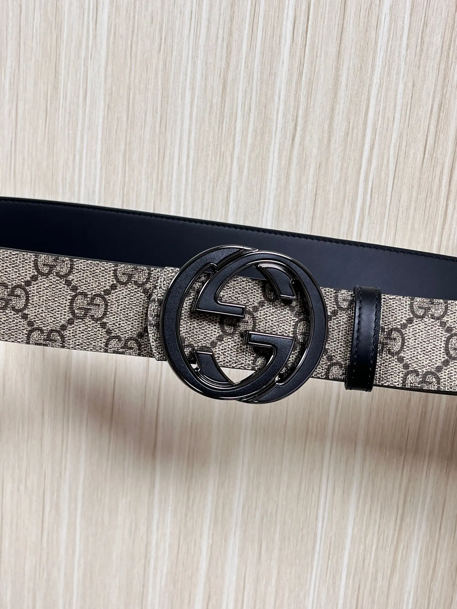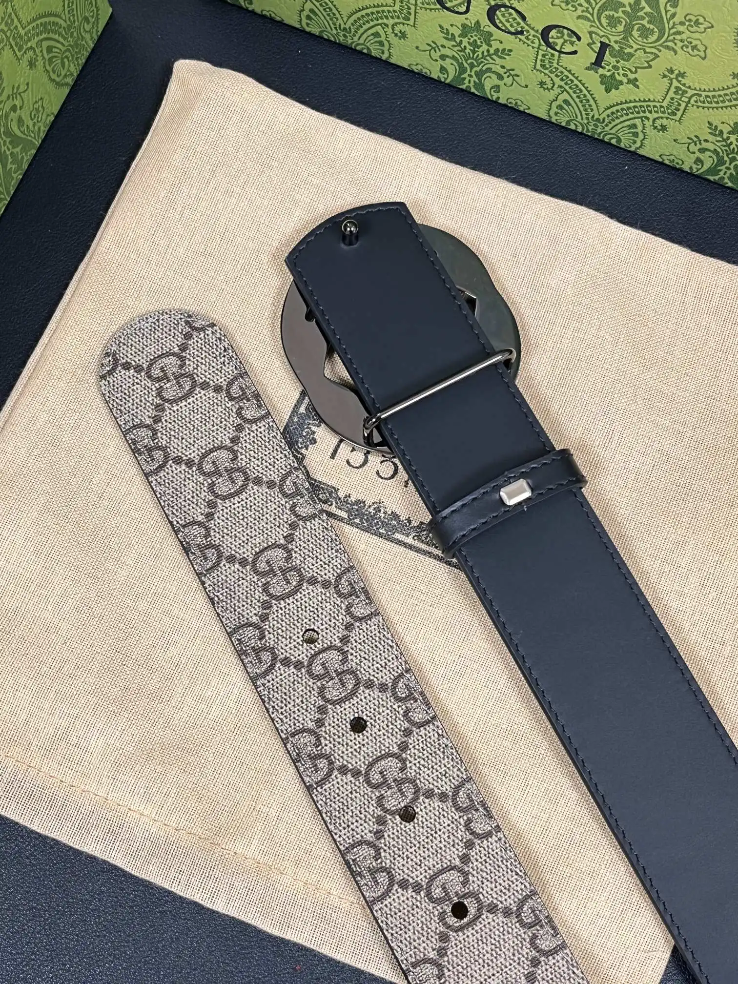 Gucci.古驰这款男士腰带亮眼吸睛 是2026早春系列之一 腰带扣设有一个销钉 可轻松翻转互扣式双G造型配件 一面为柔软GG supreme帆布 另一面为黑色皮革 宽度4cm