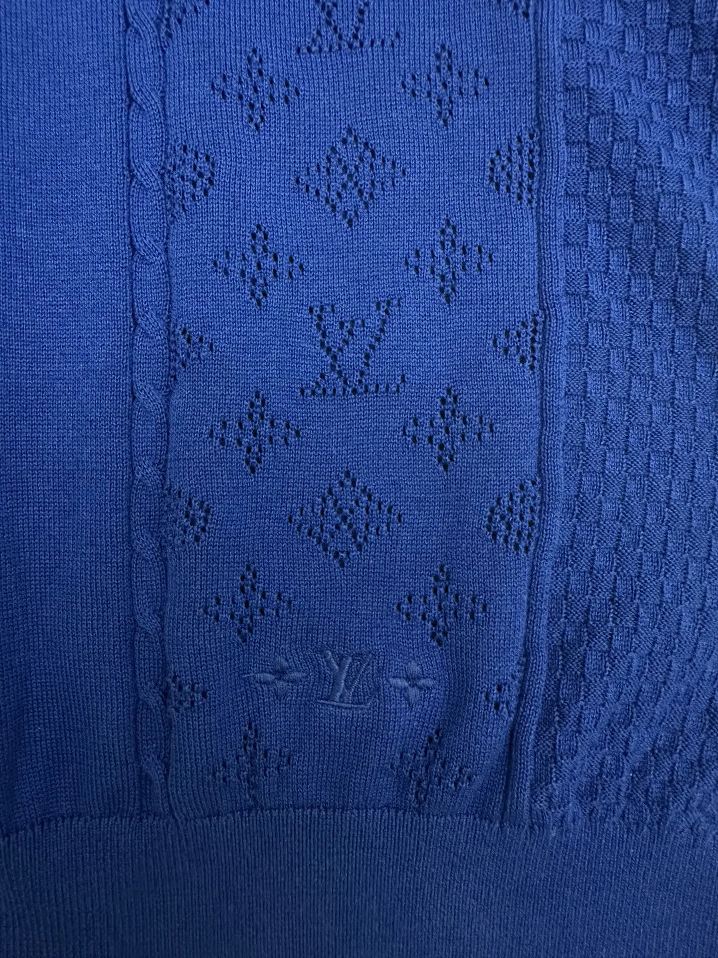 2026ss早春新款 正面网眼针织结构 低调融入LV经典Monogram老花与Damier棋盘格双素 以提花工艺呈现立体纹理 衣身两侧采用镂空针织+绞花编织 中间为纯色平纹针织 区别于普通印花码数 S M L XL