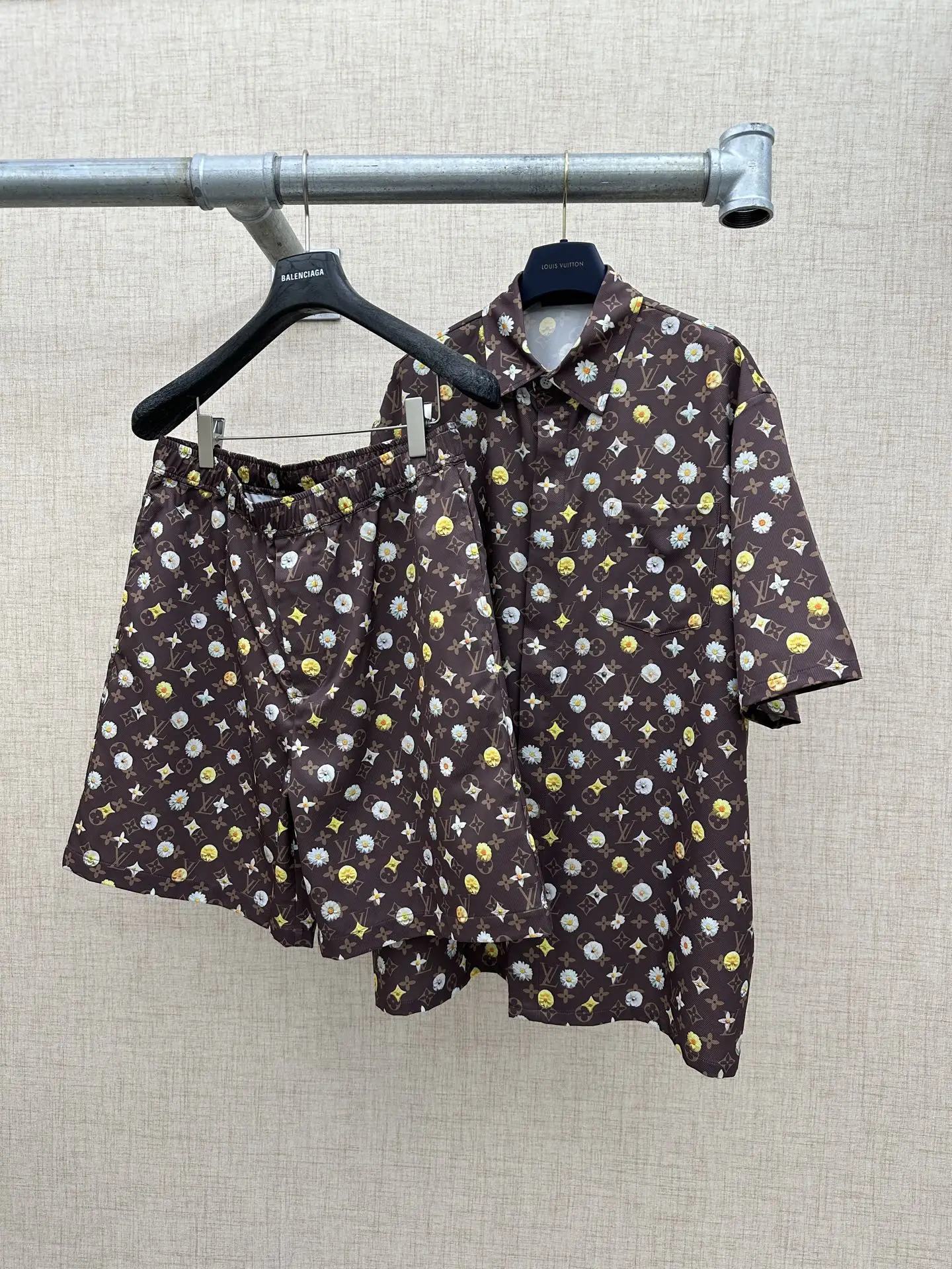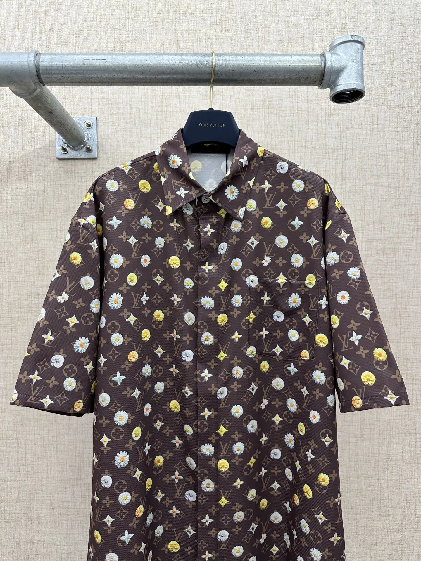LV/路易威登 深棕雏菊Monogram桑蚕丝短袖衬衫