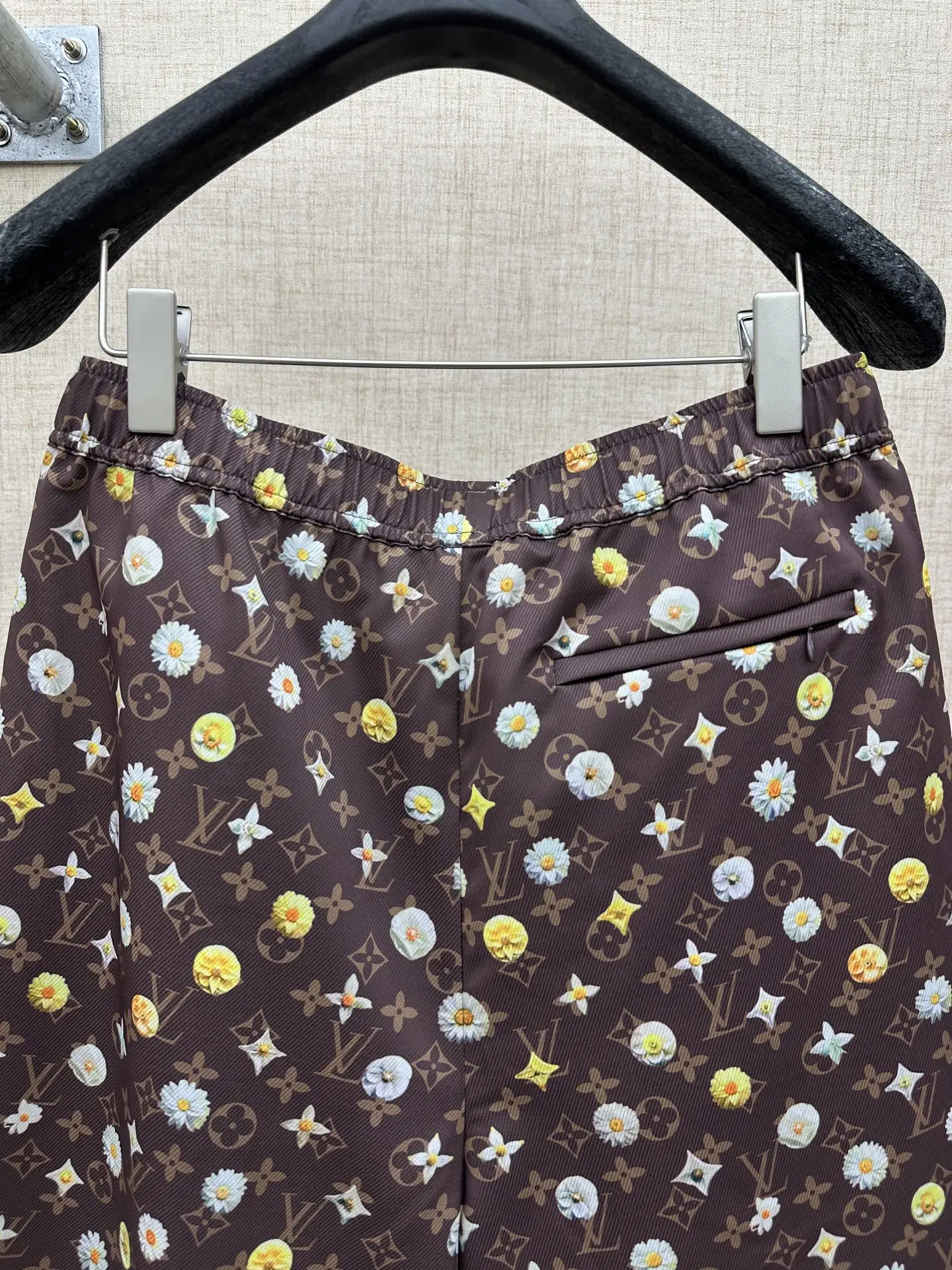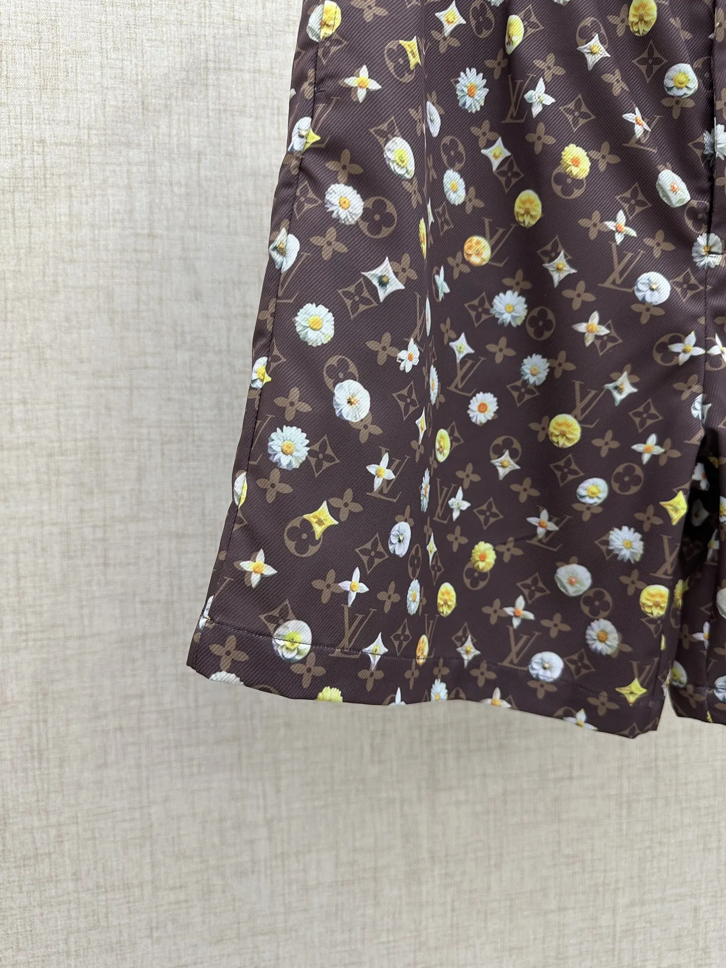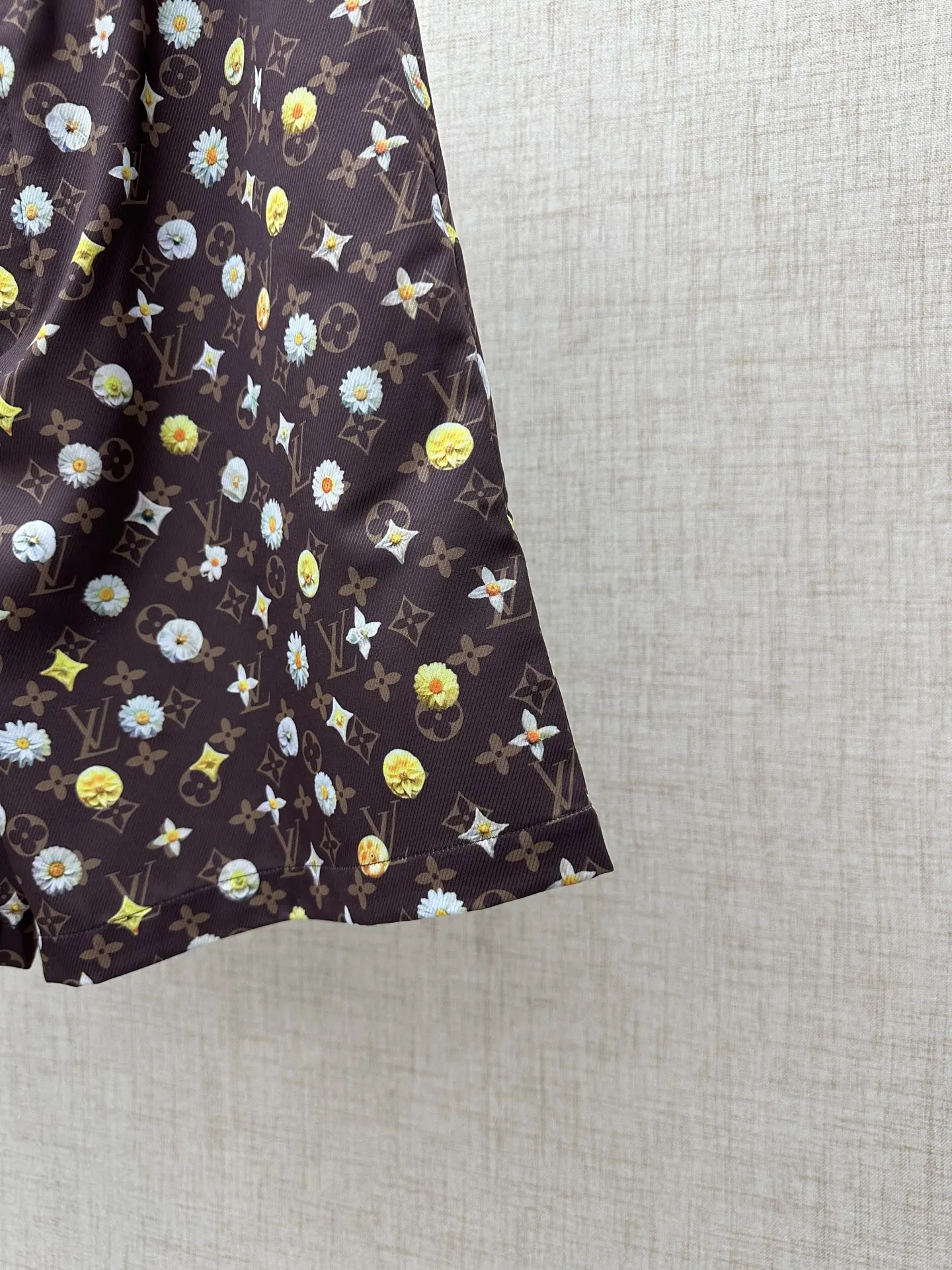 LV/路易威登 深棕雏菊Monogram桑蚕丝短裤
