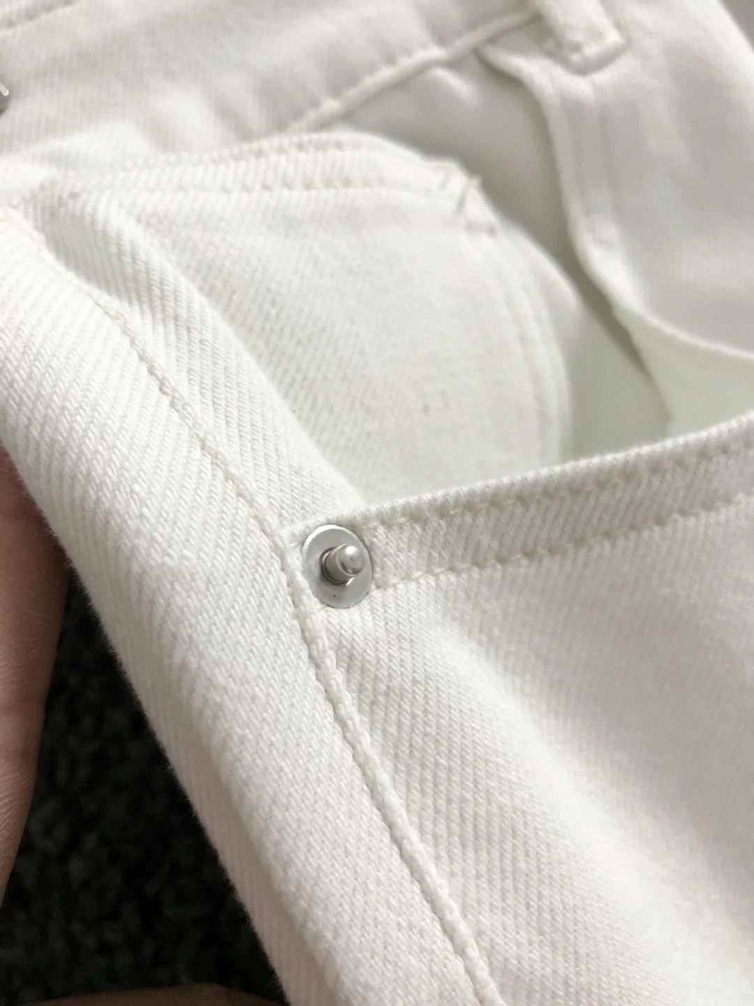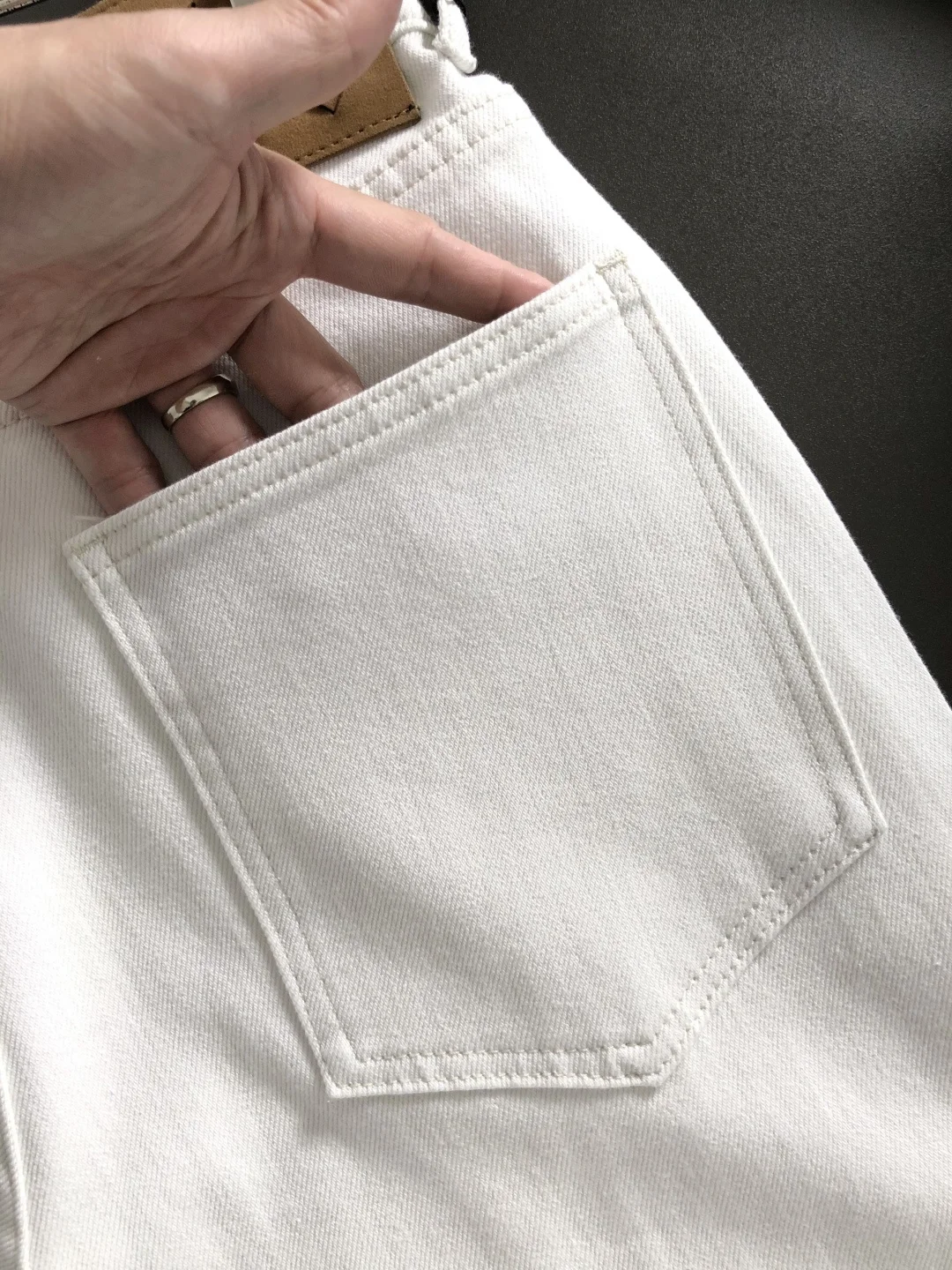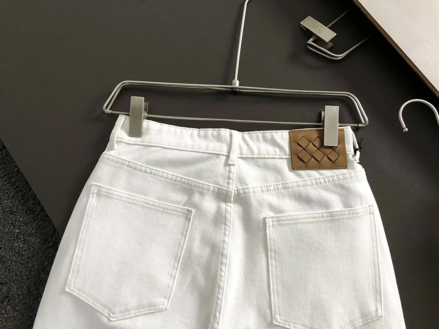 2026春夏短袖 以纯色百搭为主调 巧妙融入后幅编织皮牌素 打破传统牛仔裤的单调感 彰显个性与不羁 立体剪裁贴合身形 设计利落有型 轻松拉长腿部线条 黑色 白色