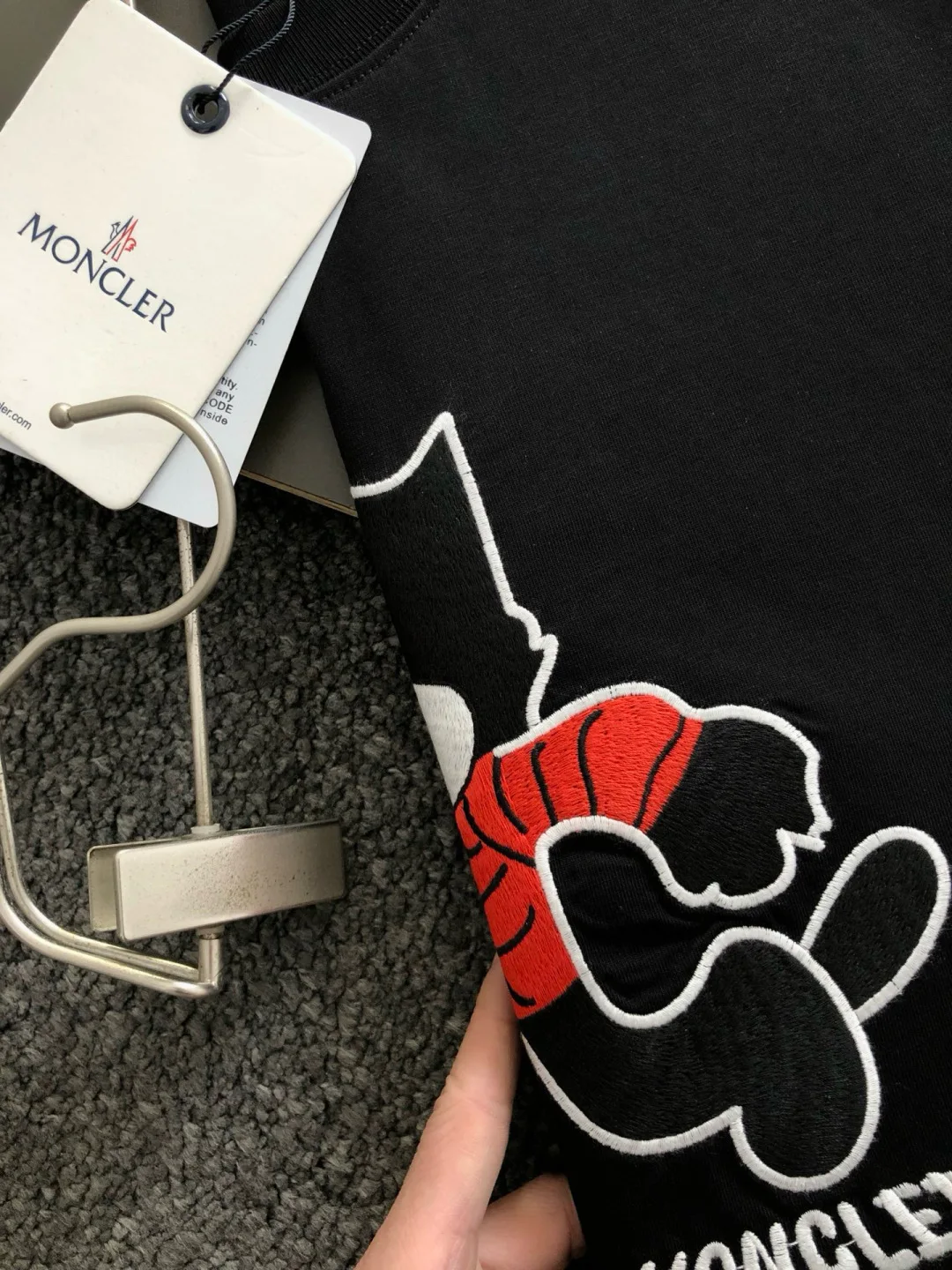 2026春夏短袖 以简约卡通人物刺绣为主调 巧妙融入袖标素 打破传统短袖的单调感 彰显个性与不羁 立体剪裁贴合身形 设计利落有型 轻松拉长腿部线条 打造随性洒脱的休闲风格 优质面料舒适保暖 兼具保温性与舒适感 适合日常出街或轻户外场景 现货颜色 黑色 白色