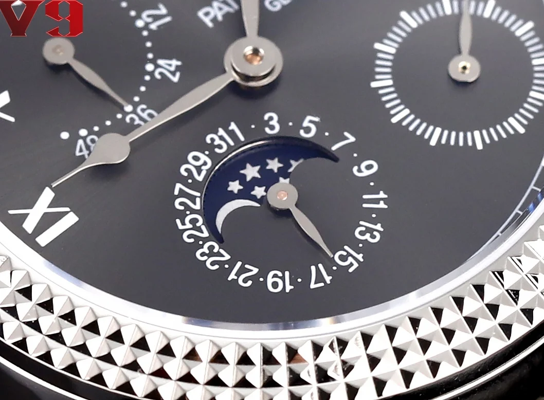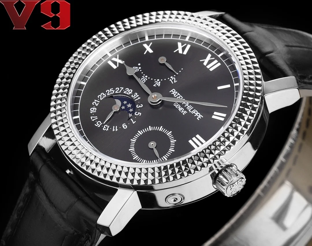 V9 Patek Philippe 百达翡丽 限量版腕表 表圈装饰复古风格的巴黎钉纹立体方钉在光线下呈现宝石切面一样的光影效果经典而醒目 令人回想起古典制表风尚 尺寸为宽38mm厚度为11.5mm 小牛皮标配 太阳出品为你精心打造超真实图拍照