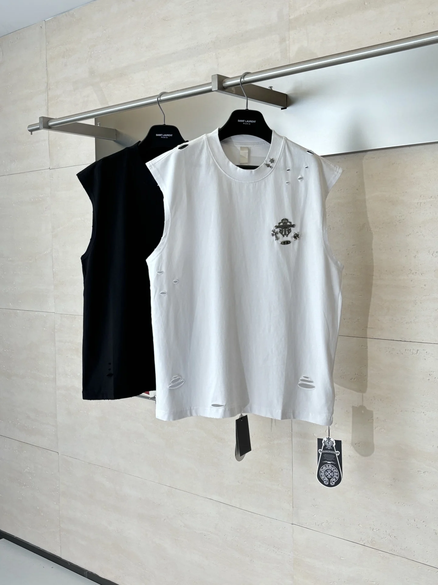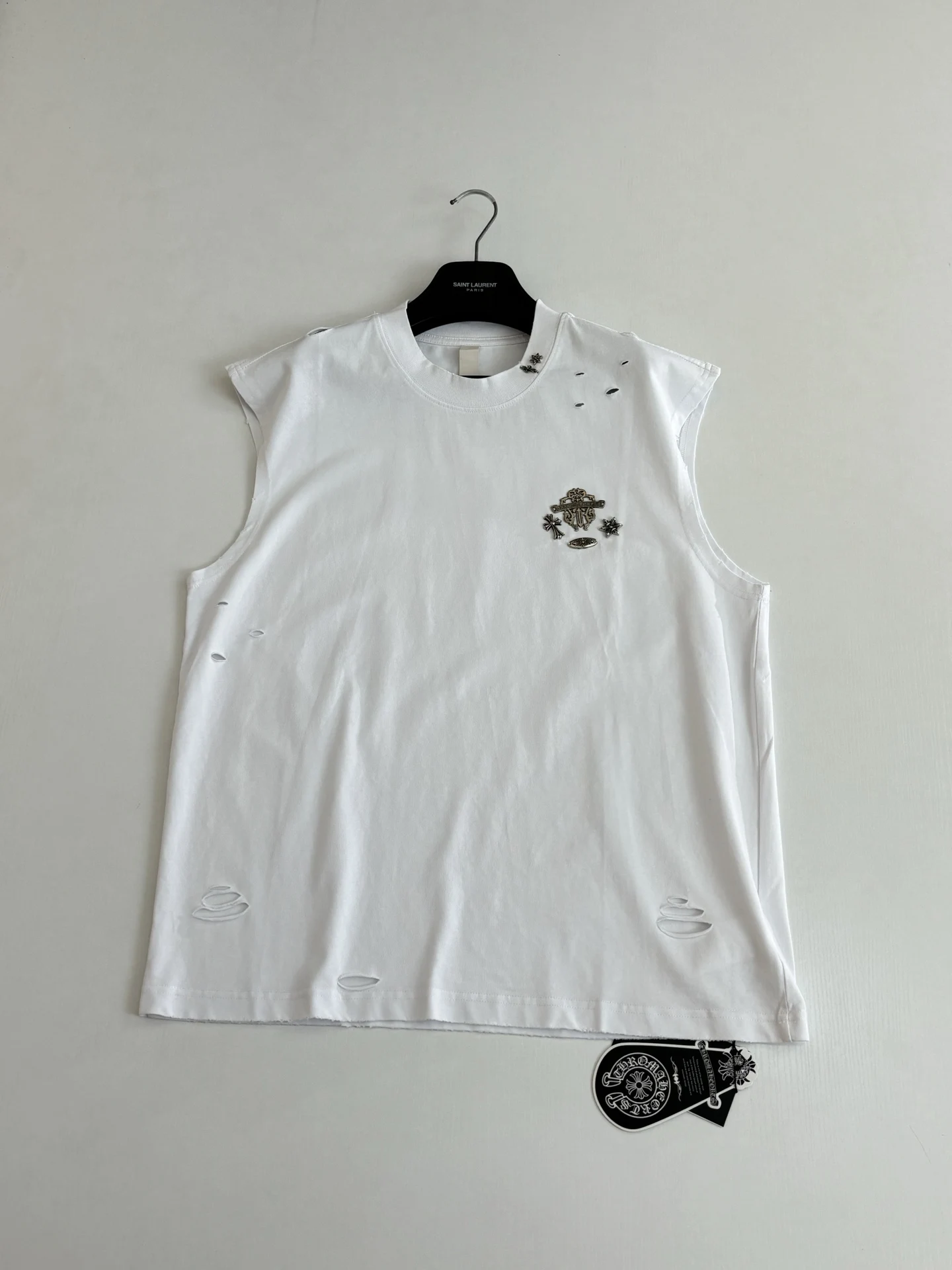 Chrome Heart*/克罗心 Ch银饰五金做旧破洞刺绣无袖背心