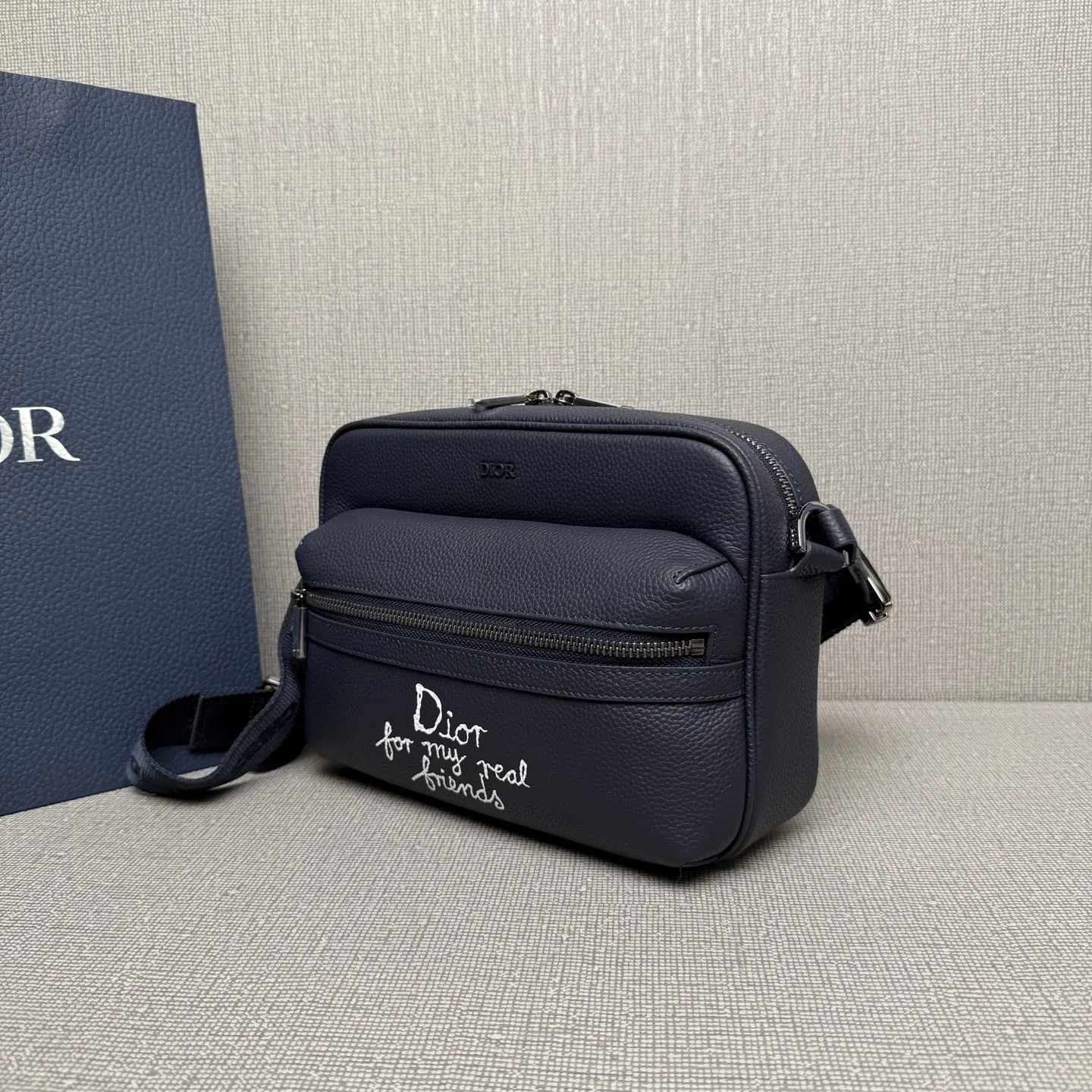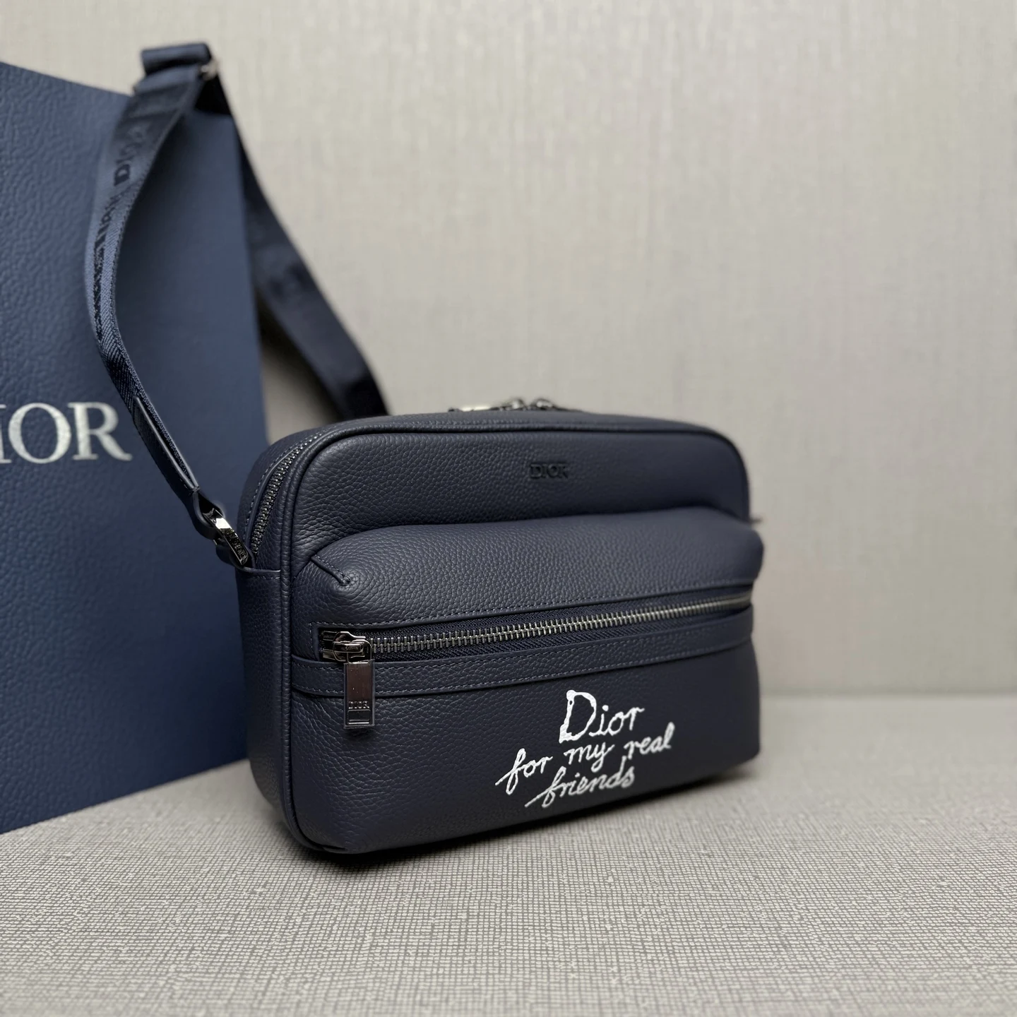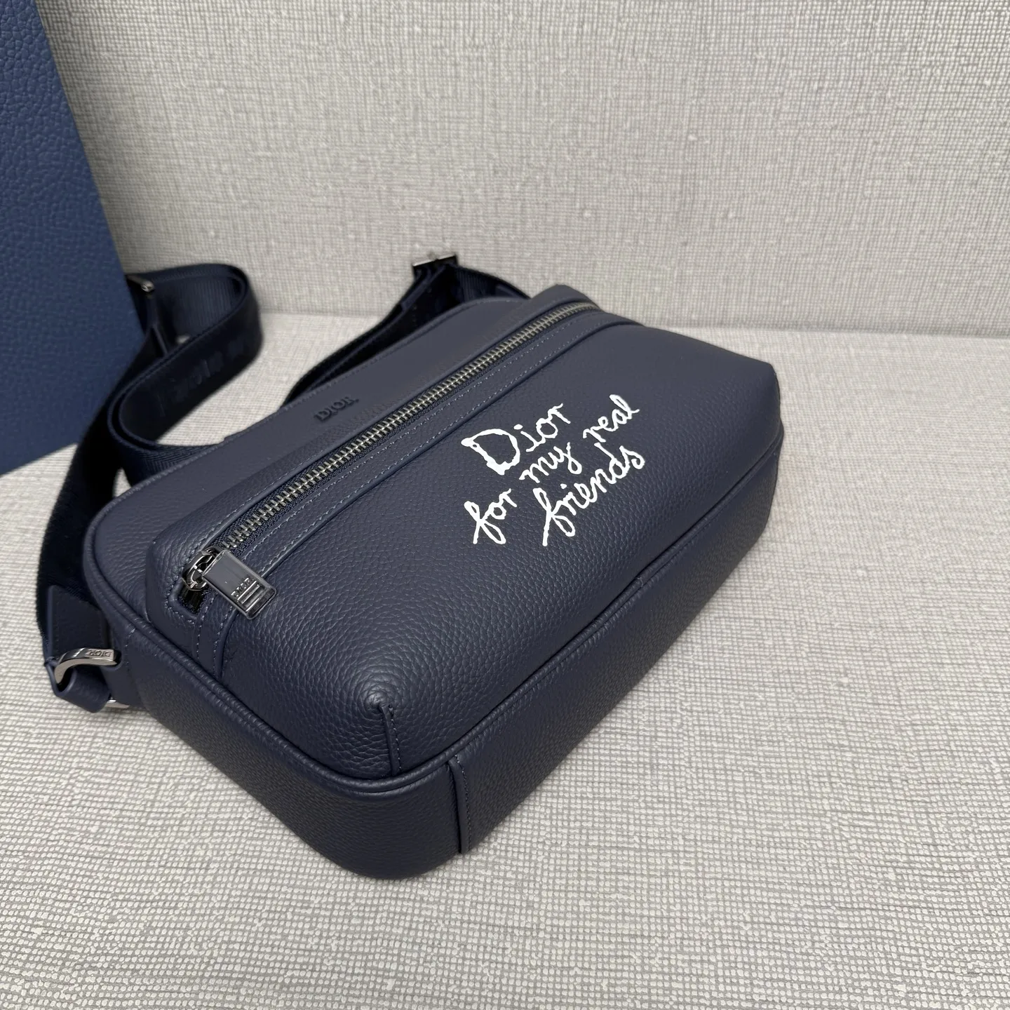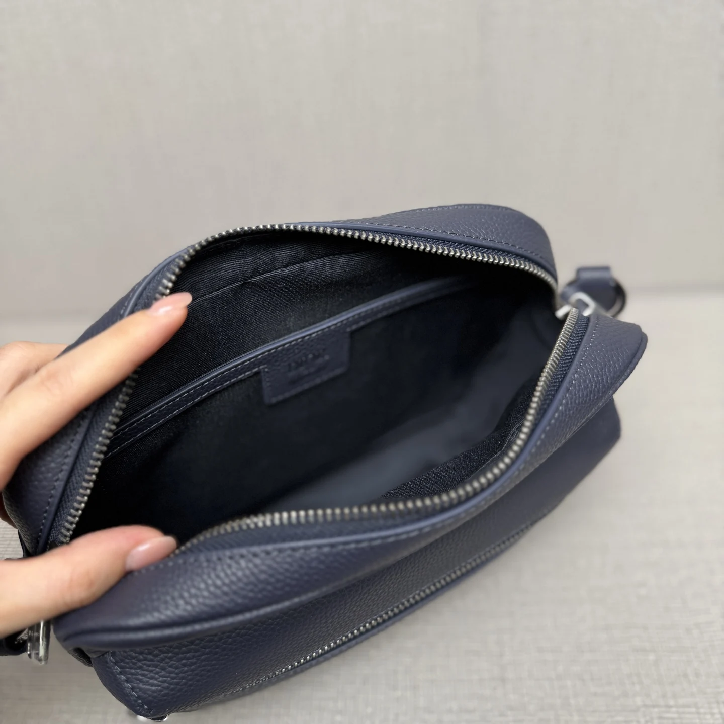 限定系列 海军蓝色粒面牛皮革 拉链隔层和正面拉链口袋可收纳各种日常用品 搭配可调节肩带 可肩背或斜挎